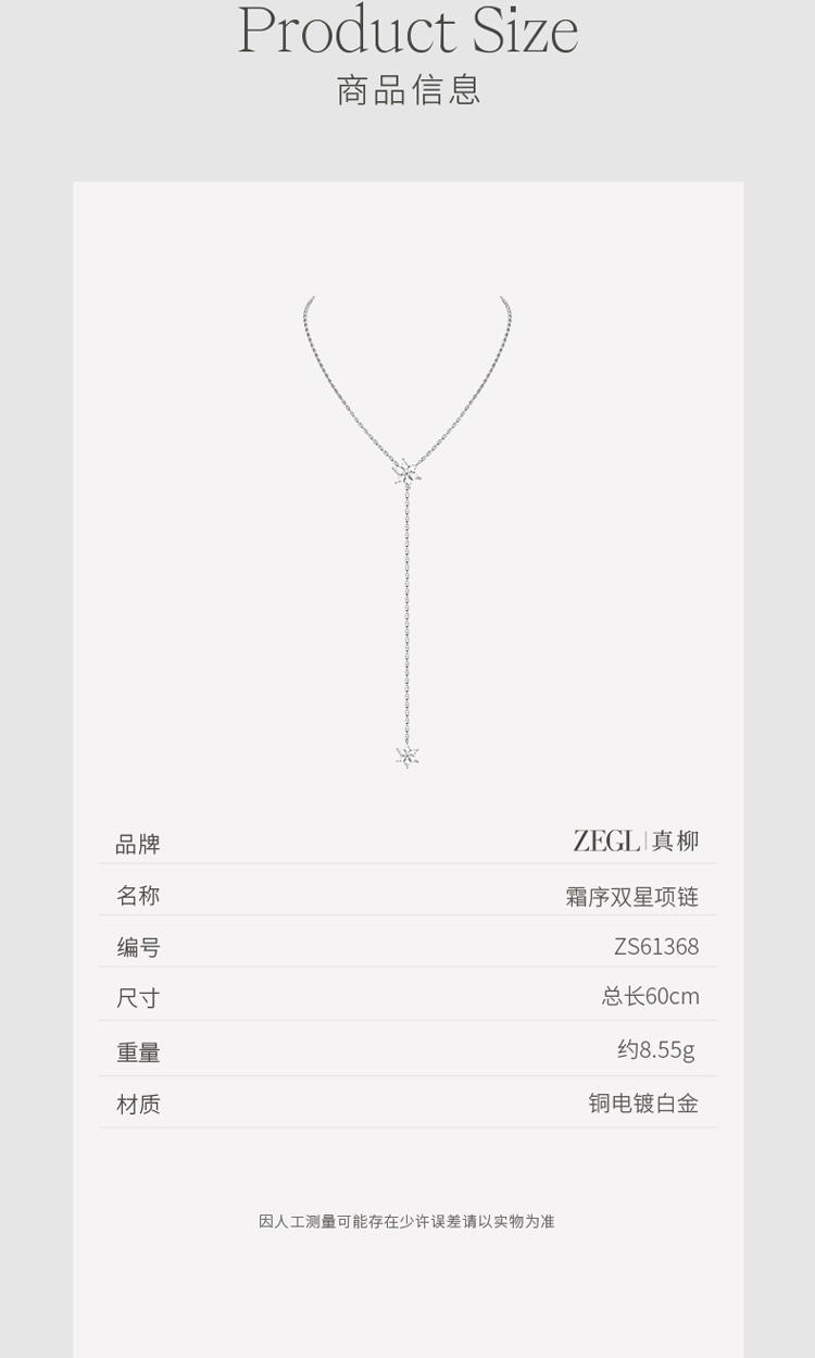 ZEGL冰凌系列雪花毛衣链女轻奢高级感长款项链秋冬叠戴锁骨链配饰