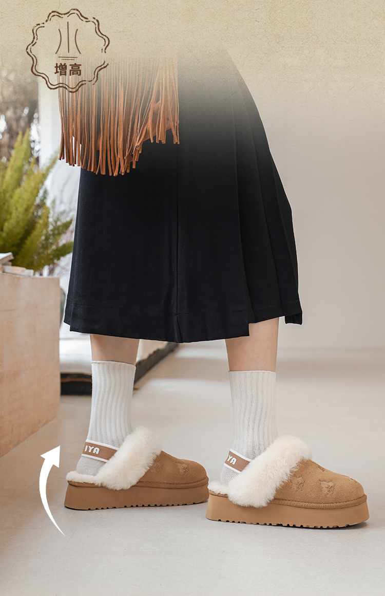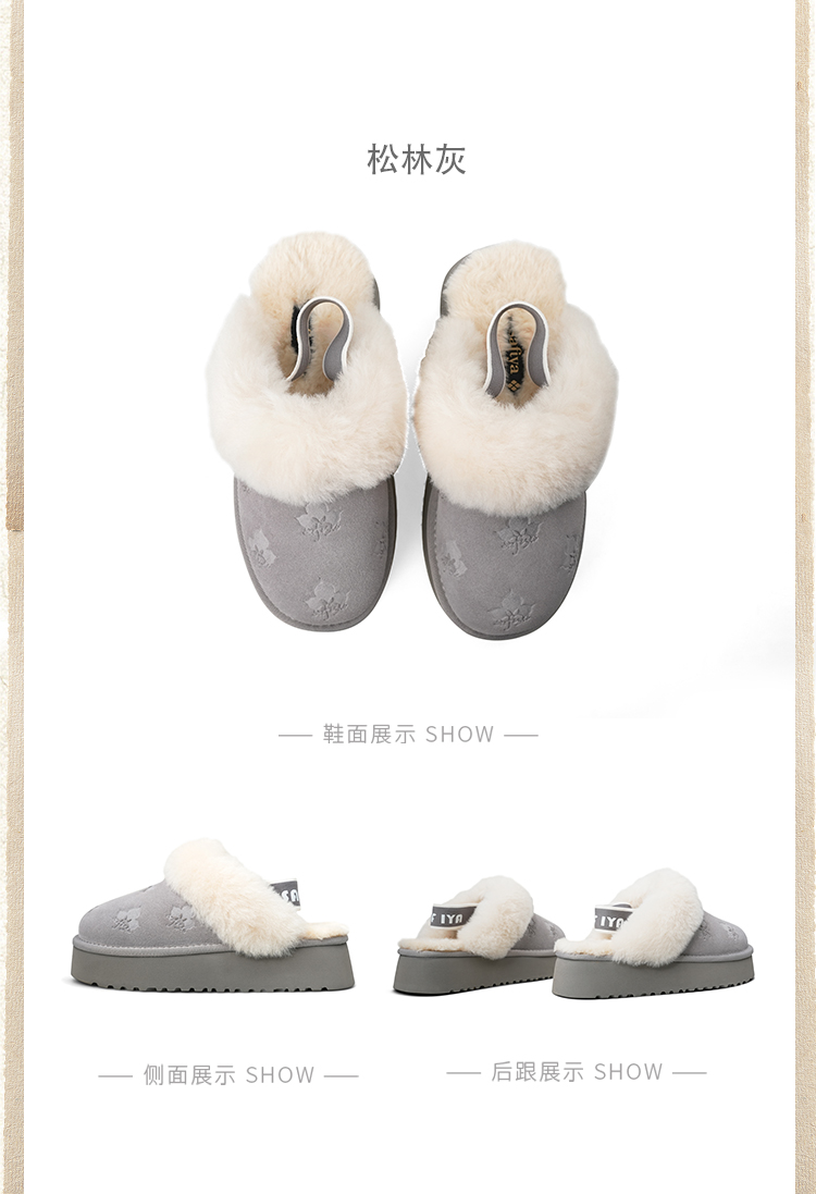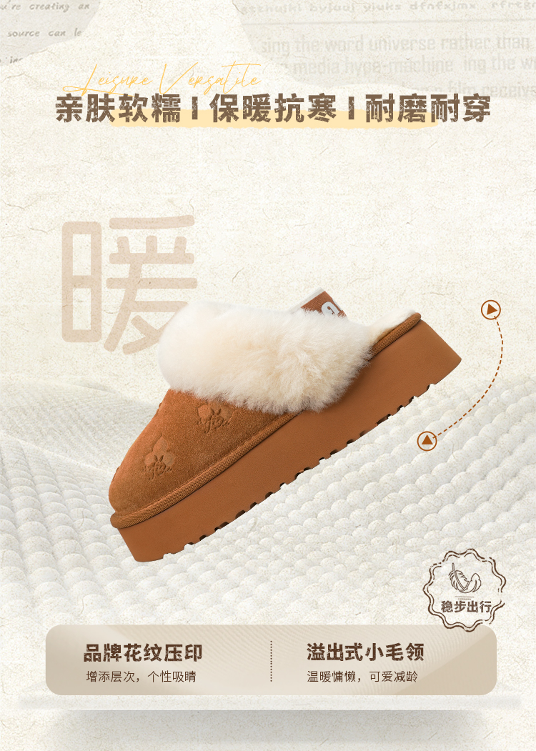 预售|Safiya/索菲娅2025时尚包头加绒厚底百搭懒人外穿休闲毛毛拖鞋SFD4110042
