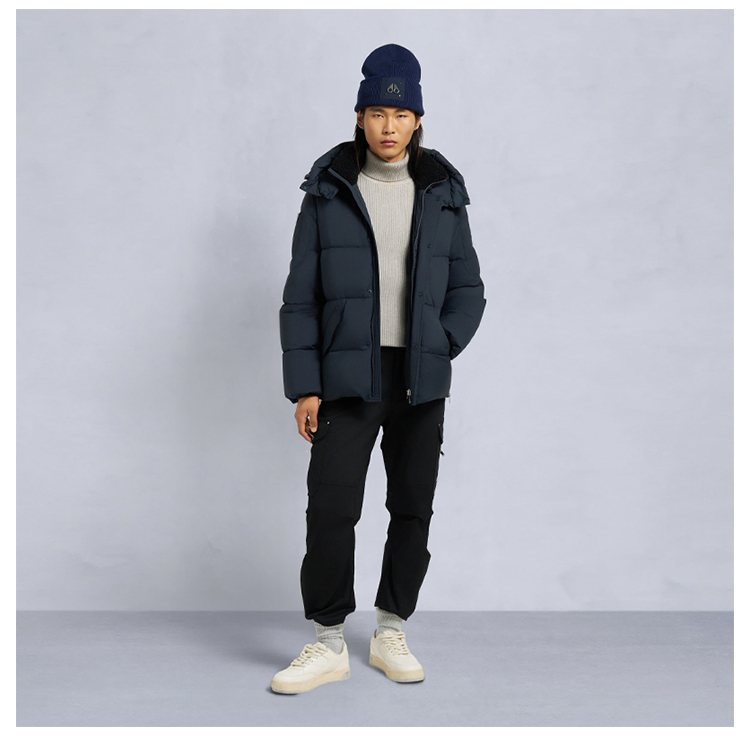 MOOSE KNUCKLES 男士金属驼鹿指节徽标绗缝连帽羽绒服 蓝色 M35MJ146 833