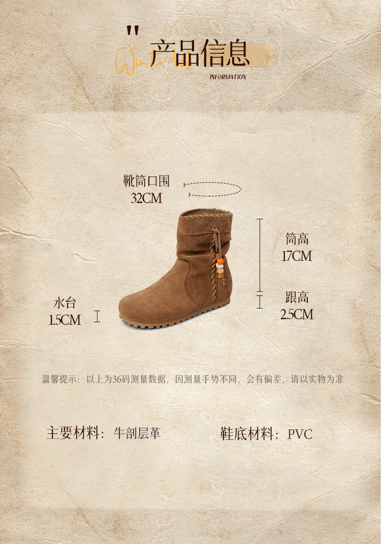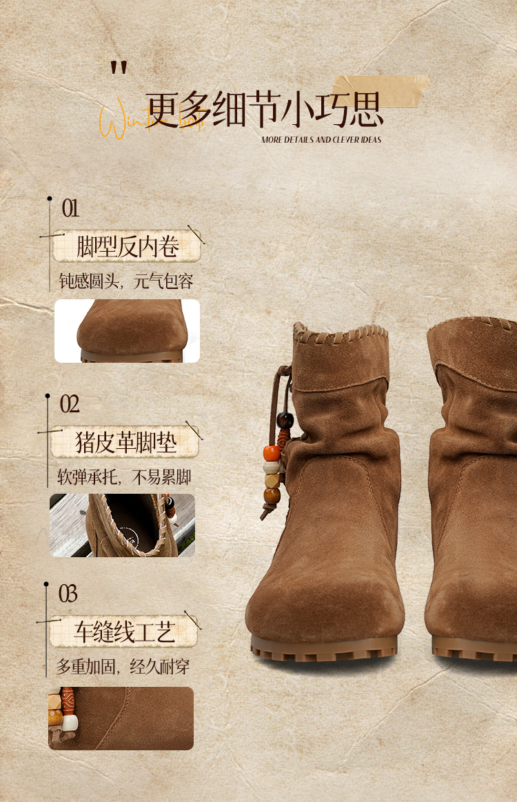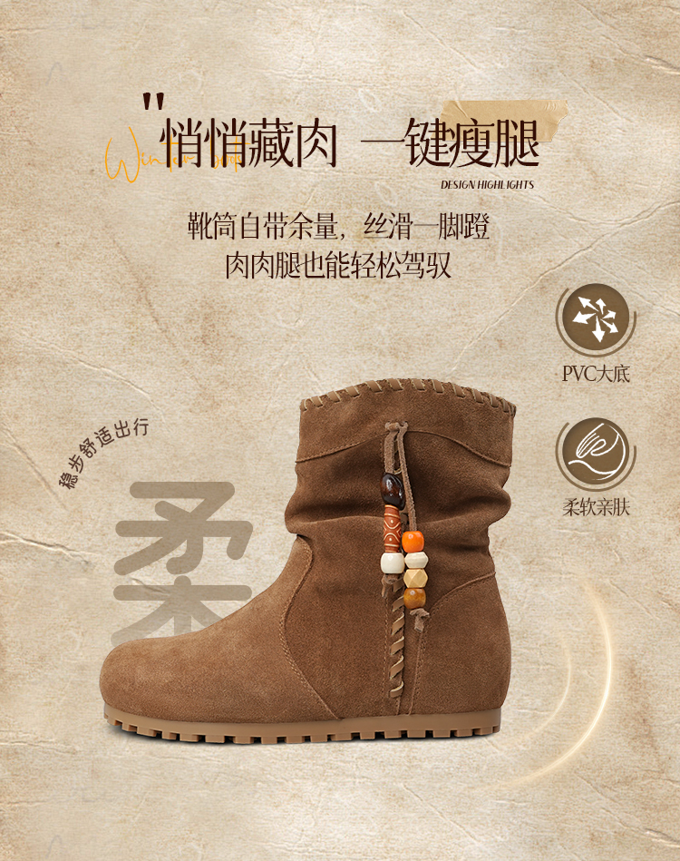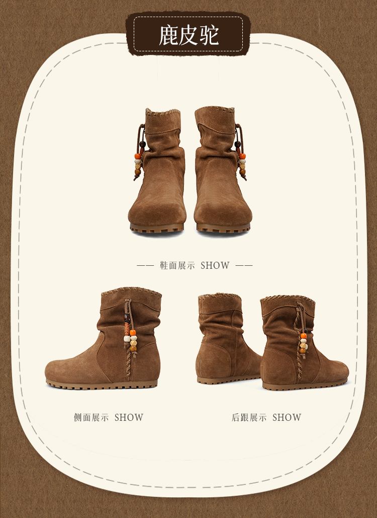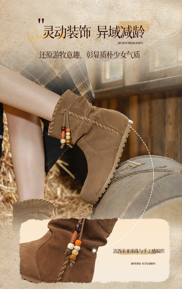 Safiya/索菲娅2025游牧风串珠圆头百搭内增高复古川西旅游短靴SFD4116403