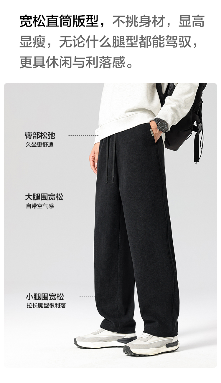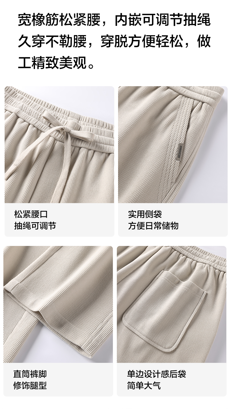 gxgjeans男装 【灯芯绒】25秋款针织直筒男士休闲长裤系带纯色百搭通勤裤男K&C