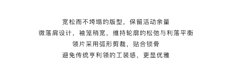 - 用松弛的裁剪与天然的面料,书写简单生活的诗意,让衣物回归「穿着」本身,打造独一无二的个性衣橱。