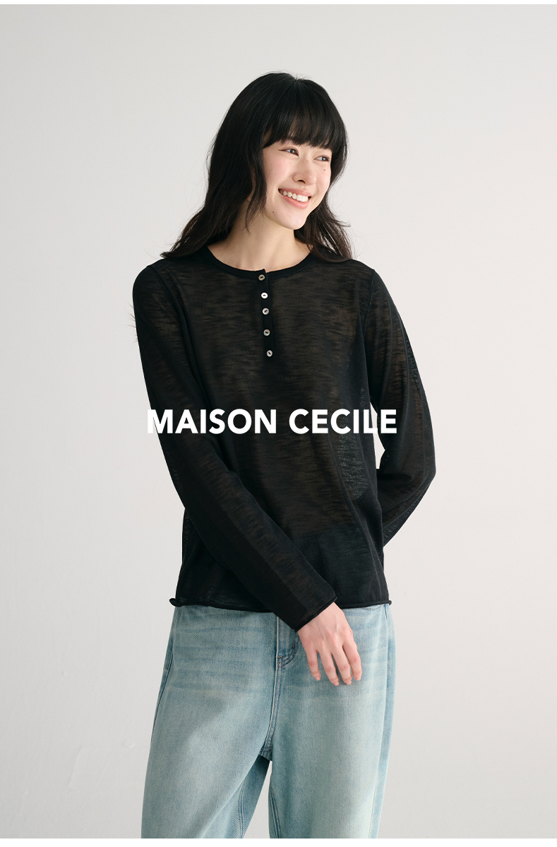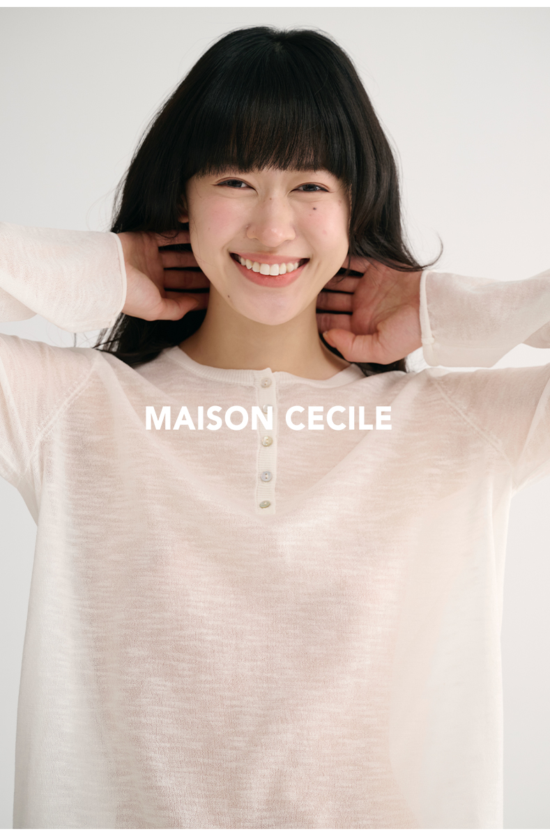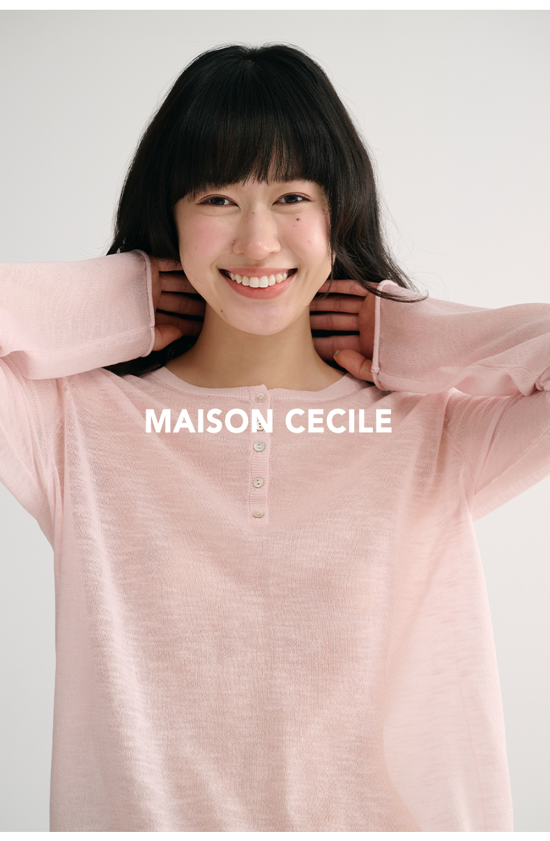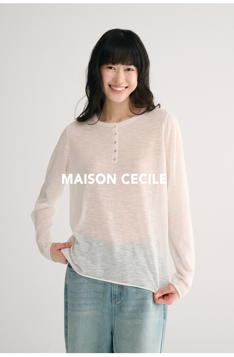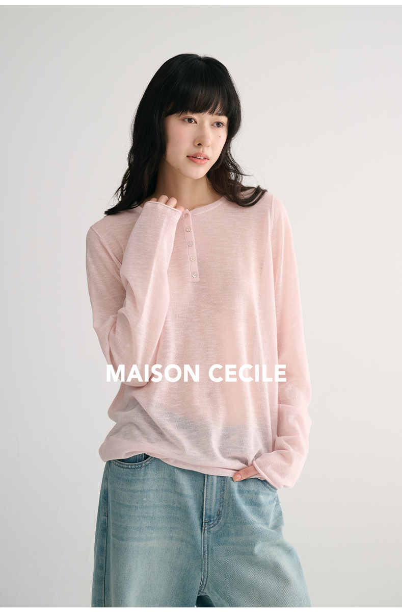 MAISON CECILE 三色/夏日亚麻混纺竹节纹肌理凉感亨利领针织上衣