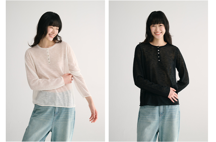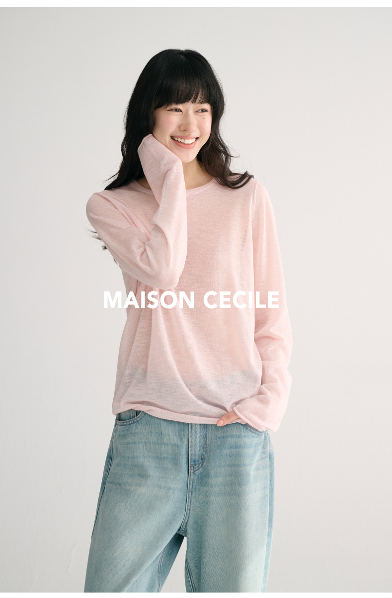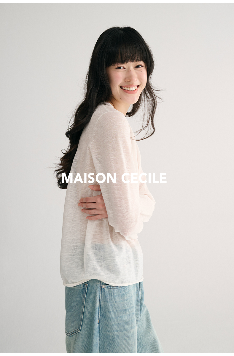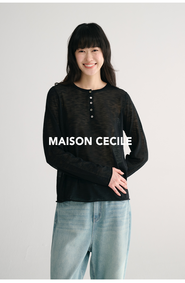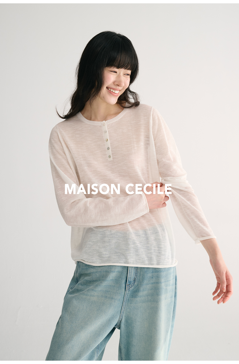 MAISON CECILE 三色/夏日亚麻混纺竹节纹肌理凉感亨利领针织上衣