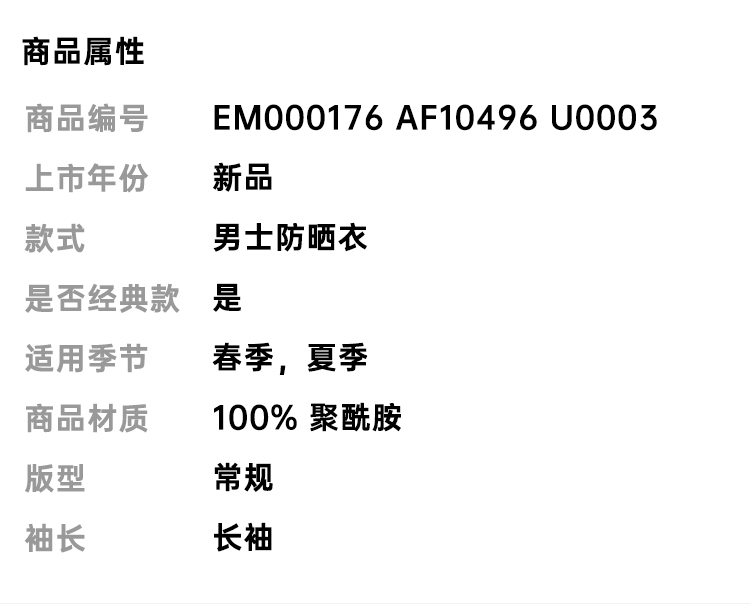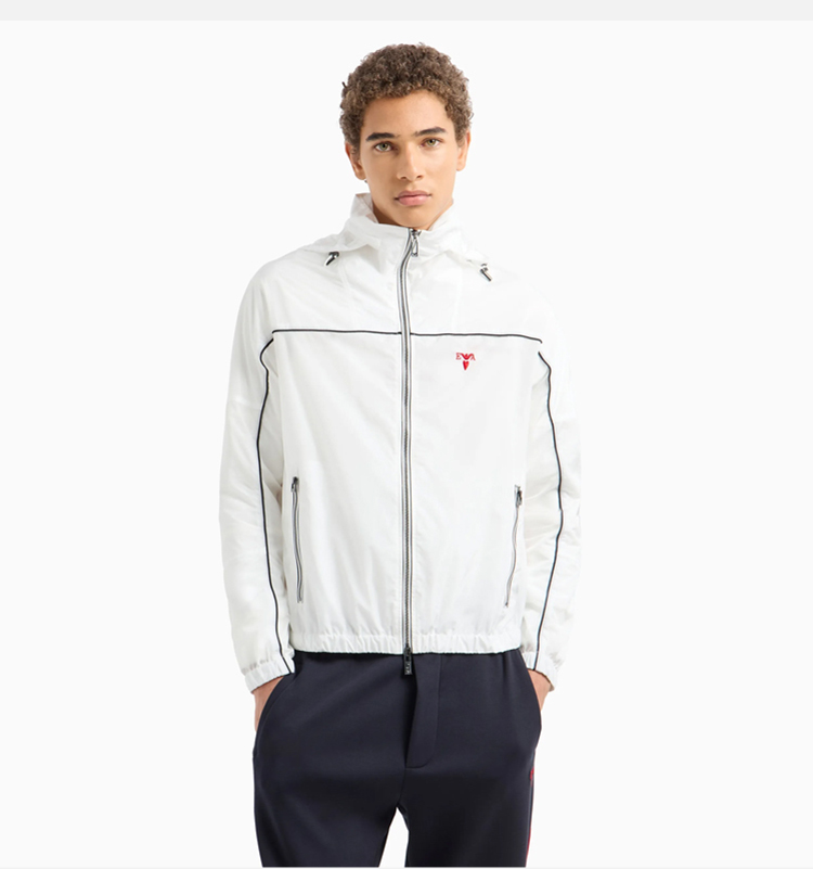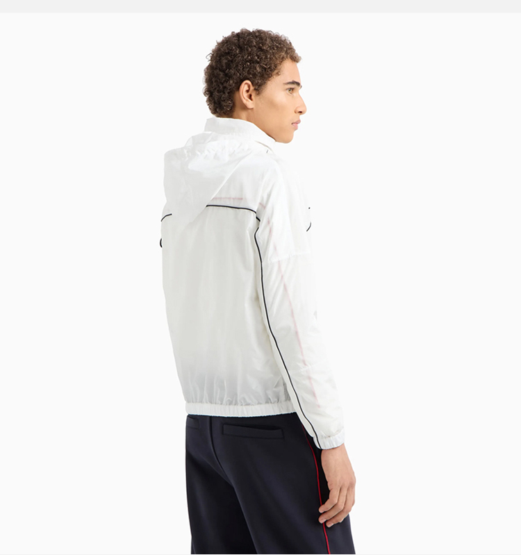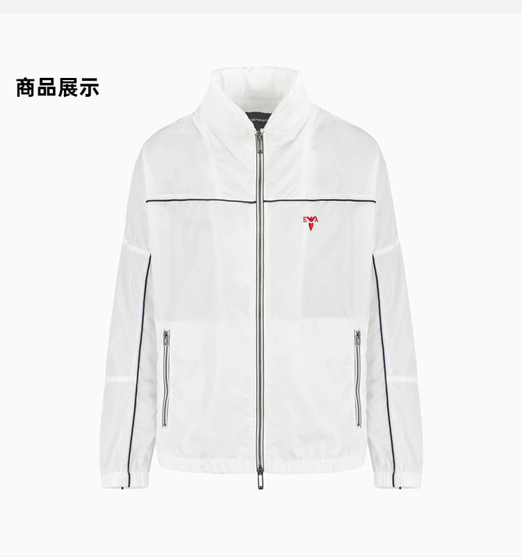EMPORIO ARMANI 阿玛尼 男士带拉链和滚边的尼龙短防晒衣 白色 EM000176 AF10496 U0003