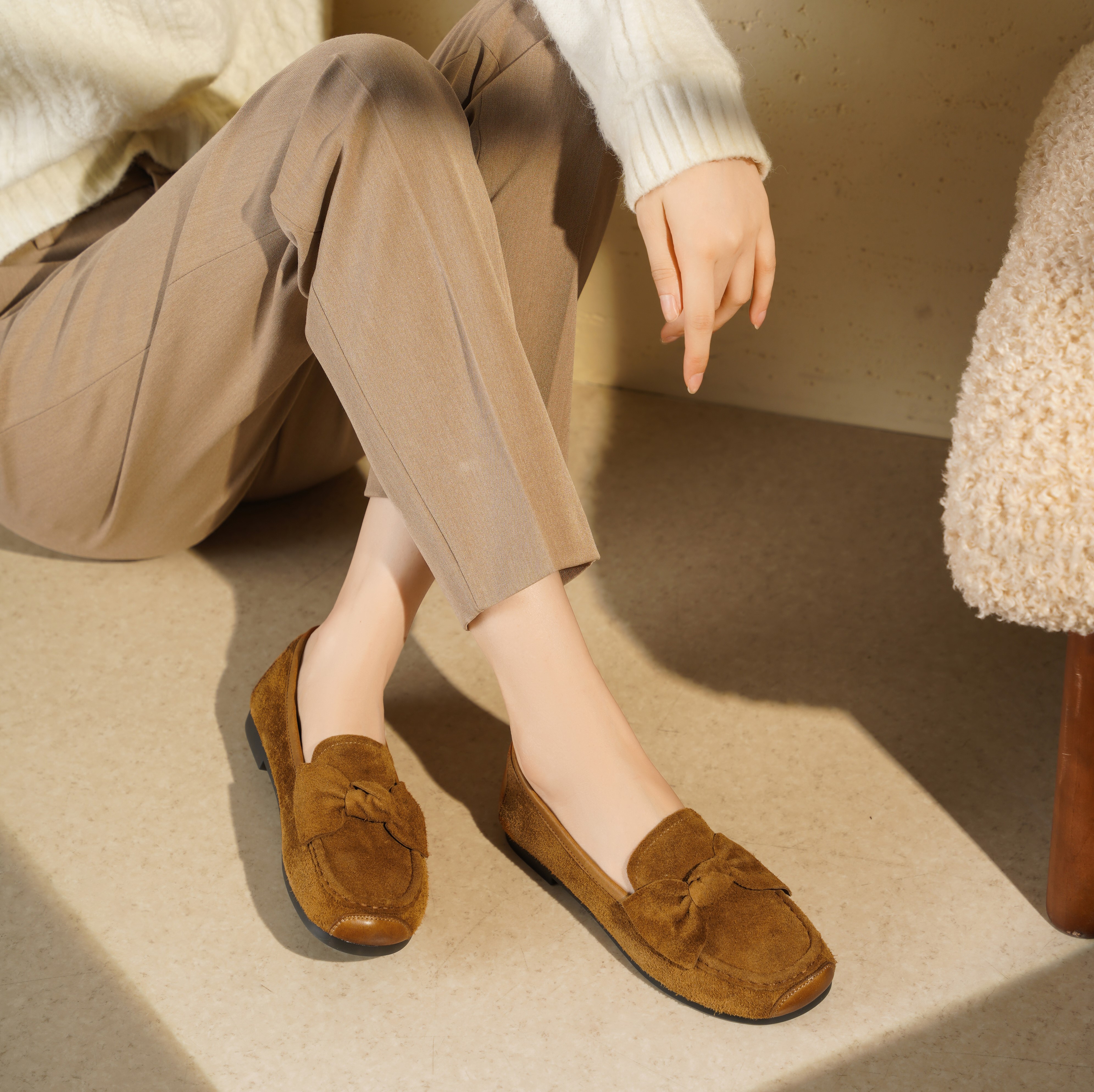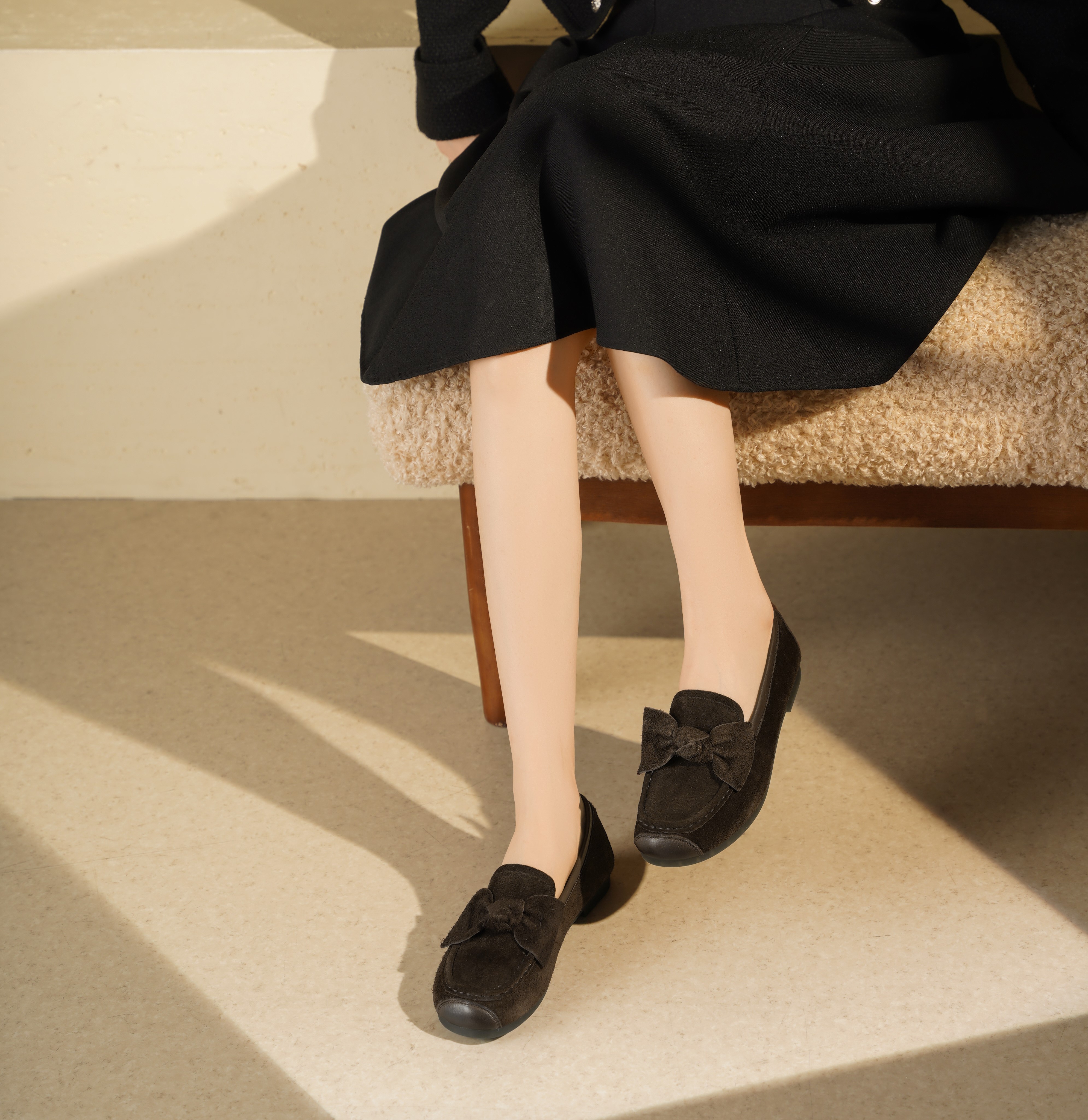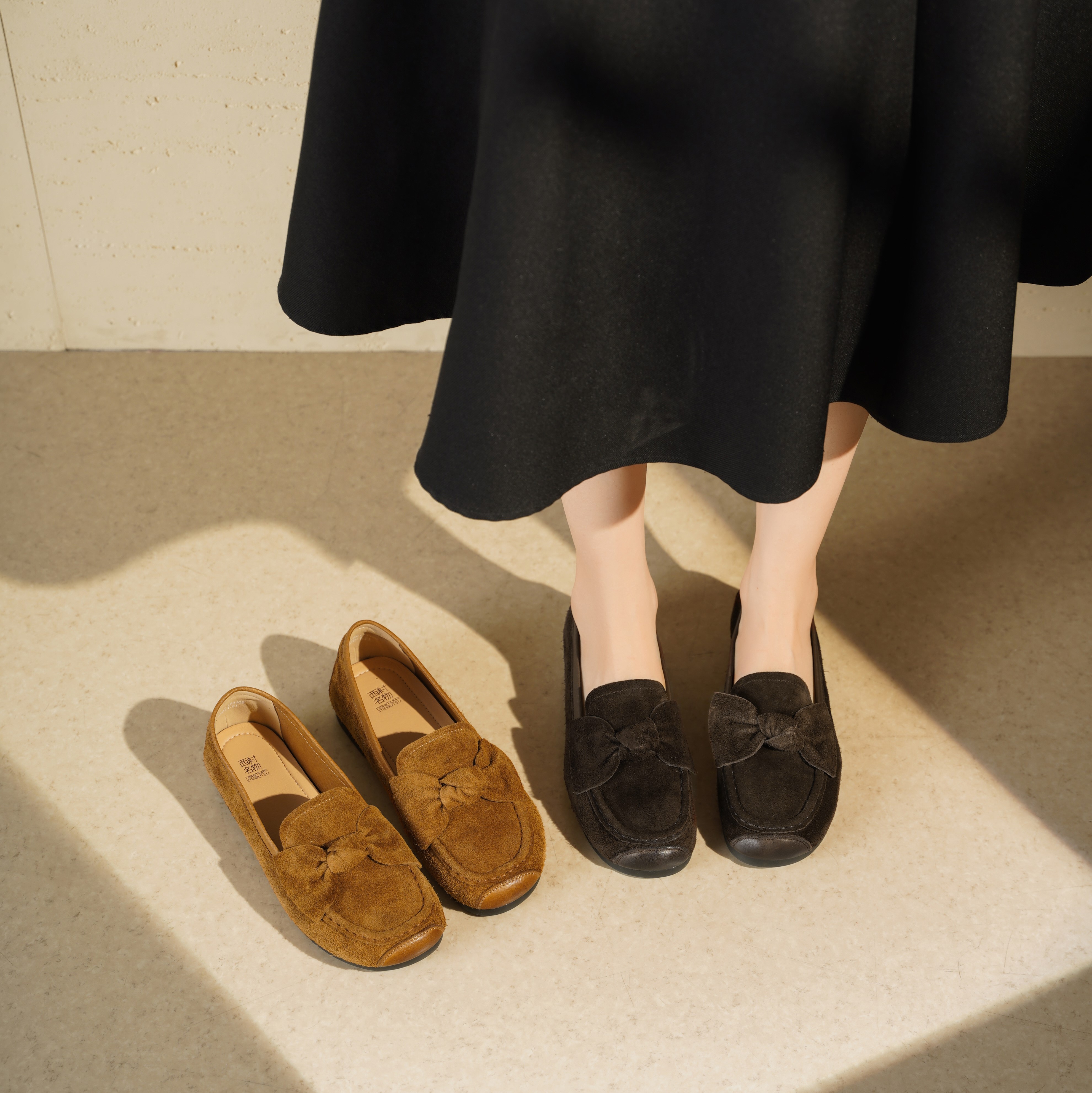 西村名物2025年秋冬新蝴蝶结薄地英伦风一脚蹬懒人豆豆鞋乐福鞋T25CE31741