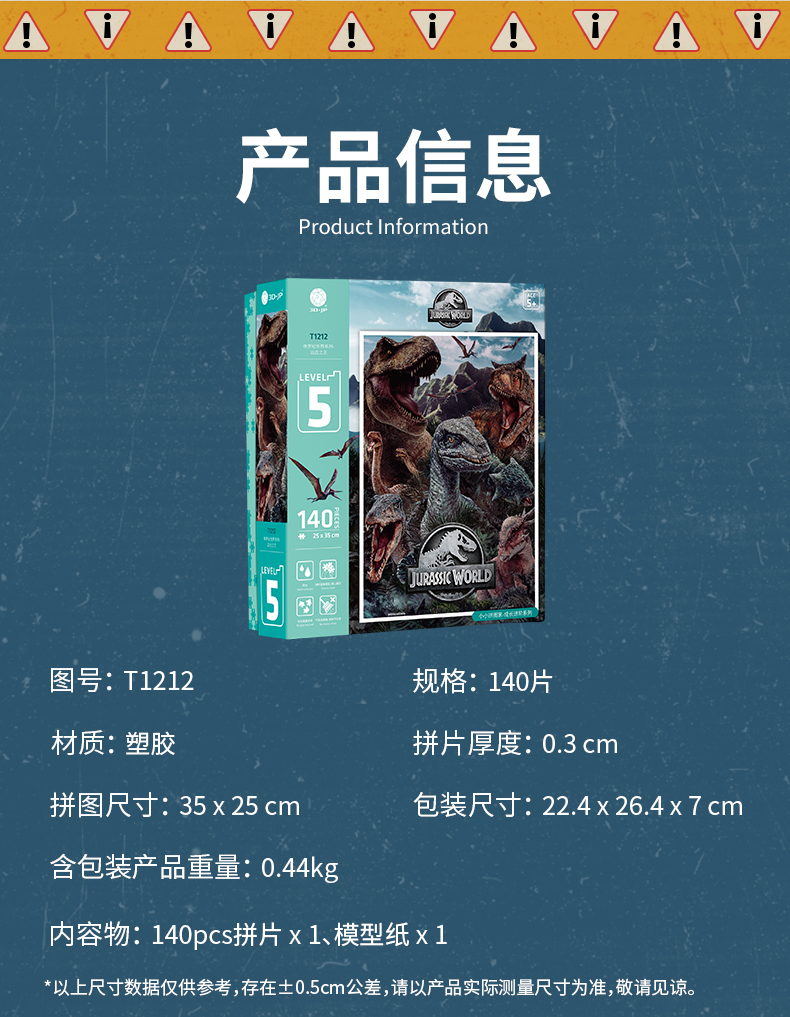 【折扣商品 不退不换】140片5阶 儿童拼图 T1212 侏罗纪世界系列-远古之王 4岁到6岁塑料大块益智玩具
