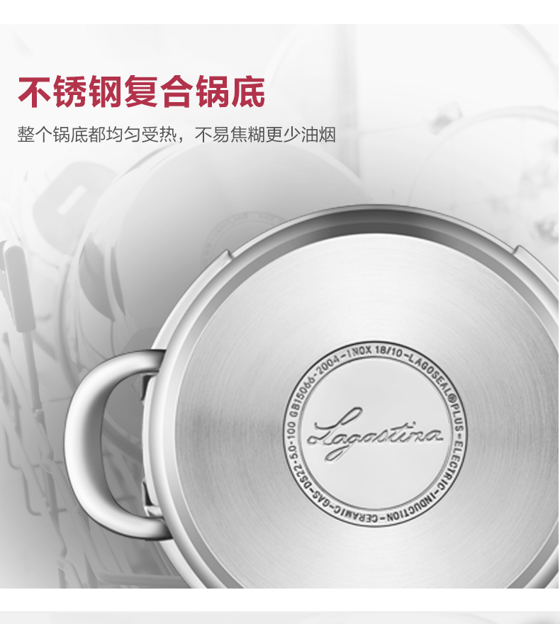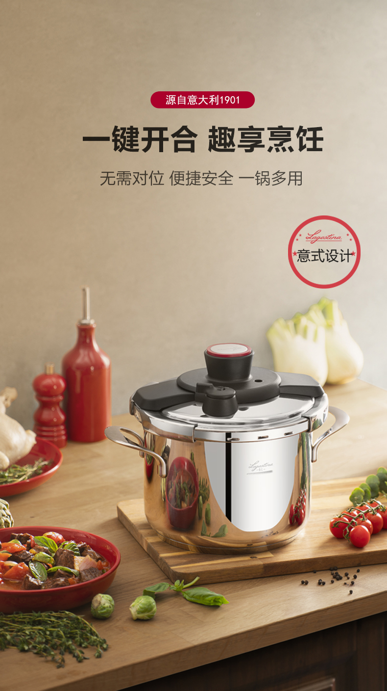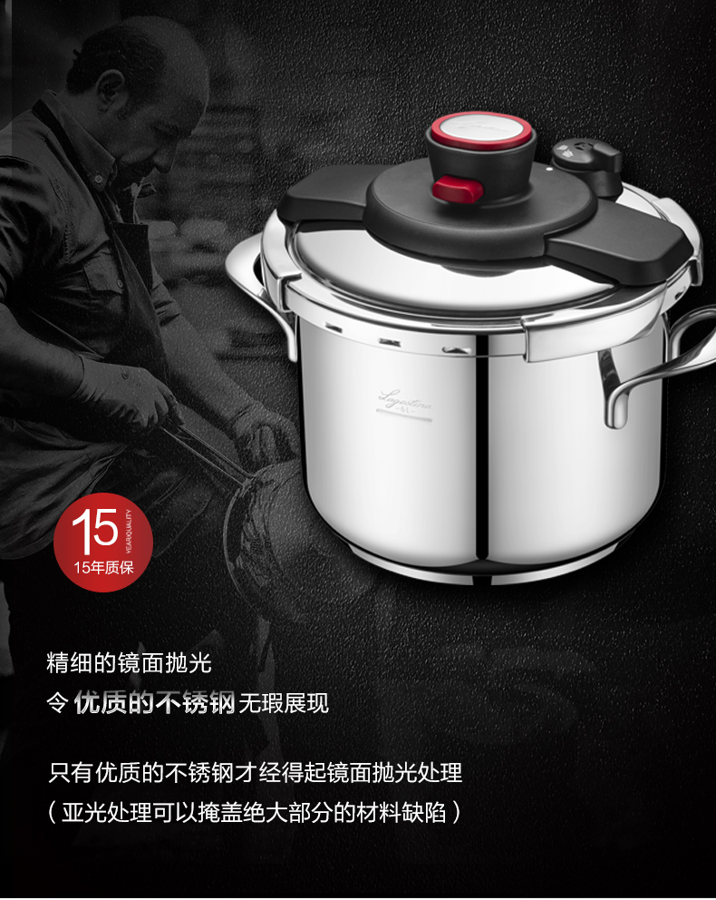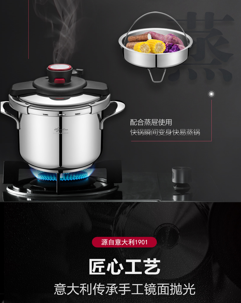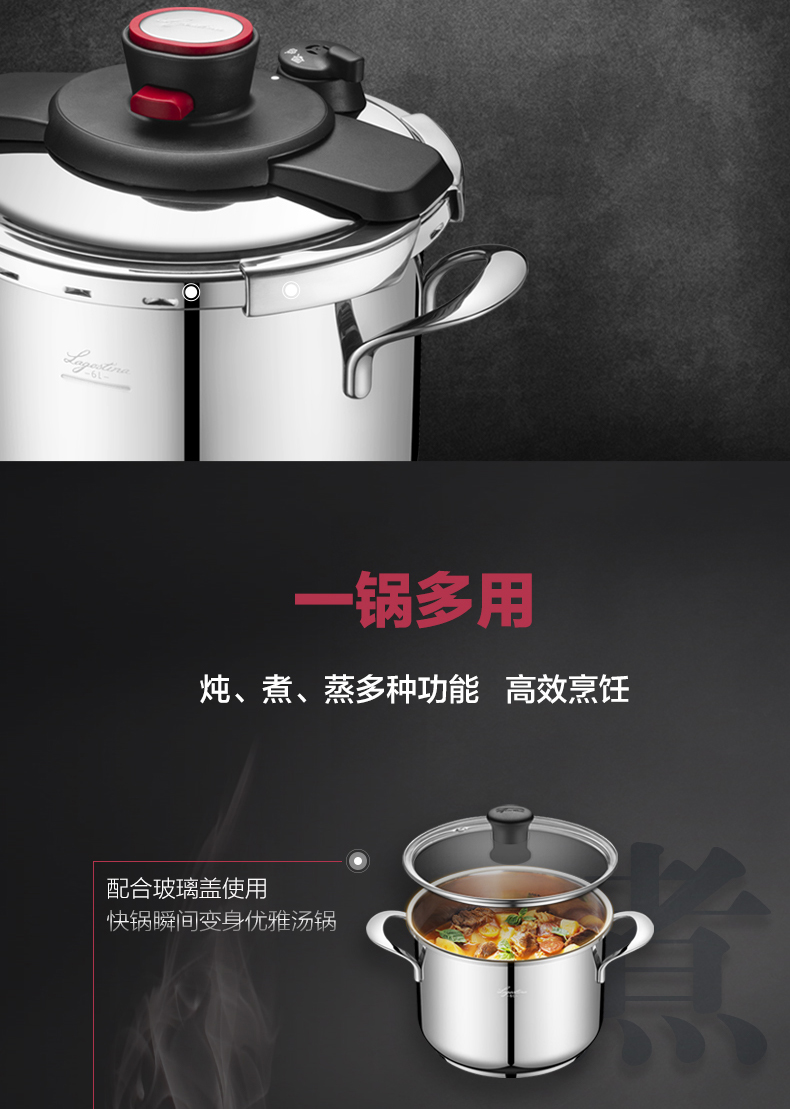 拉歌蒂尼高压锅不锈钢家用电磁炉燃气通用卡普索压力锅6L