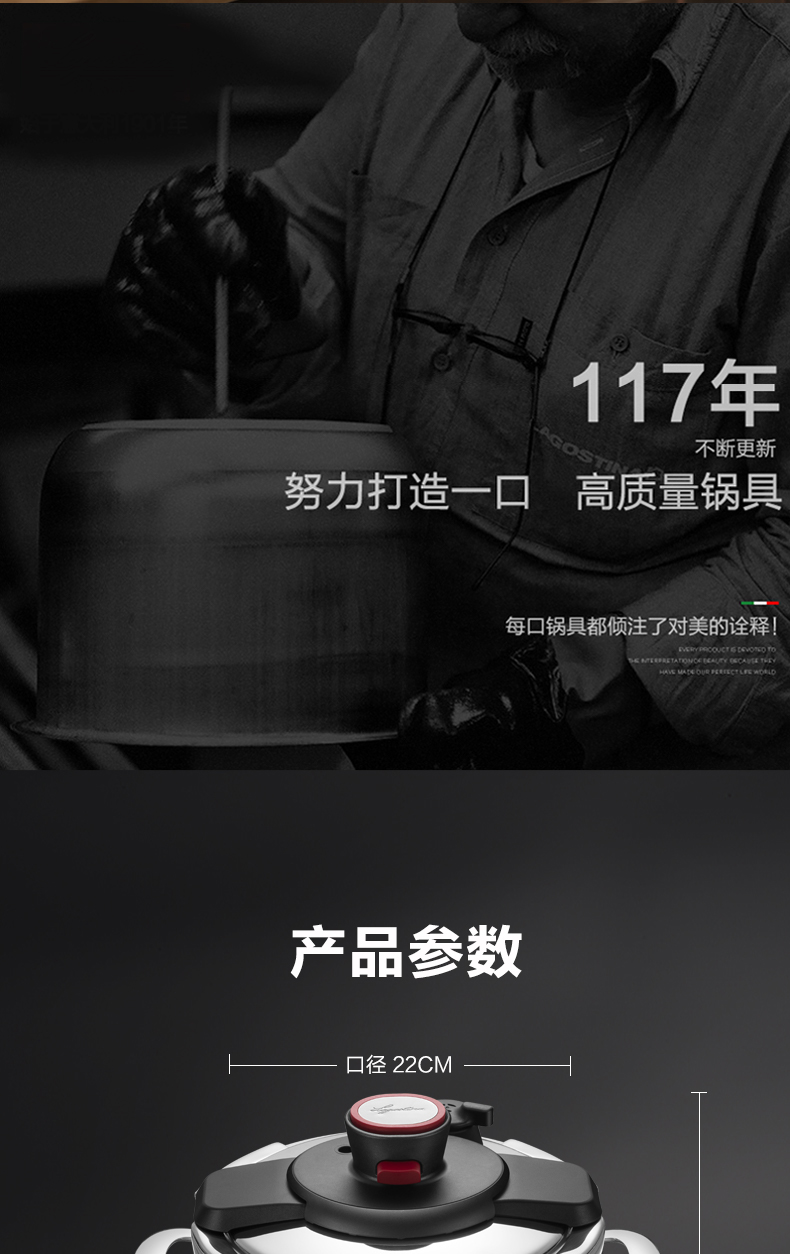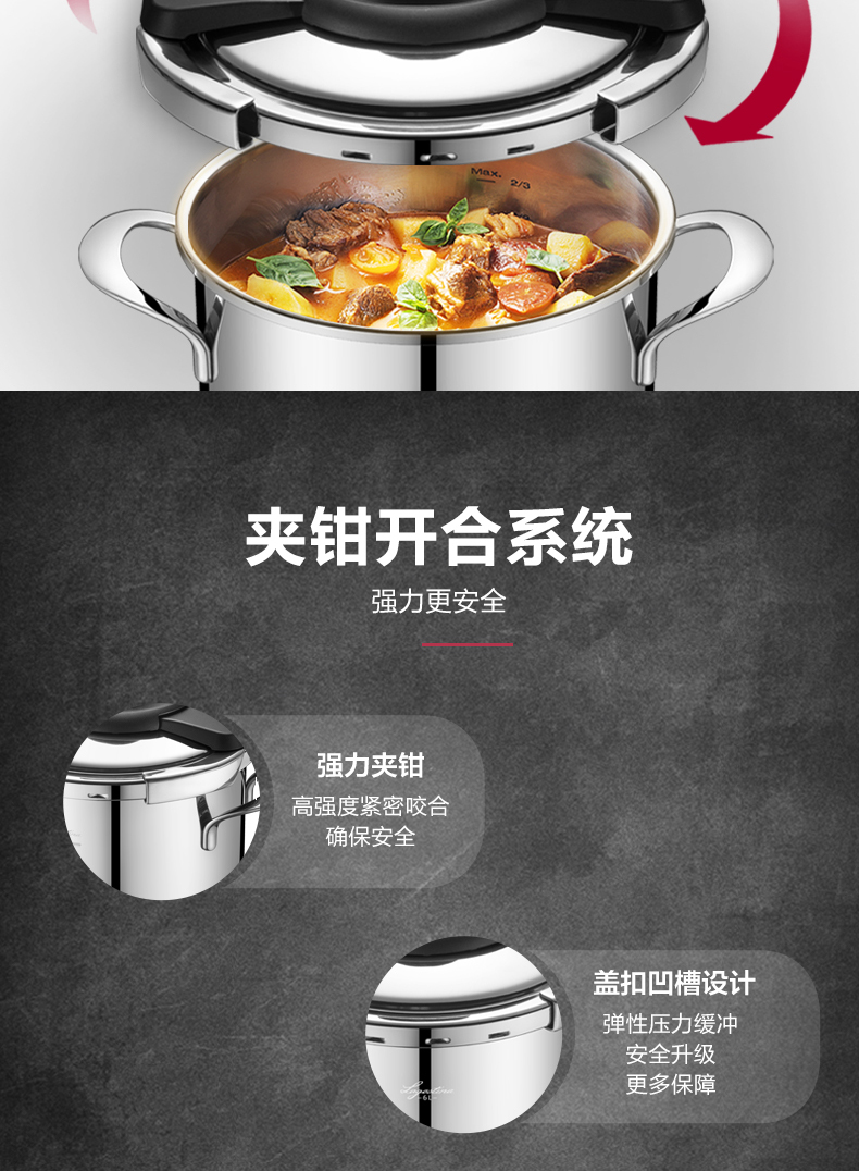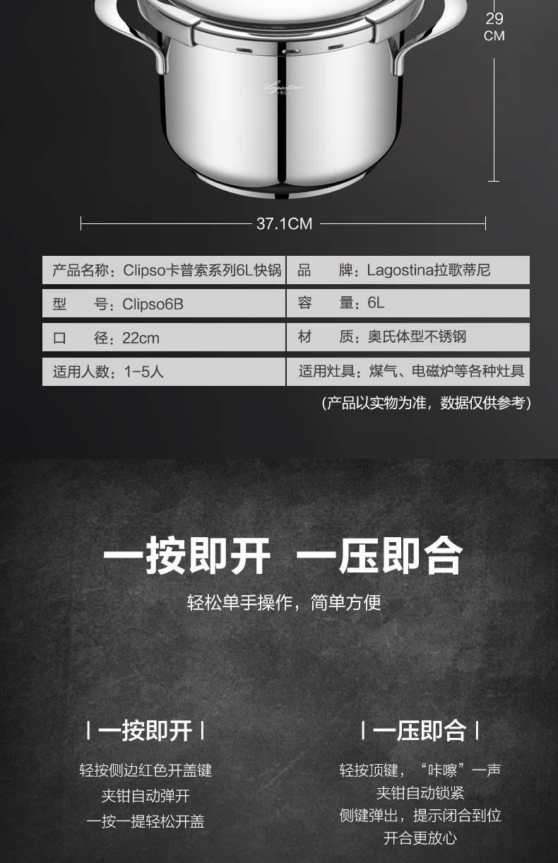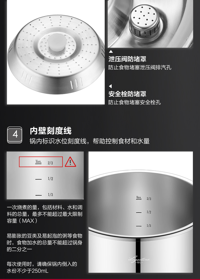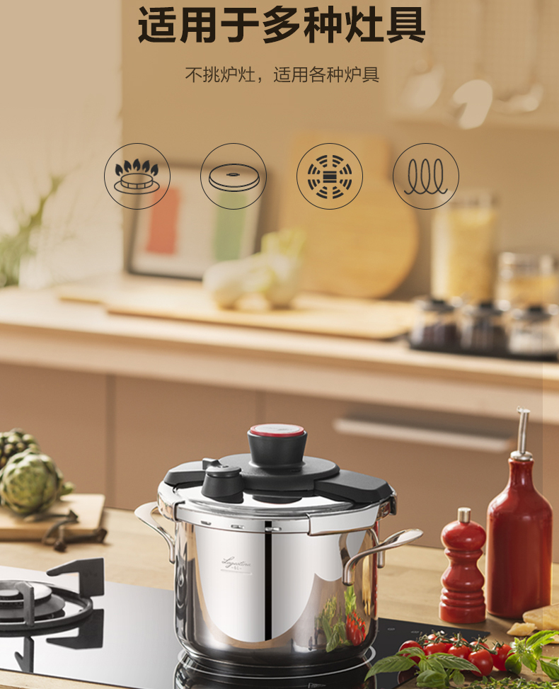 拉歌蒂尼高压锅不锈钢家用电磁炉燃气通用卡普索压力锅6L