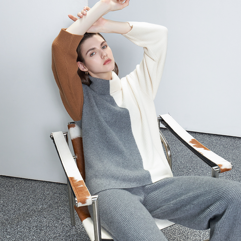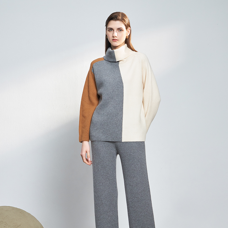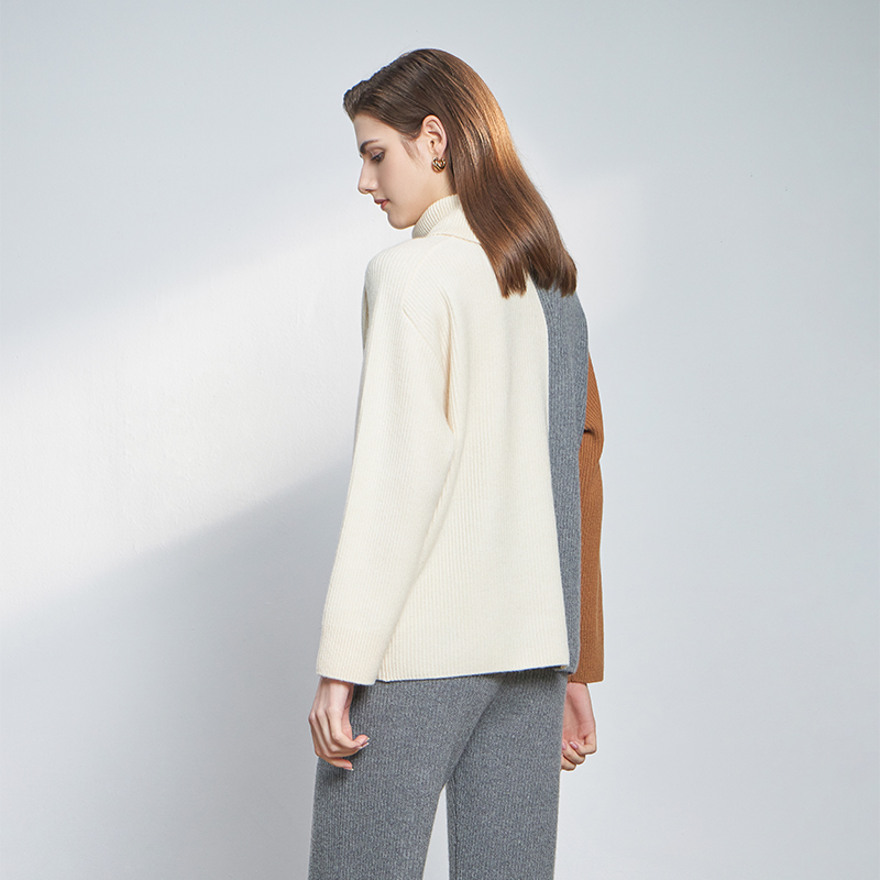 【不对称设计高领斗篷衫】羊绒世家22年秋冬新品撞色不对称设计100%山羊绒衫时尚慵懒风长袖宽松毛衣