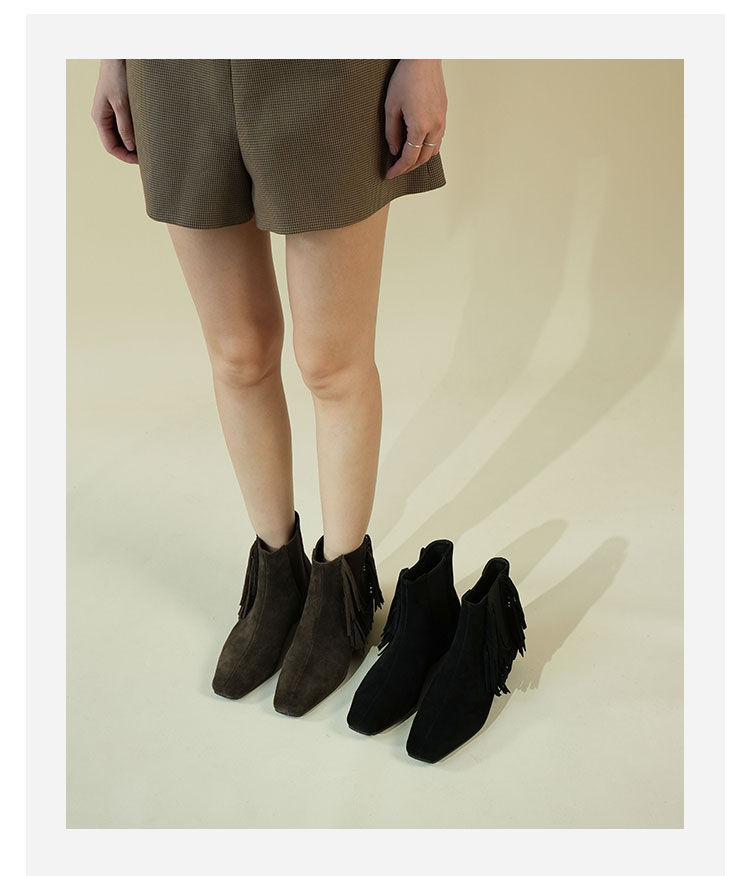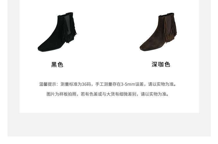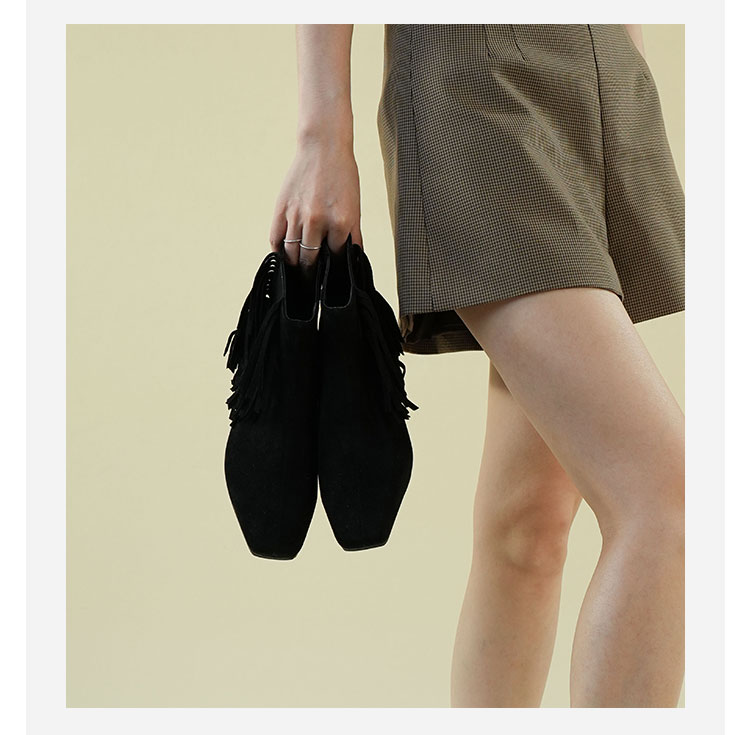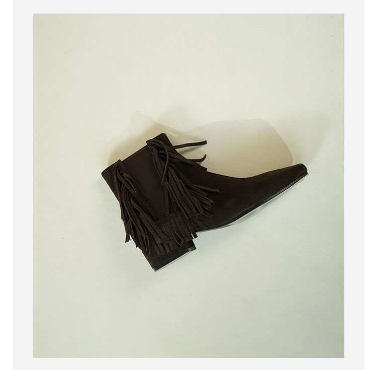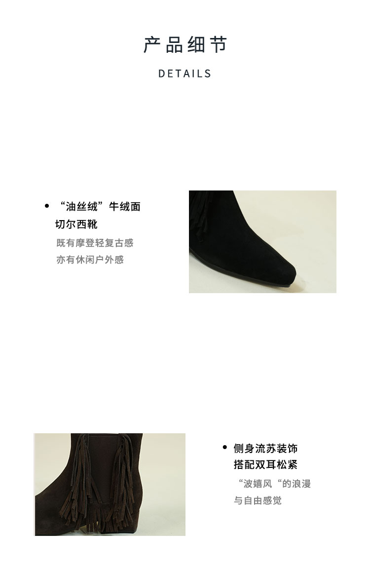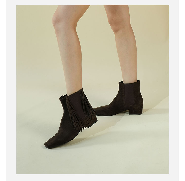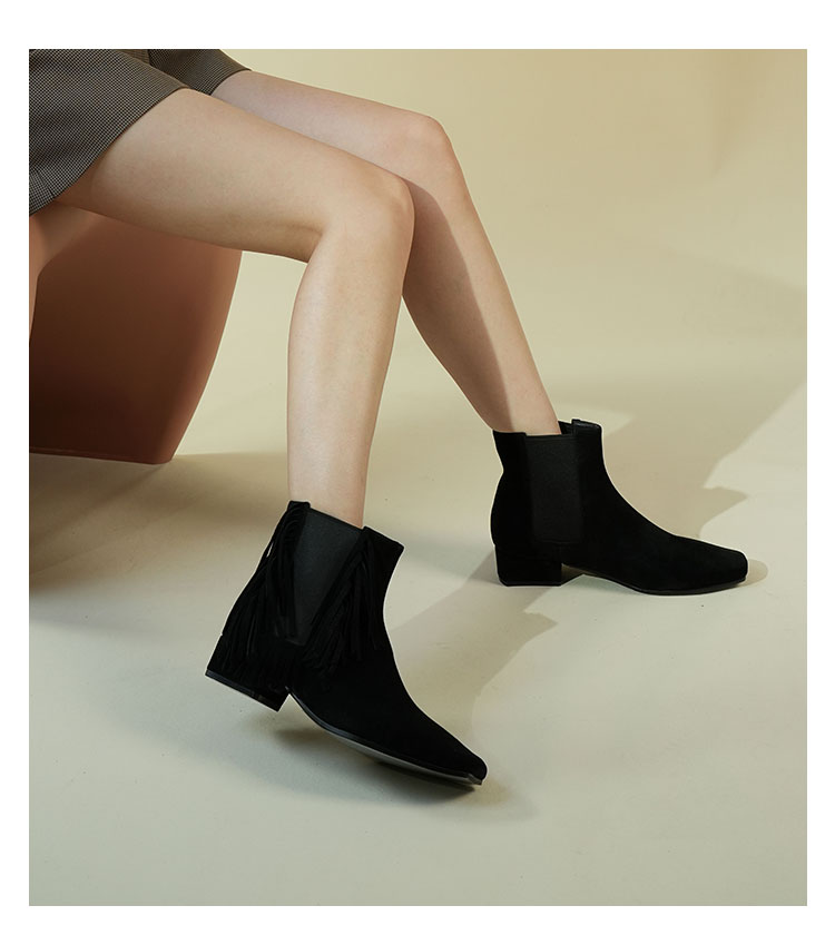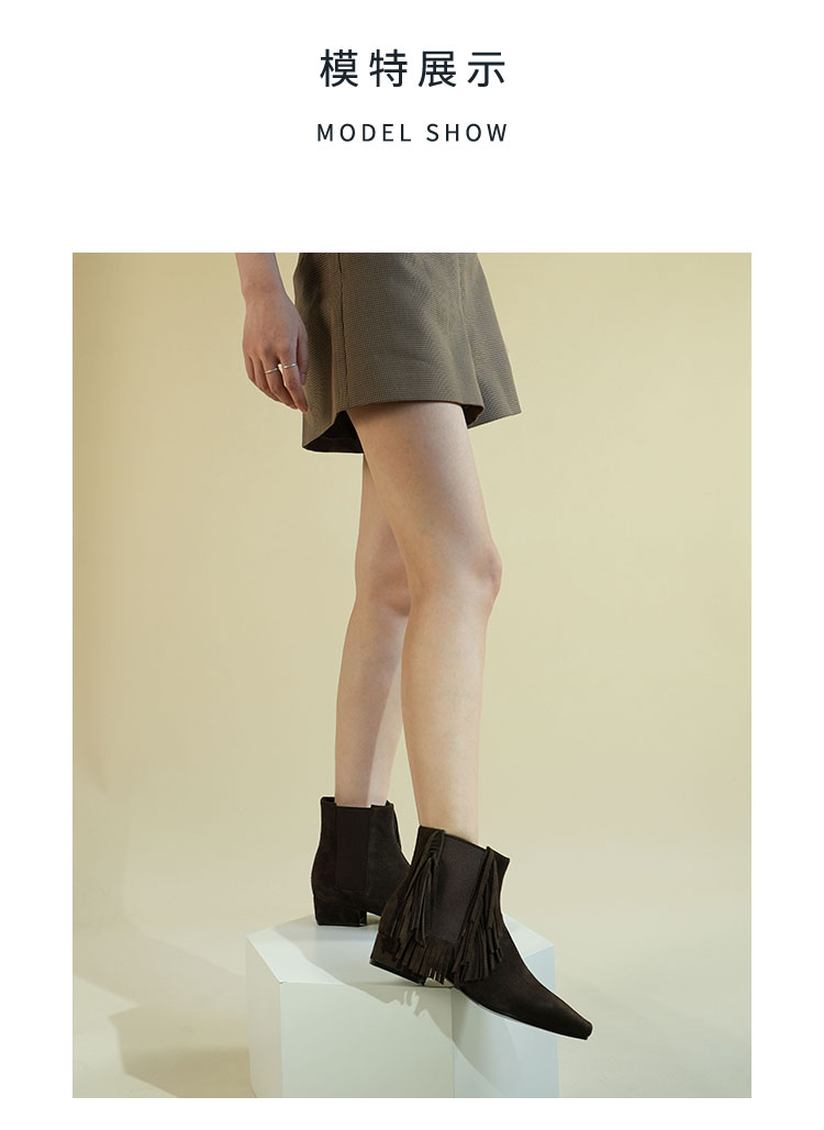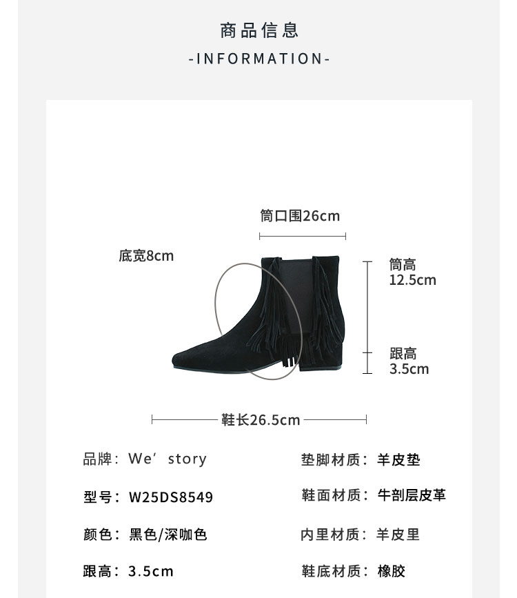 Westory2025年冬季小方头方根流苏切尔西“波嬉风“休闲短靴W25DS85491