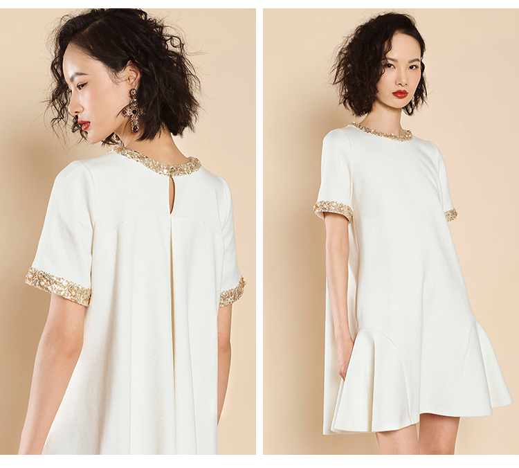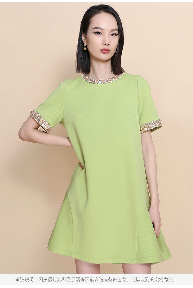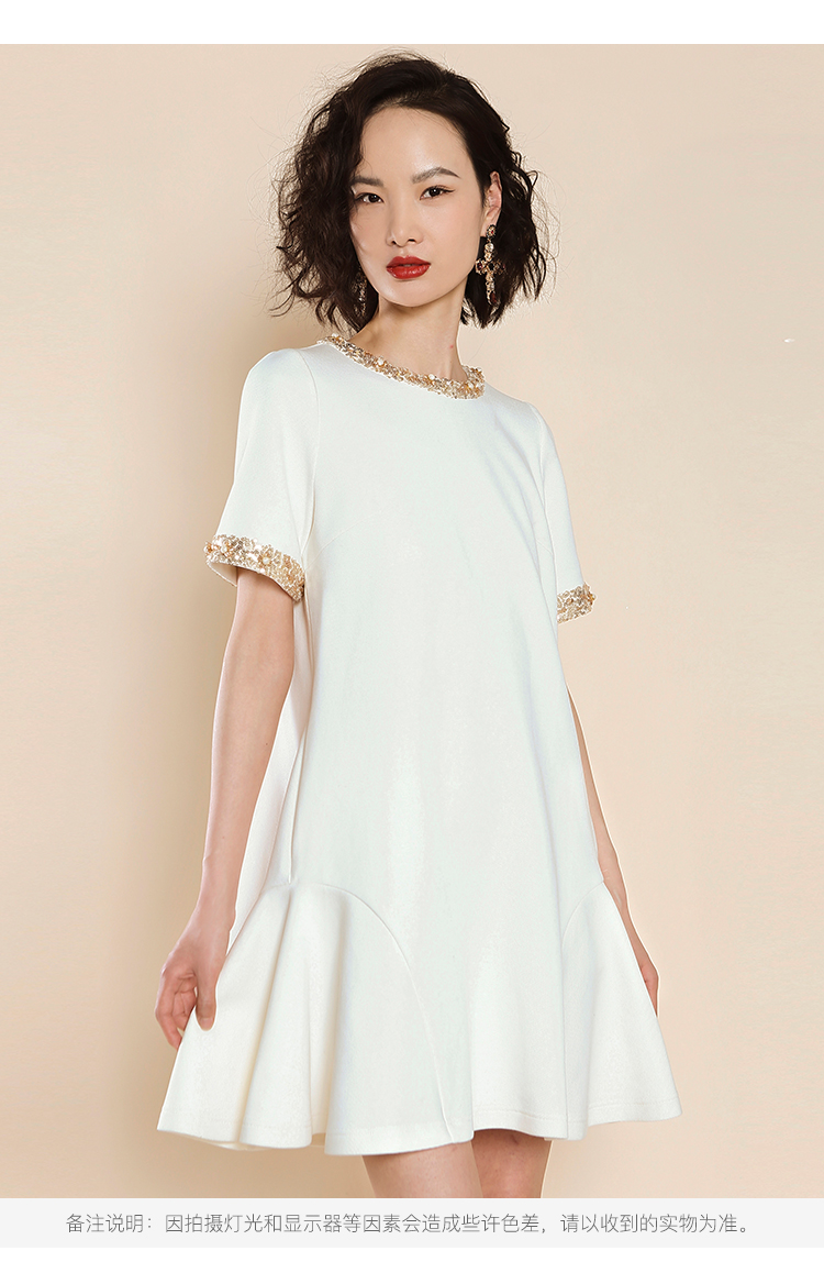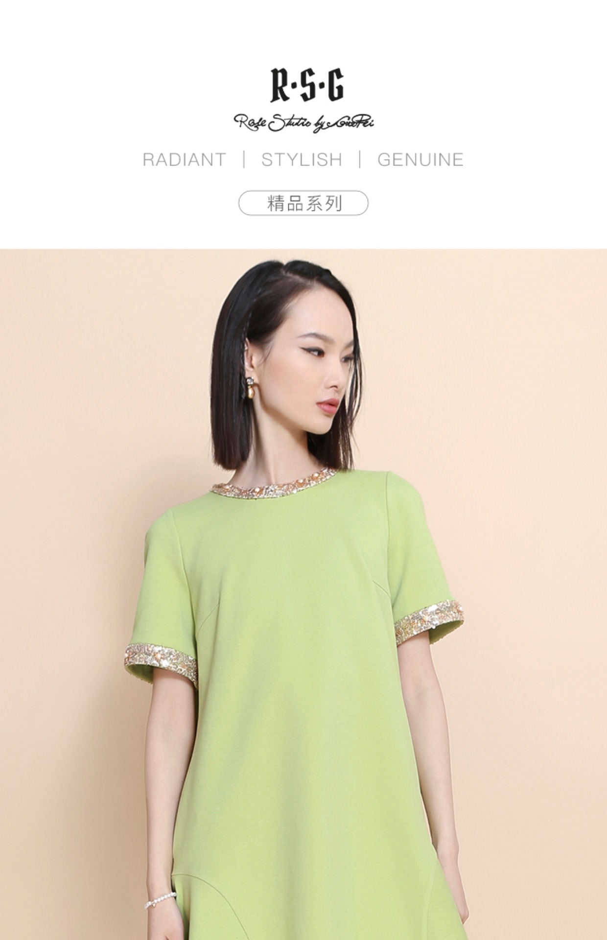 RSG郭培成衣品牌休闲运动手工钉珠装饰设计感短袖连衣裙夏季