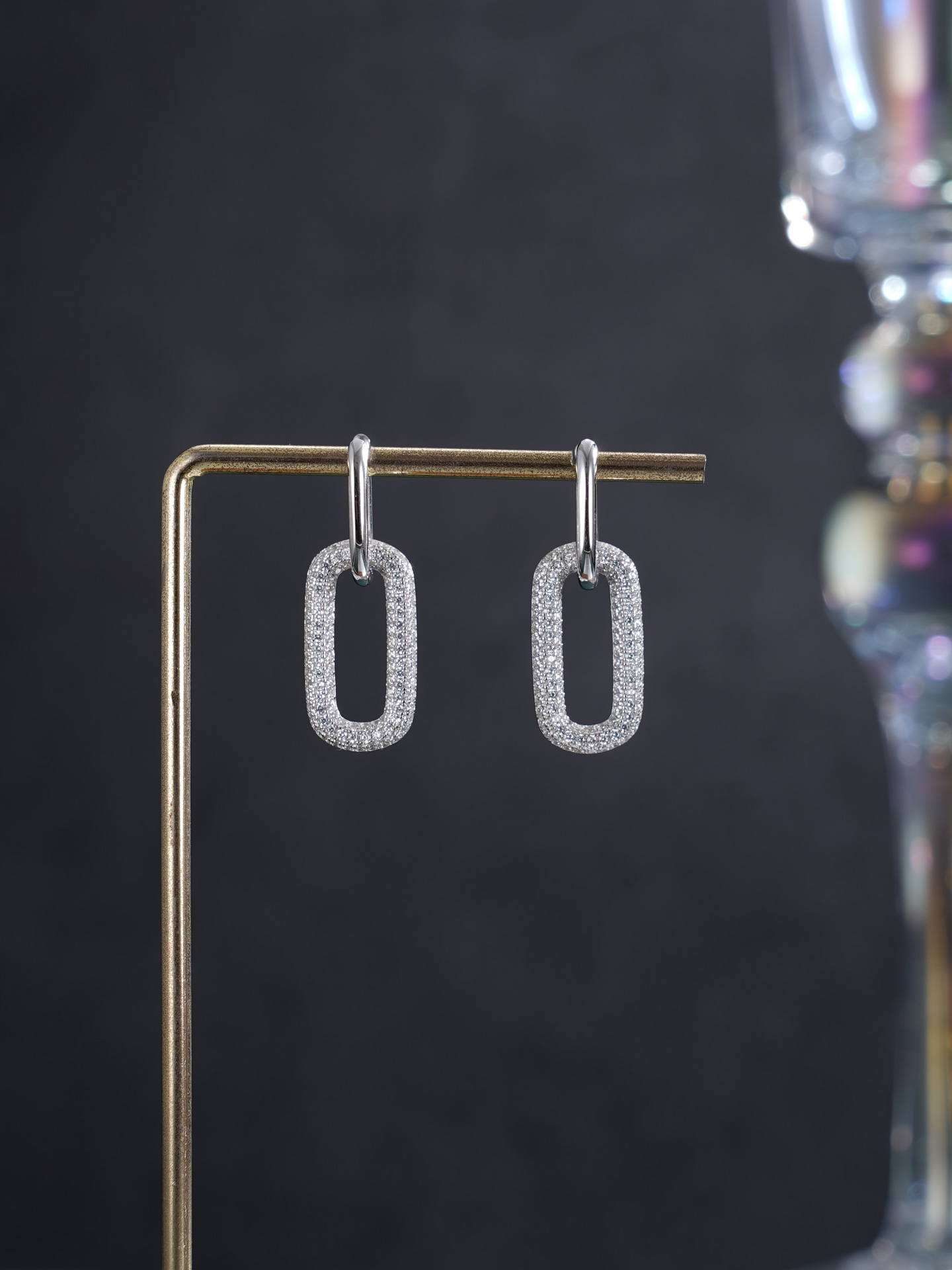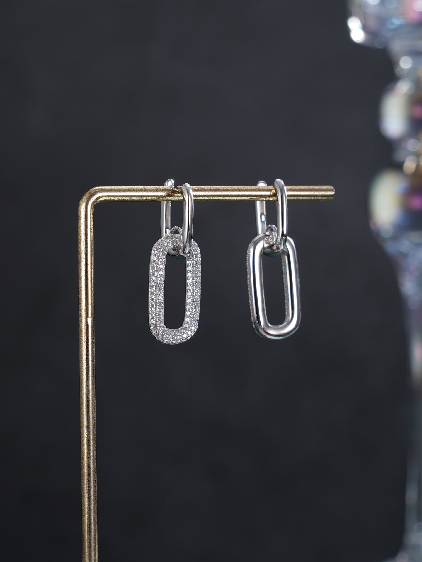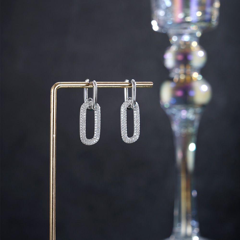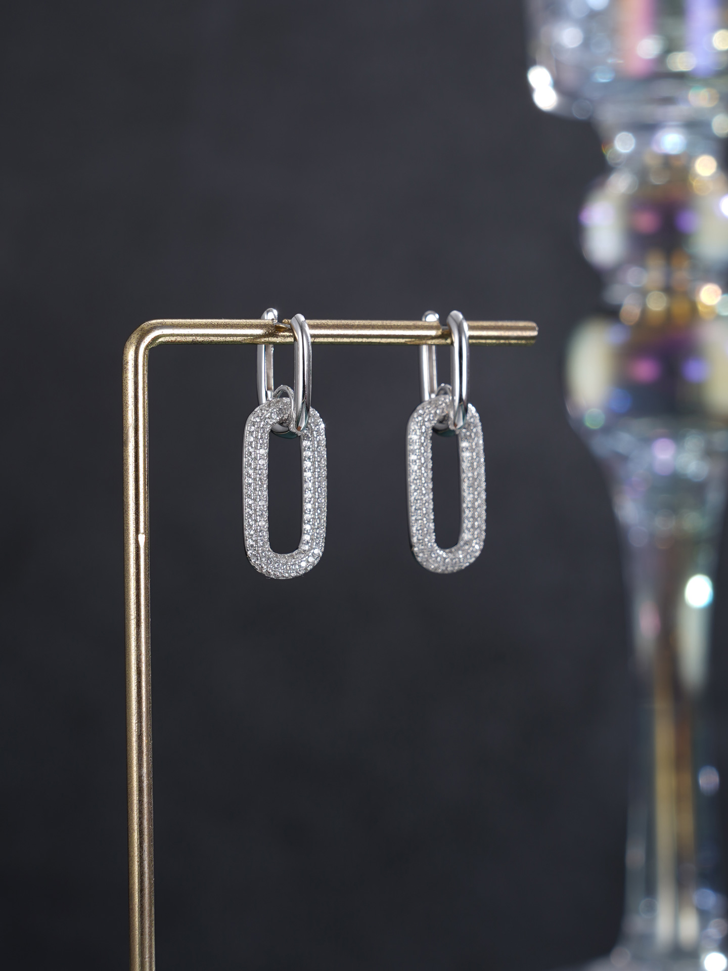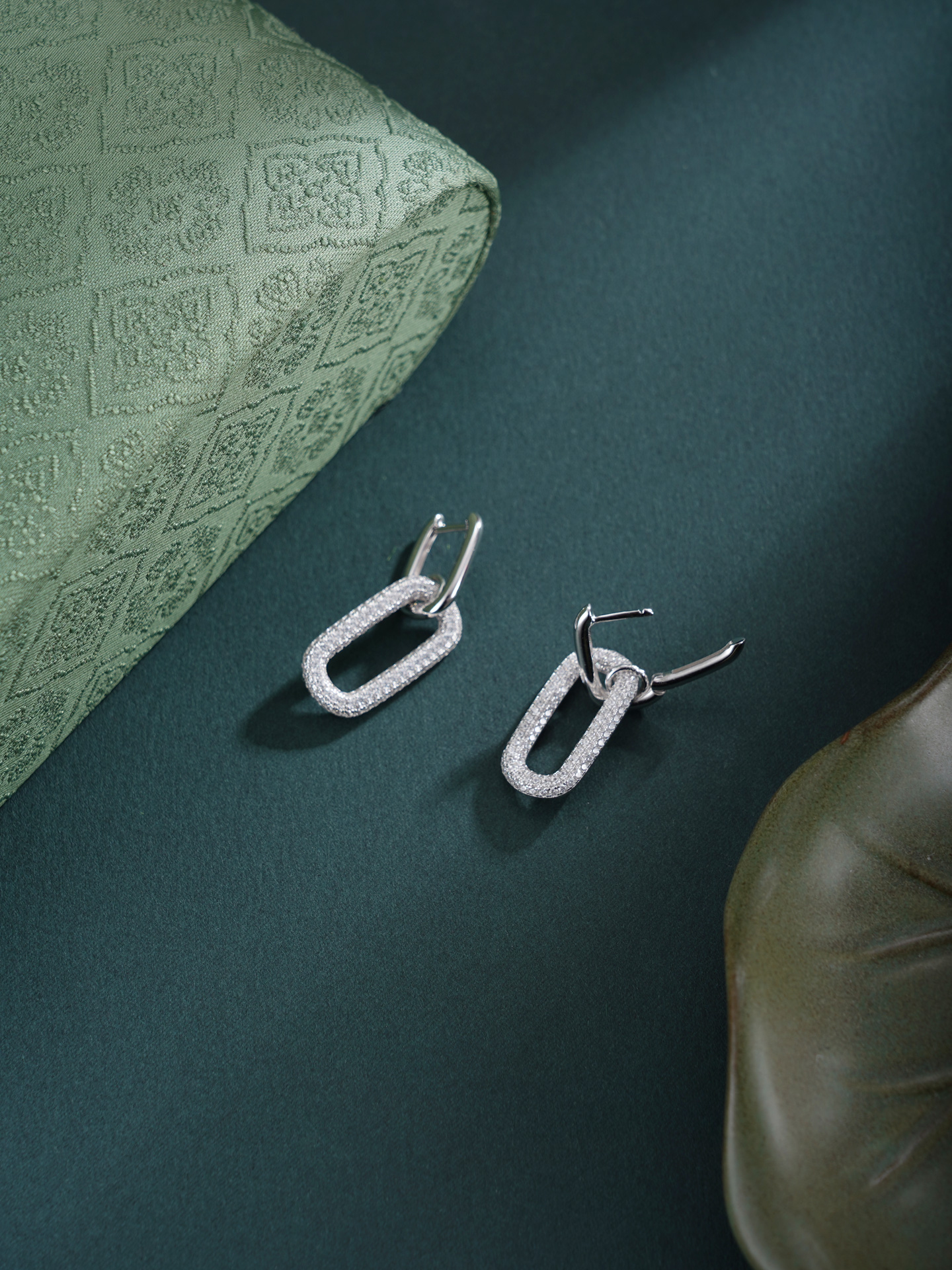 【寓意】:耳饰以纯银双环勾勒,一半抛光,澄澈无瑕;一半锆石镶嵌,璀璨生辉。取名“雪域极光”,象征在纯净之境中追寻,终遇绚烂奇景。