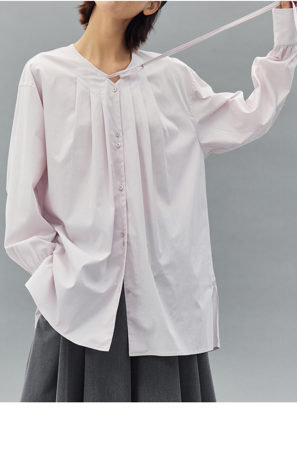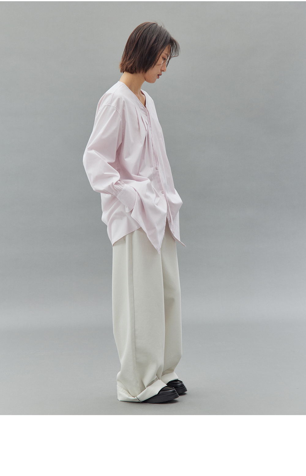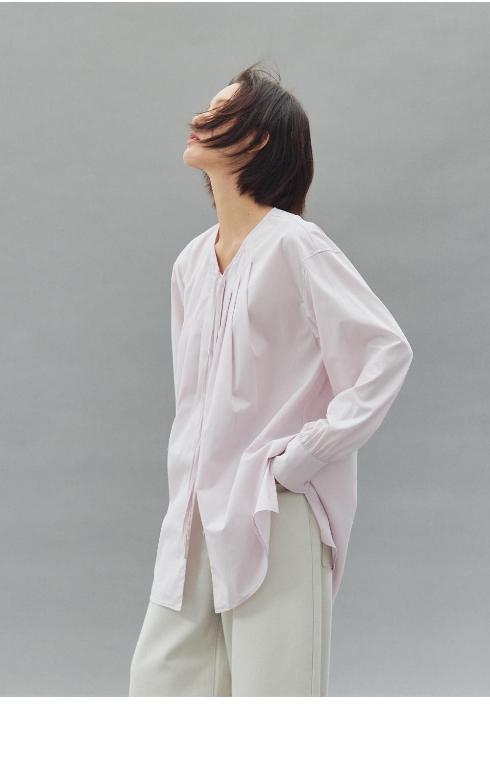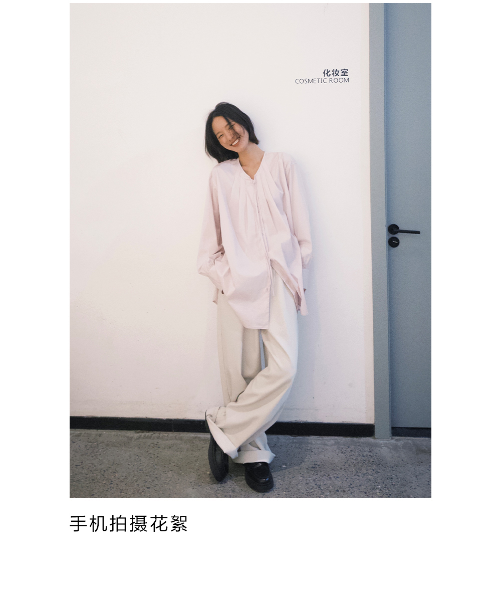 步履不停/4C11202C/初秋水粉色宽松V领无领衬衫