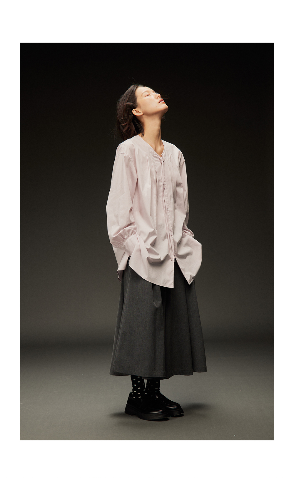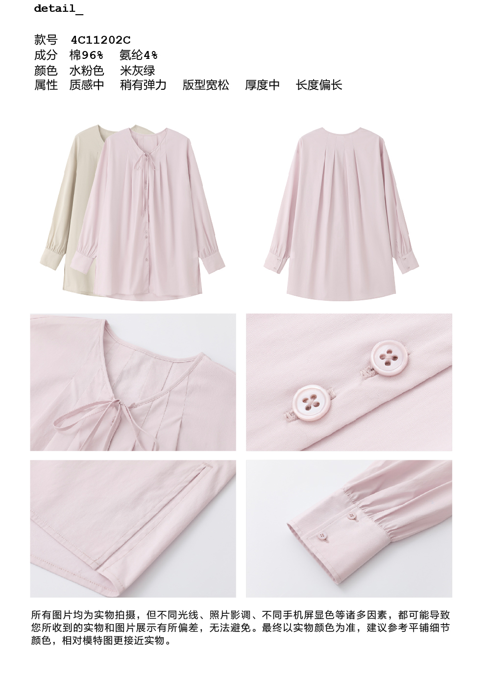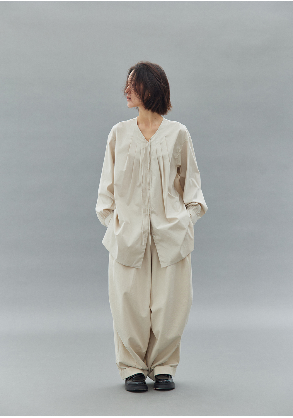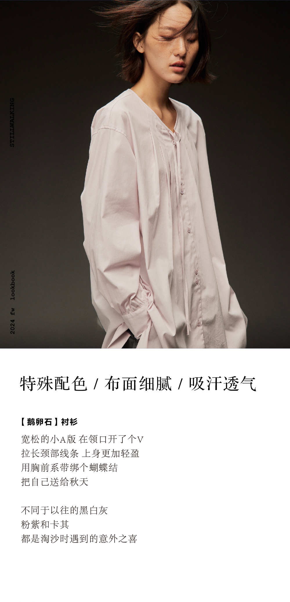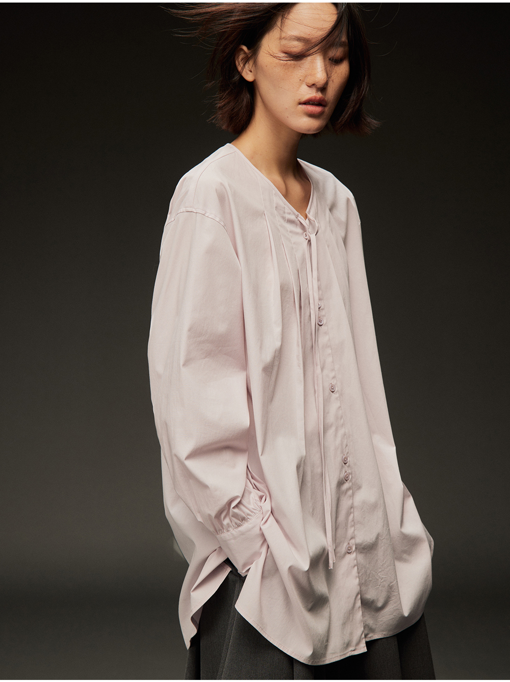 步履不停/4C11202C/初秋水粉色宽松V领无领衬衫