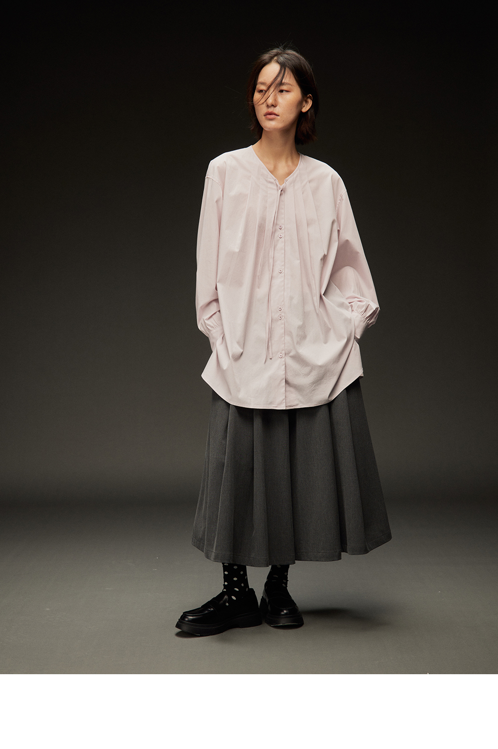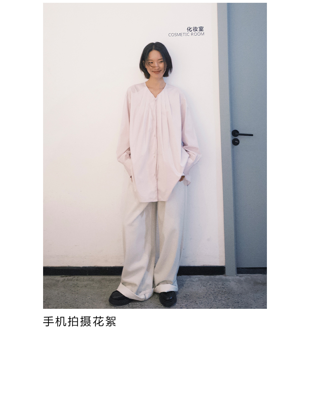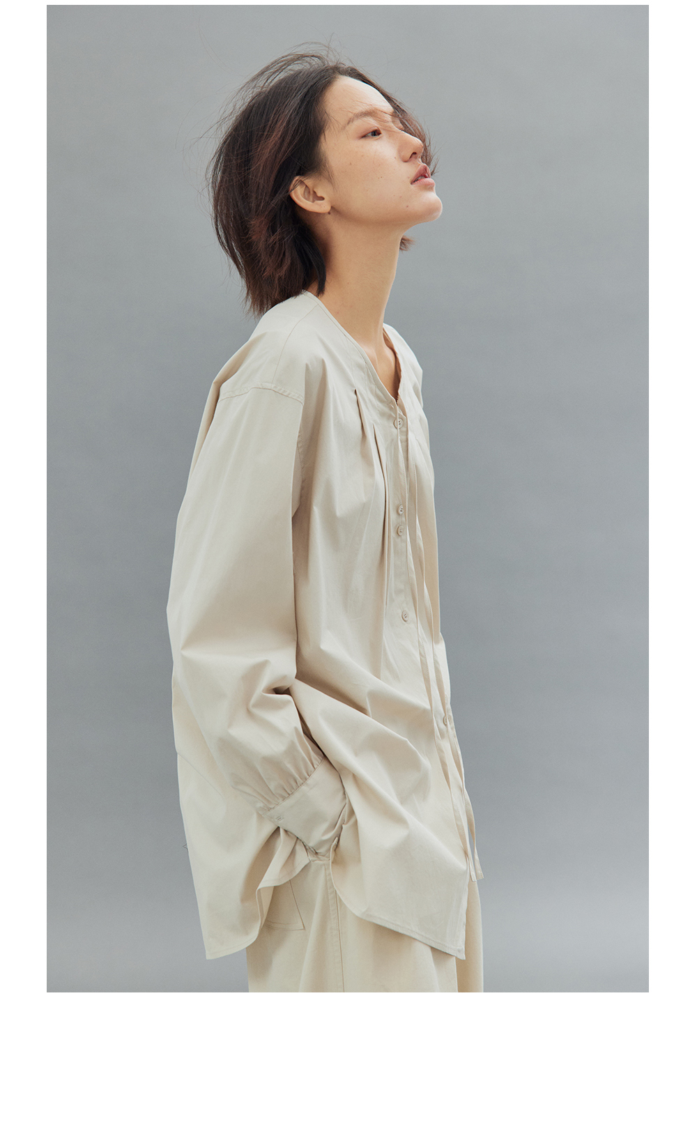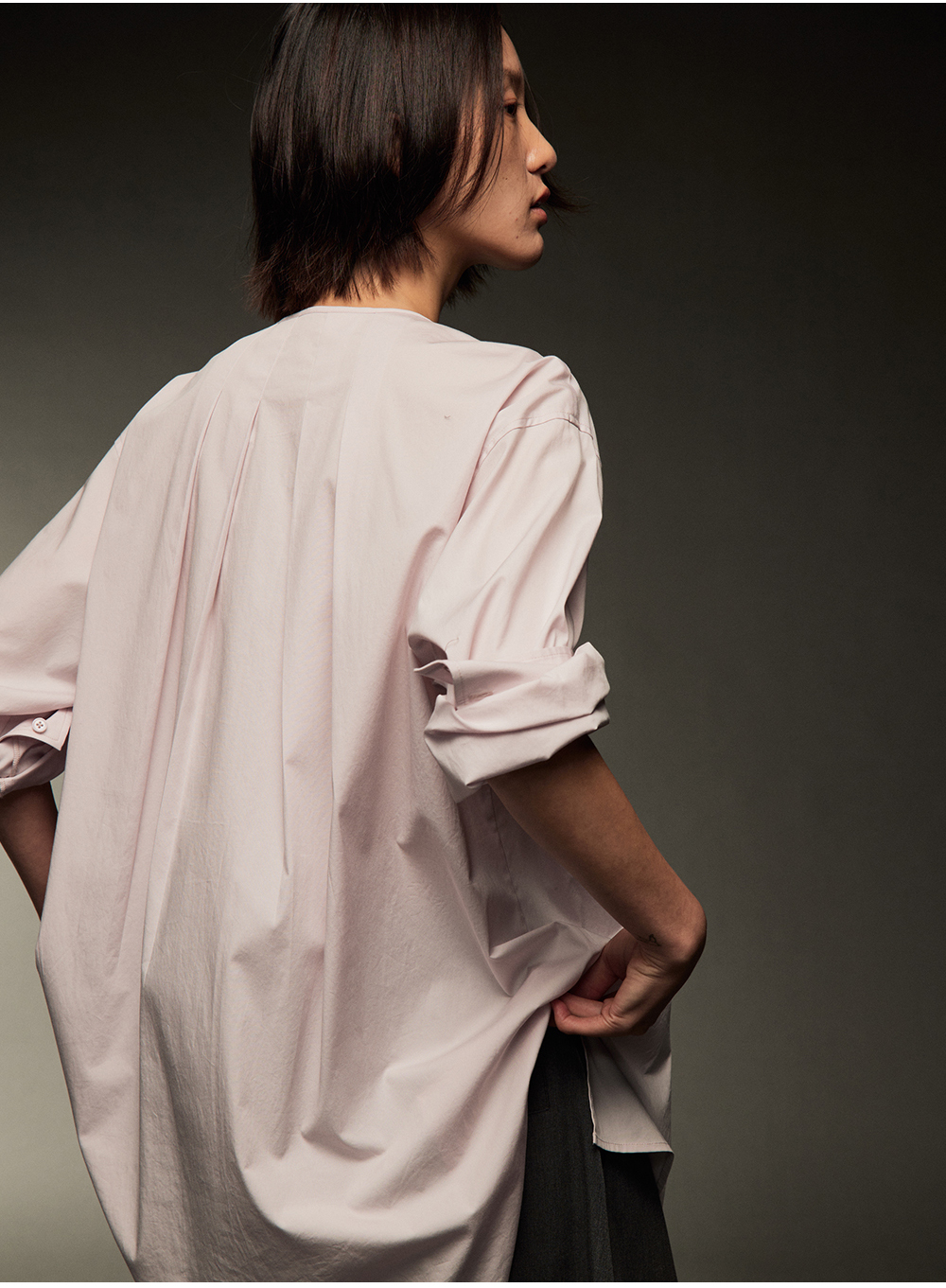 步履不停/4C11202C/初秋水粉色宽松V领无领衬衫