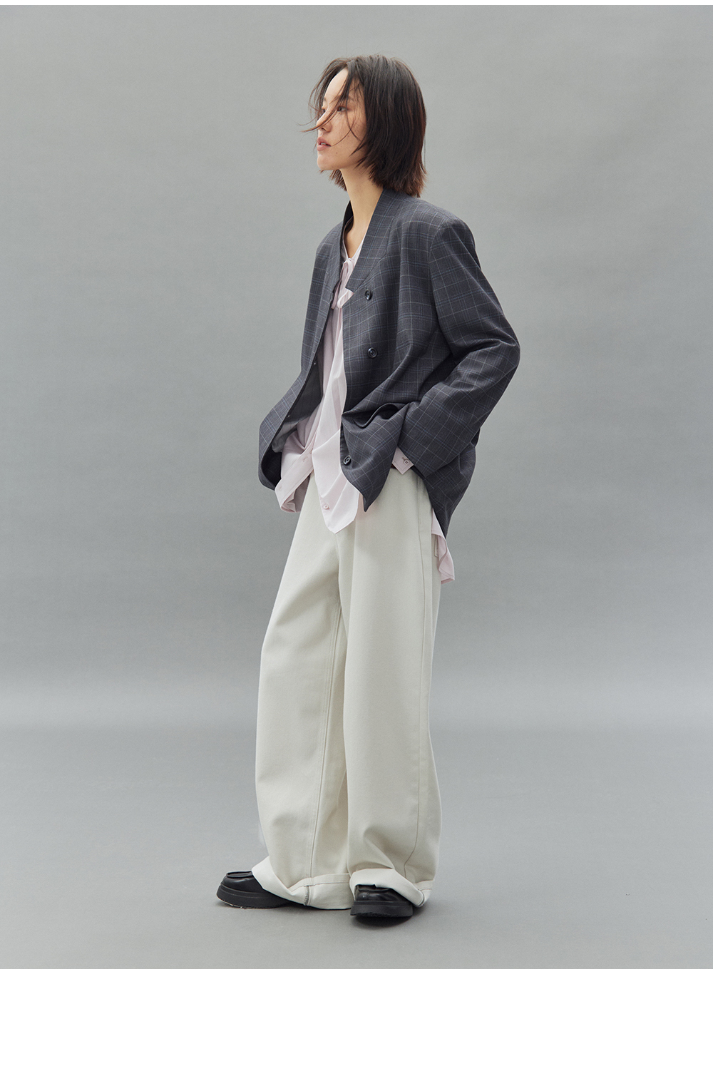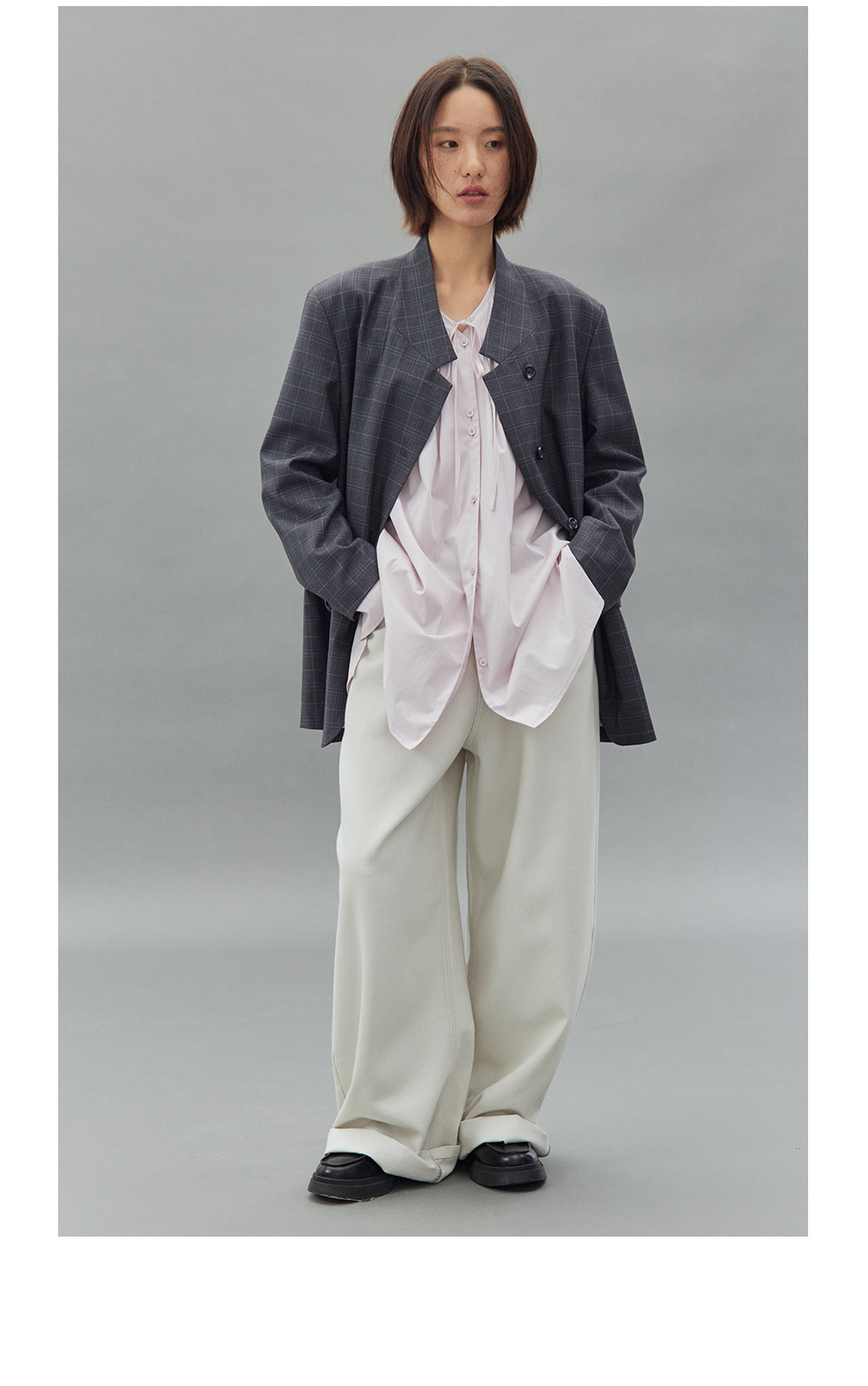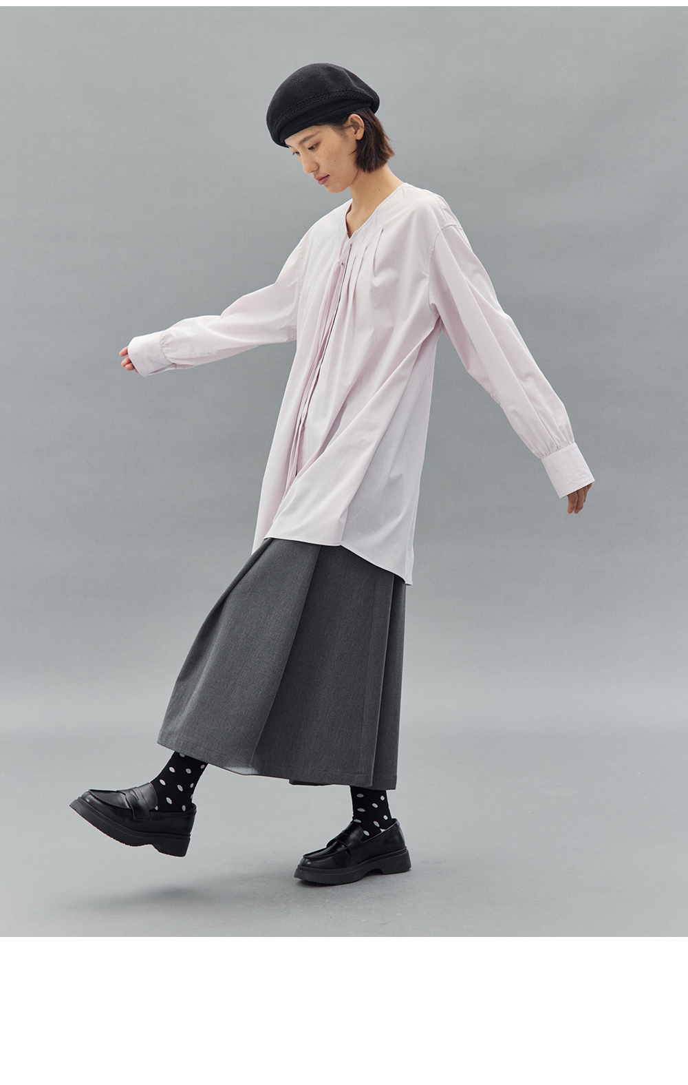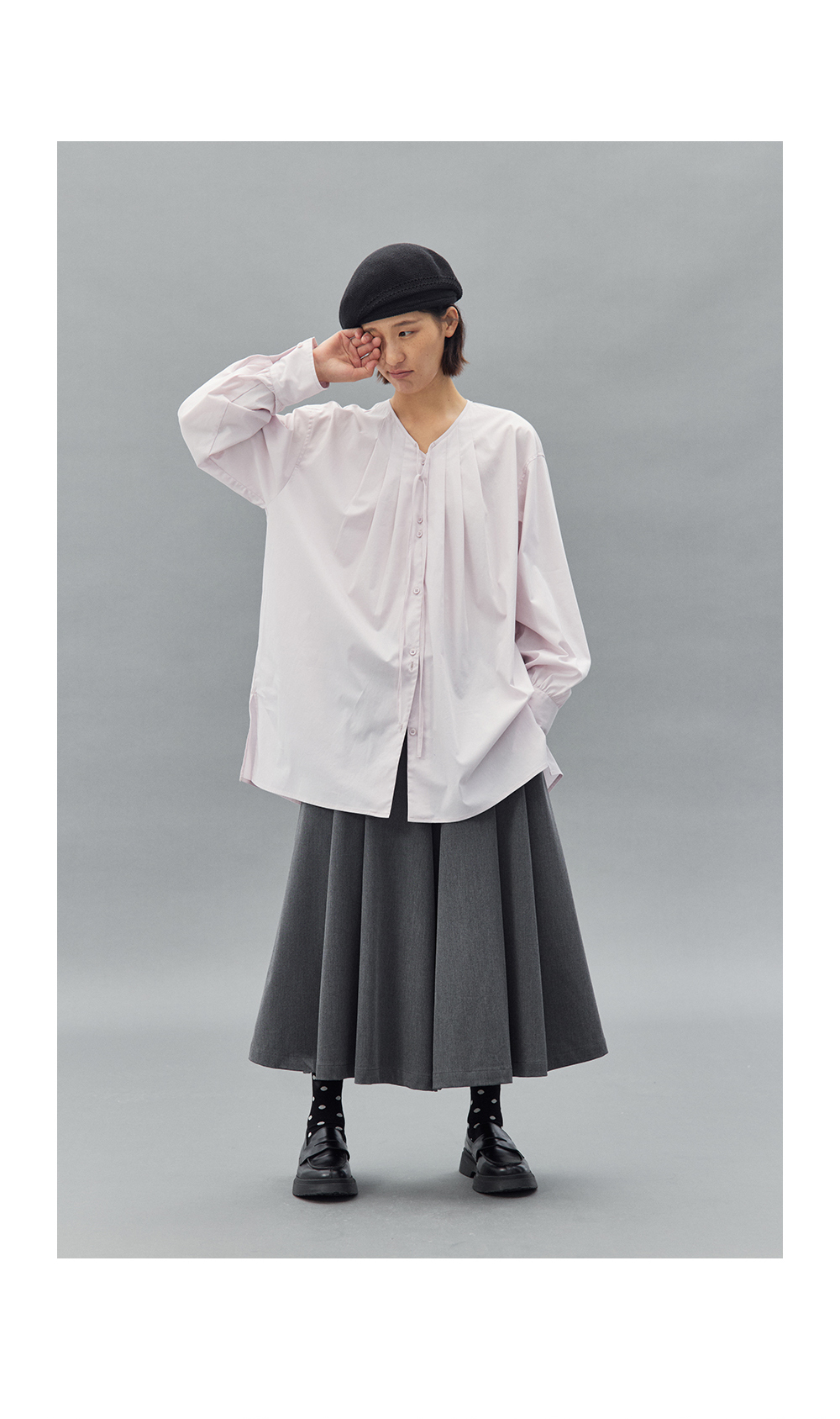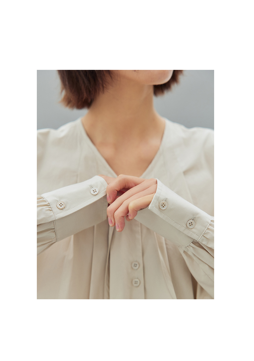 步履不停/4C11202C/初秋水粉色宽松V领无领衬衫