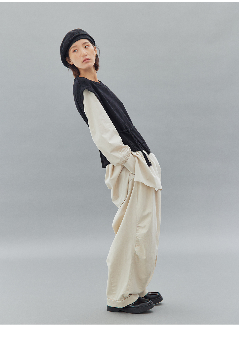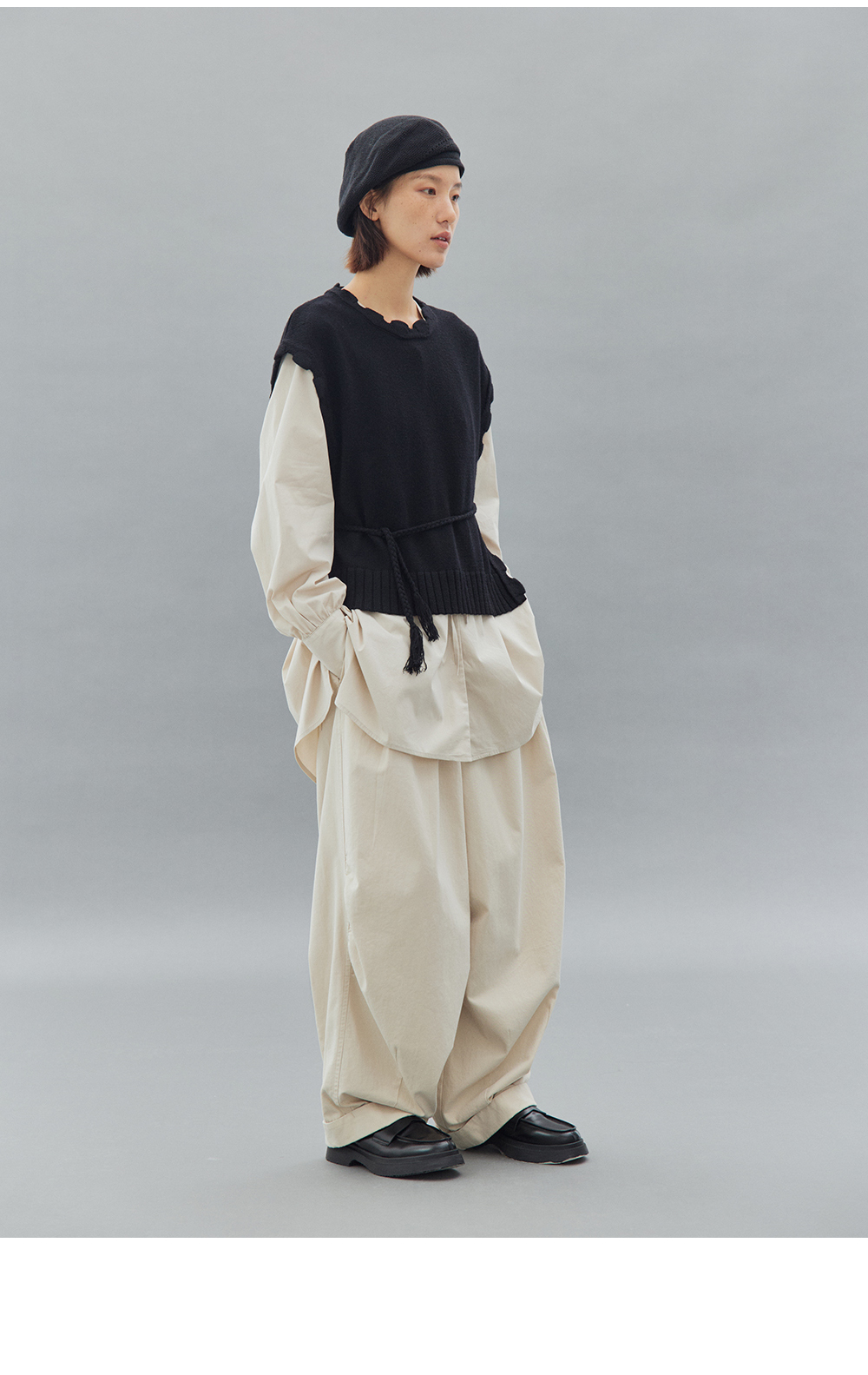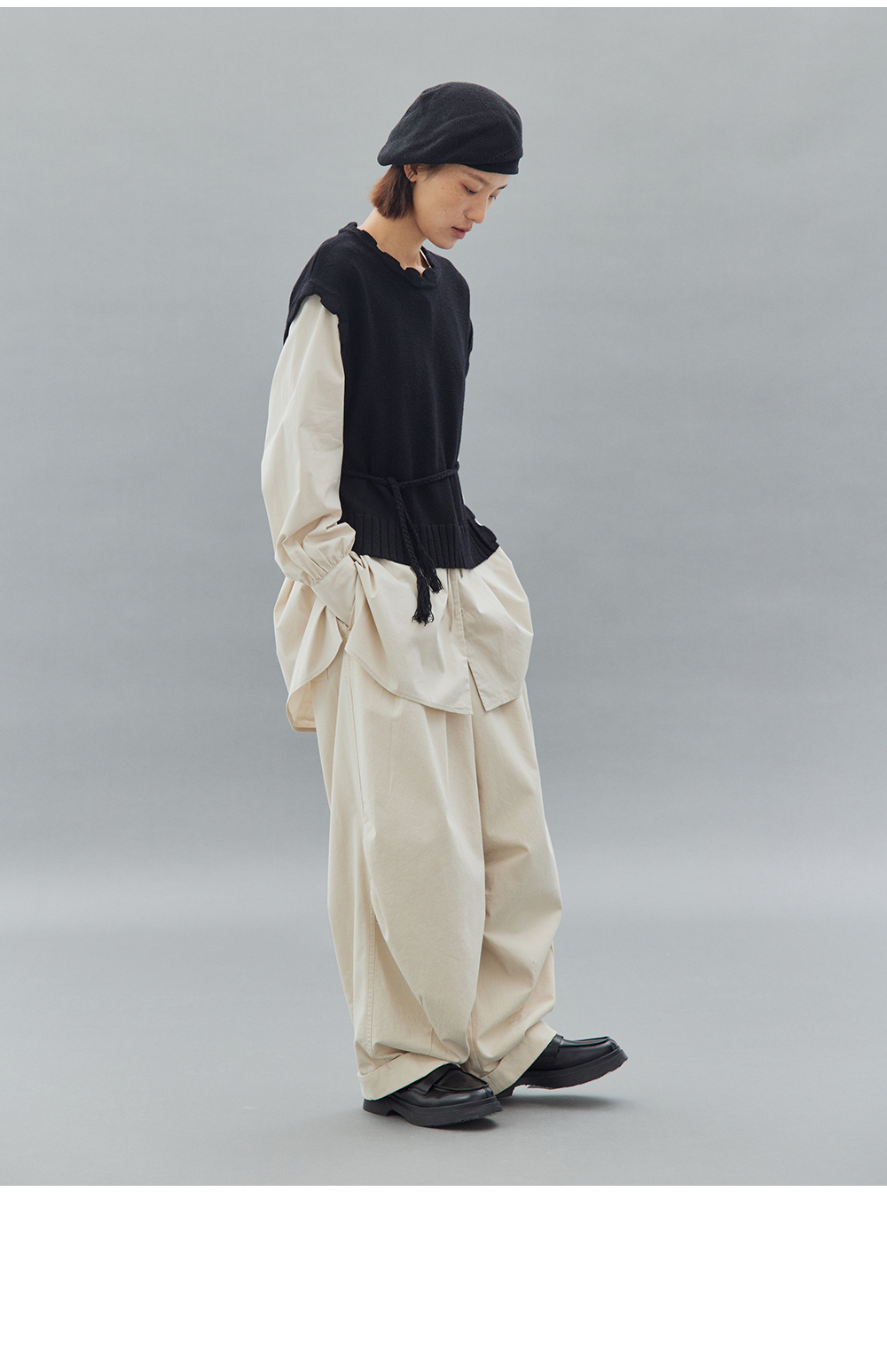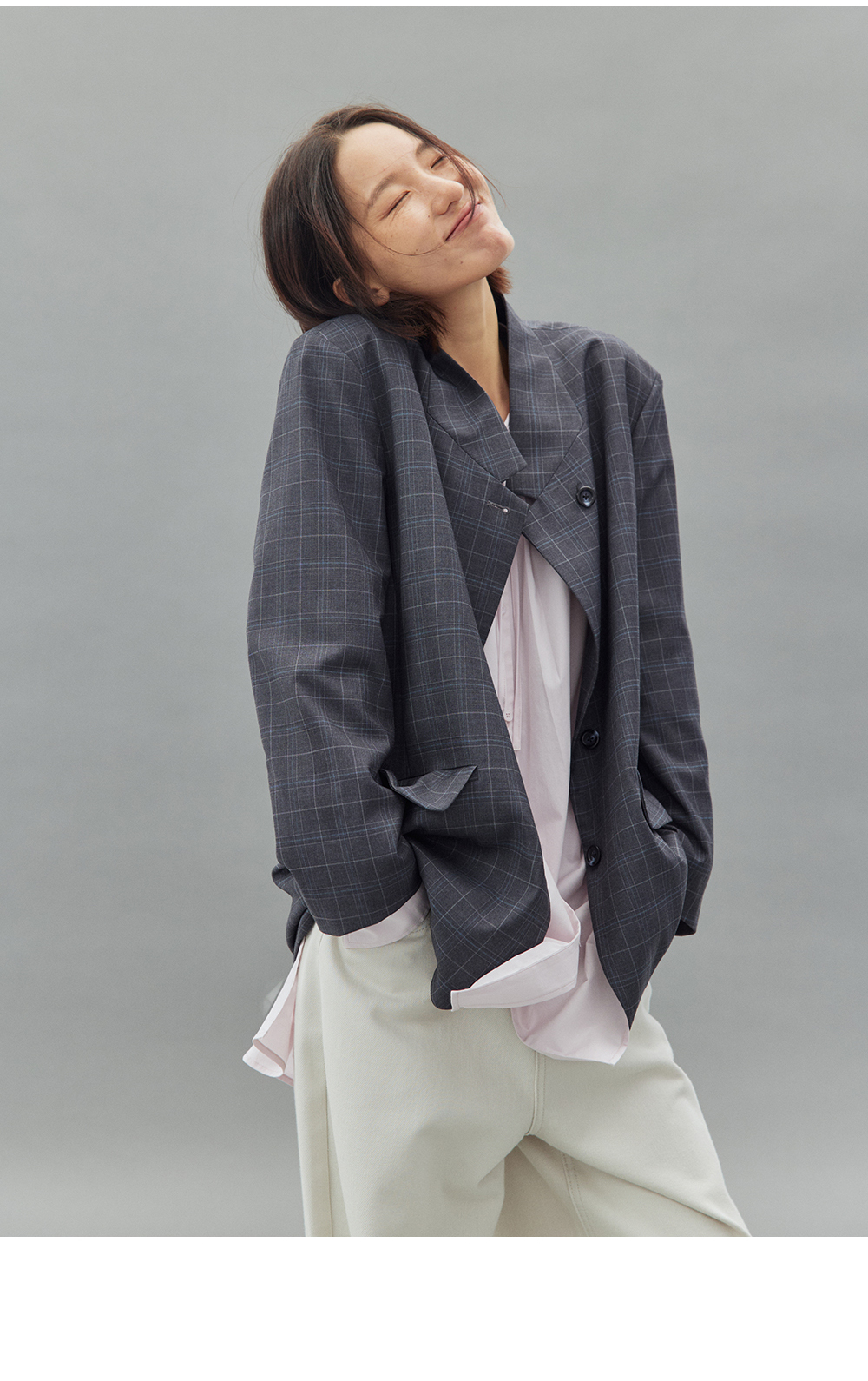 步履不停/4C11202C/初秋水粉色宽松V领无领衬衫