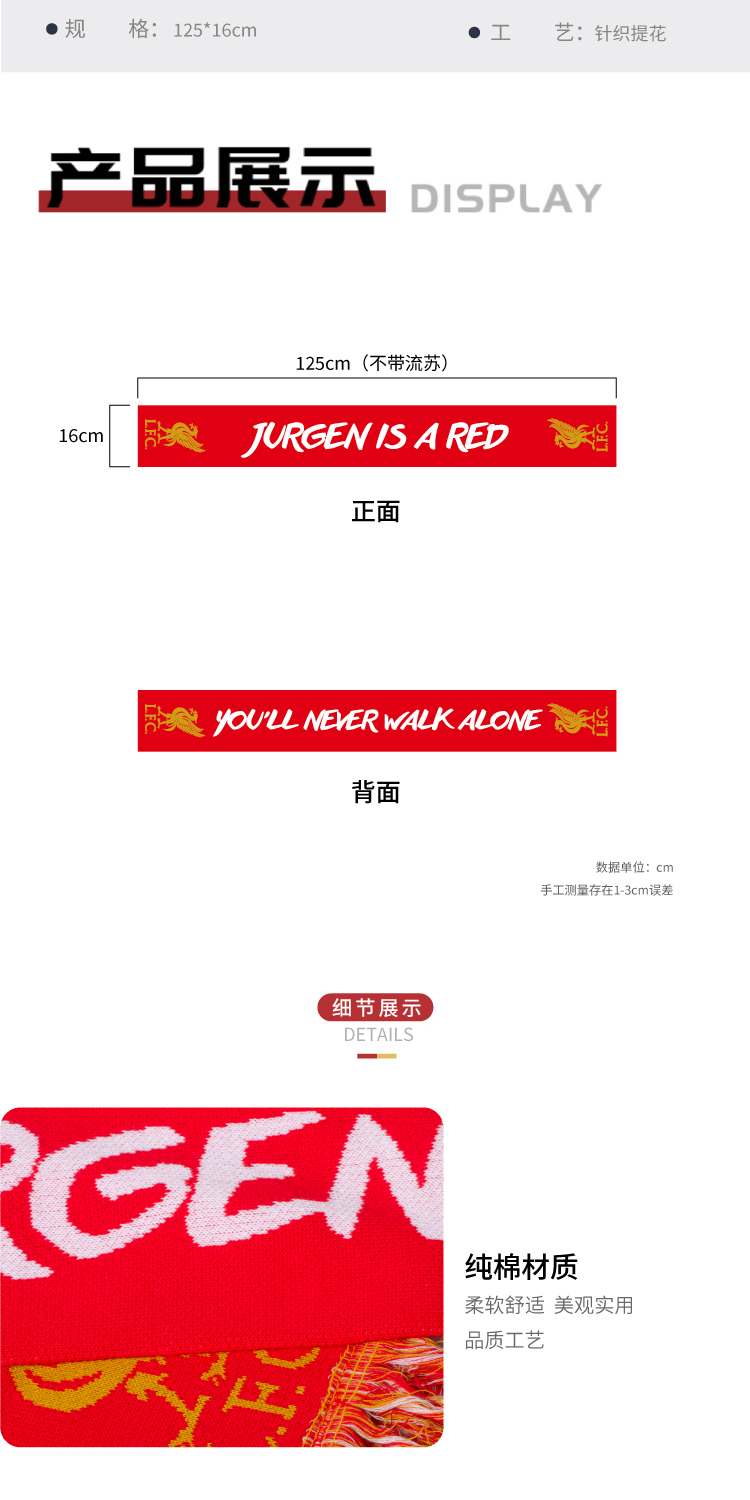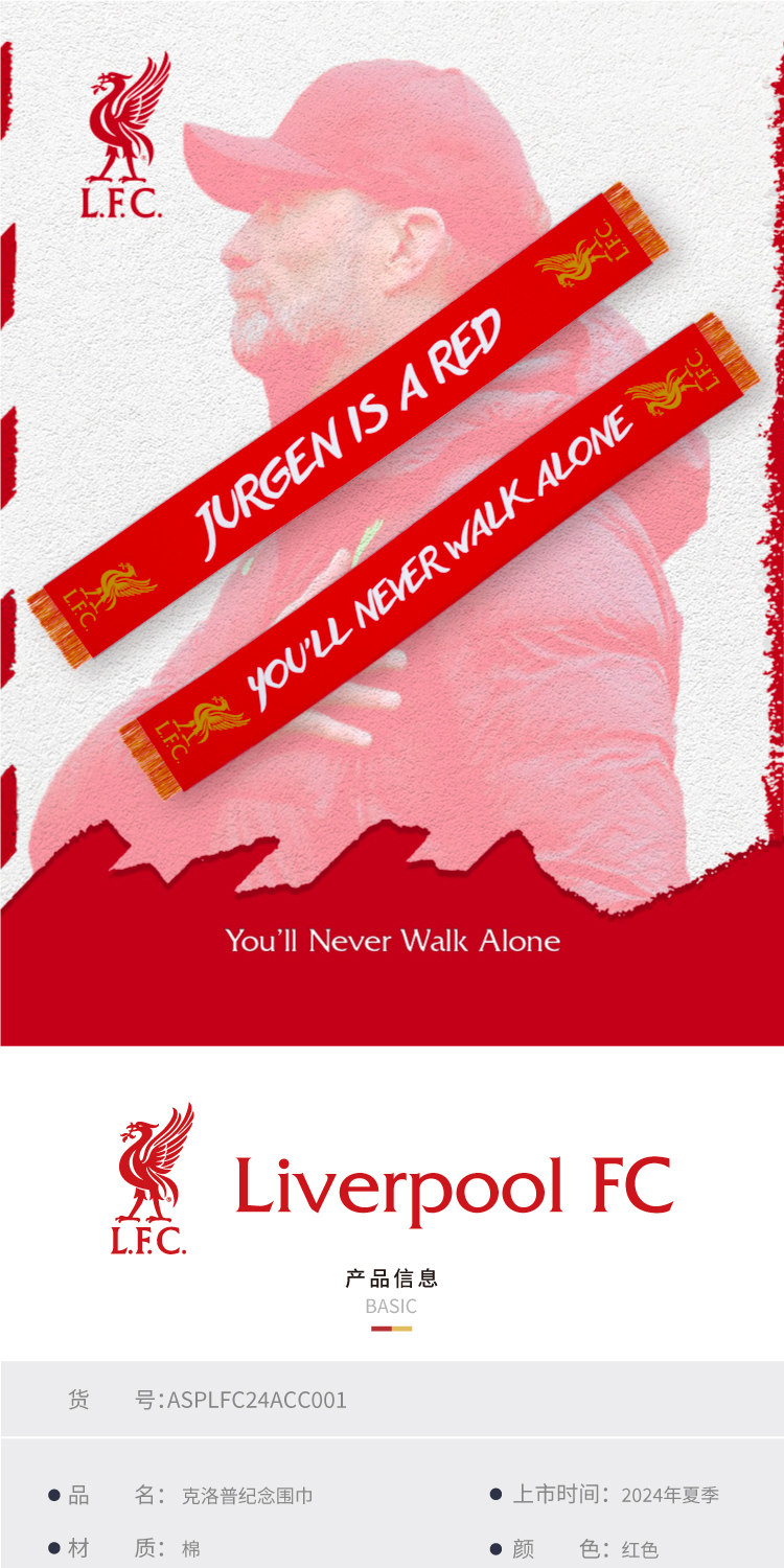 利物浦俱乐部官方商品 | 克洛普纪念围巾珍藏纪念品渣叔克洛普