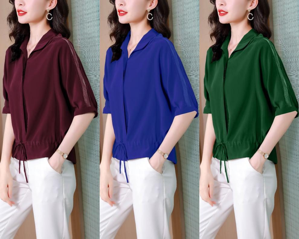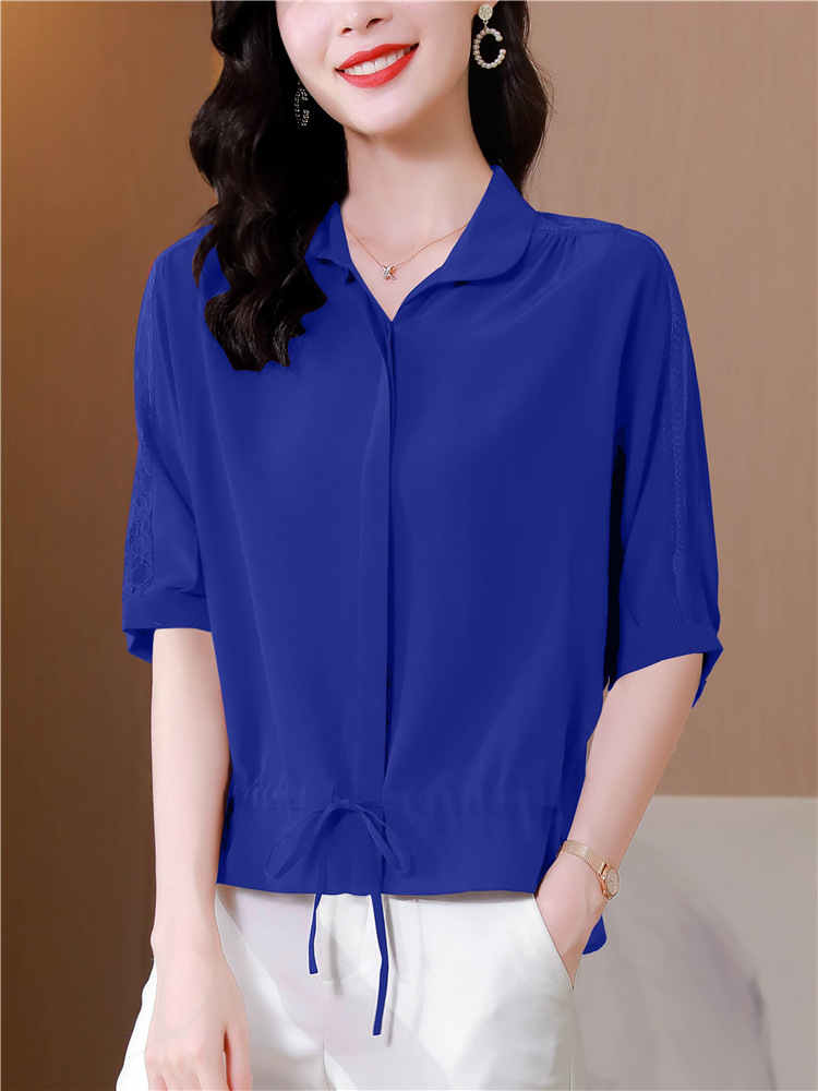 新款法式时尚气质休闲薄款仿真丝衬衫KQL-1825