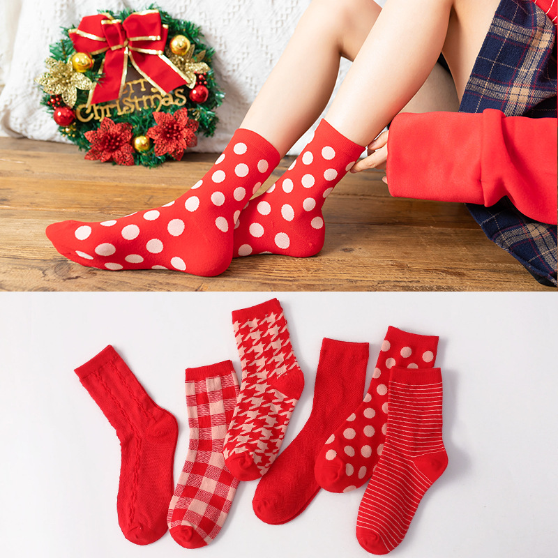 【礼盒圣诞袜4双优惠装】秋冬款中筒袜子女 圣诞袜盒装可爱卡通红色礼盒袜
