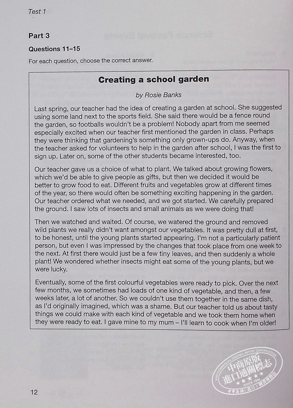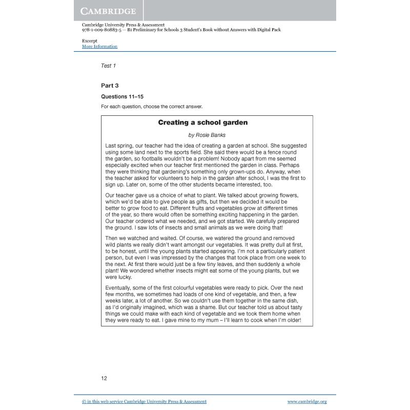 Inside you'll find four authentic B1 Preliminary for Schools examination papers from Cambridge. Be confident on test day and familiarise yourself with the format by working through each paper and practising your exam technique. All our authentic practice tests go through the same process as the B1 Preliminary for Schools exam. We check every single part of our practice tests with real students under exam conditions, to make sure we give you the most authentic experience possible.