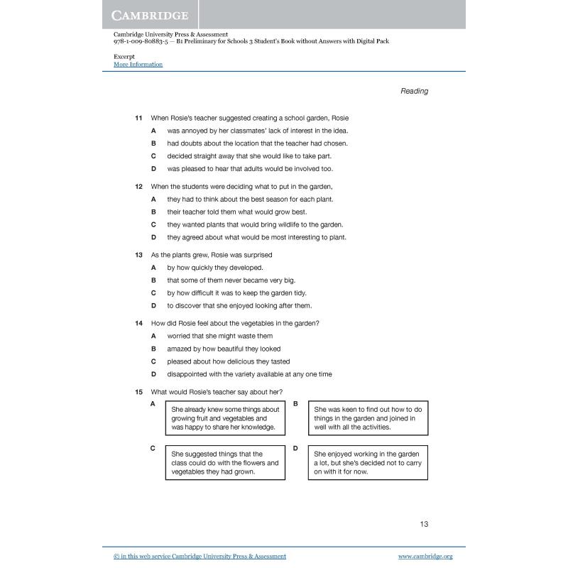 B1 Preliminary for Schools 3 authentic examination papers provide the perfect preparation because they are exactly like the real exam.