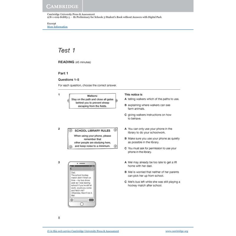 B1 学校预备考试 3 份真实试卷可提供准备,因为它们与真实考试完全一样。