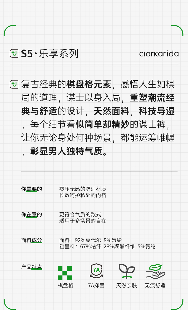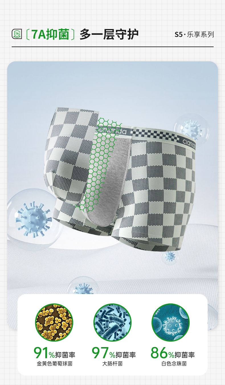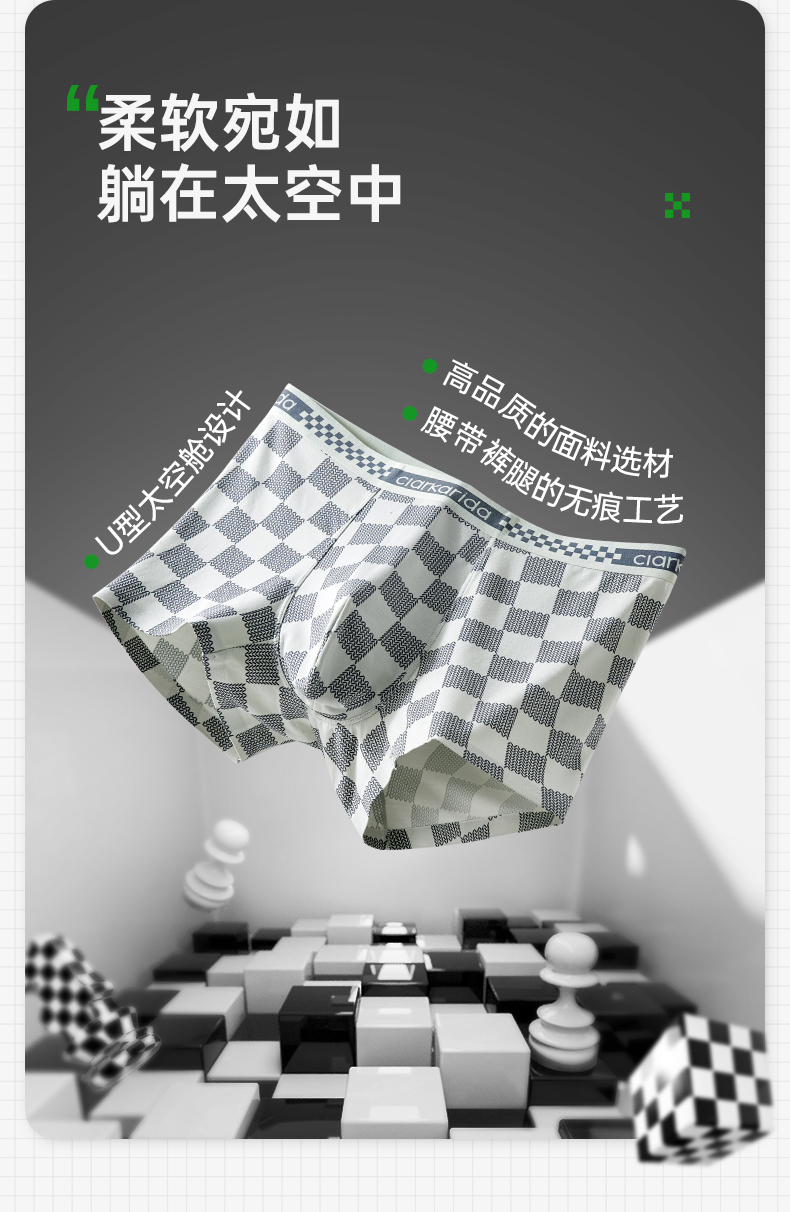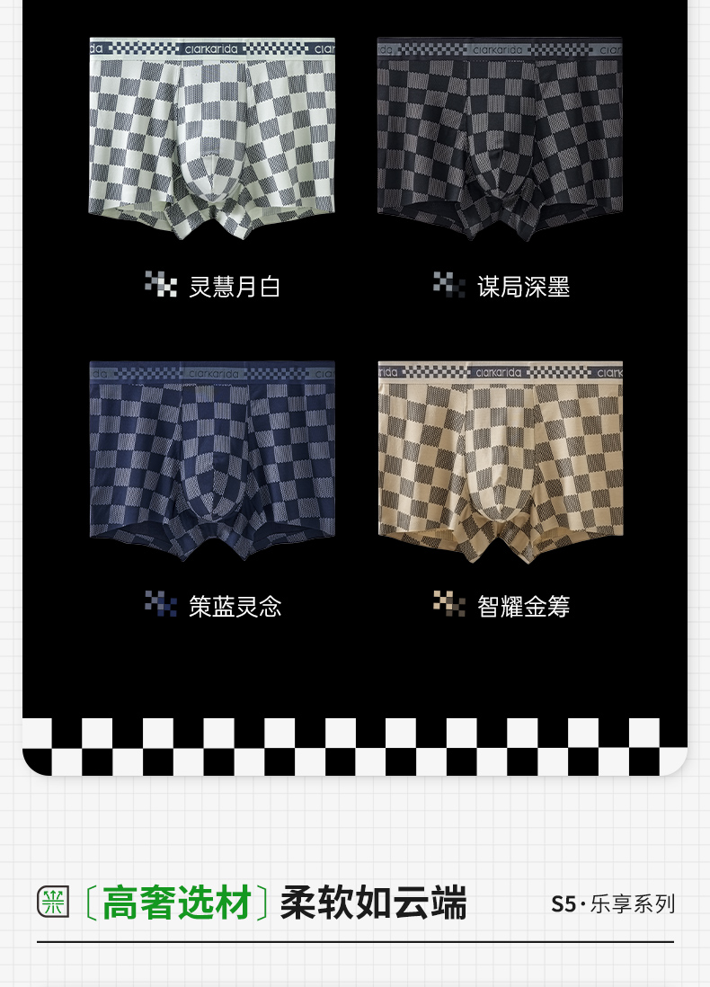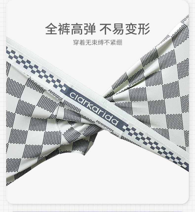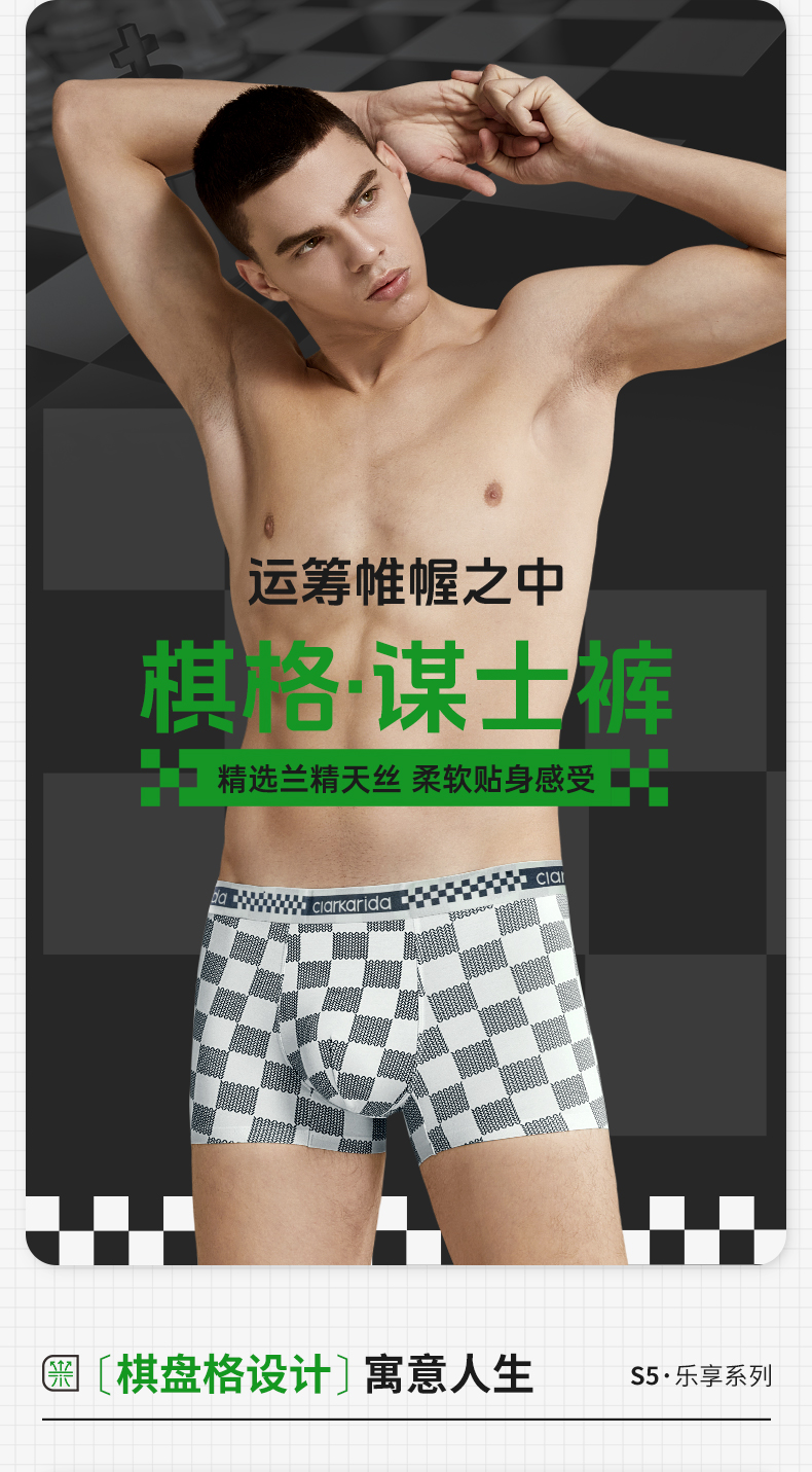 【3条装】Clarkarida卡恩 男士棋盘格印花内裤 精选60S兰精莫代尔+氨纶,石墨烯内裆,7Ayi菌,柔软贴身细腻紧密;复古棋盘格元素,经典不过时;