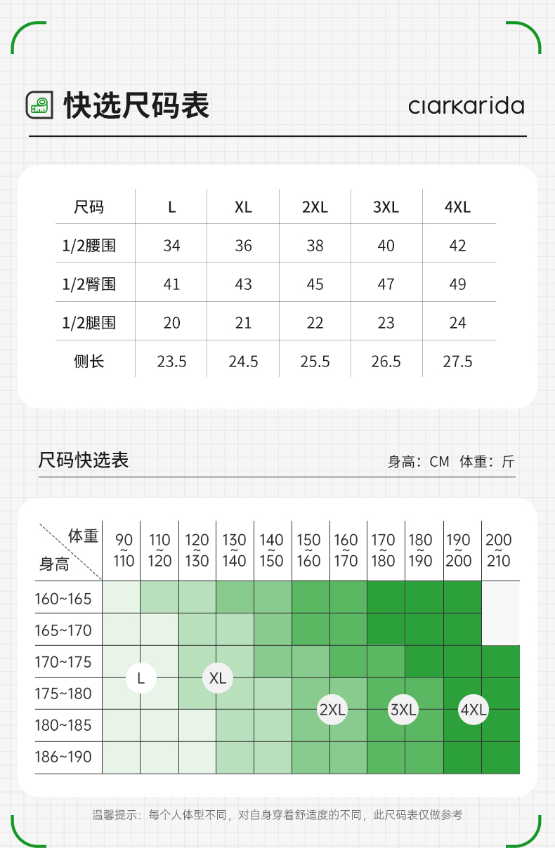 裆里料:67%粘纤 28%聚酯纤维 5%氨纶
