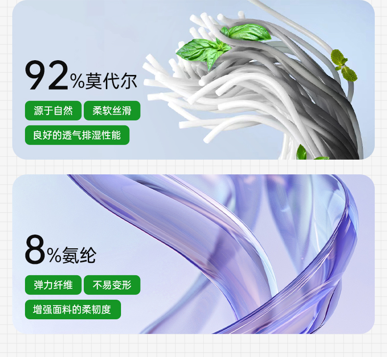 面料:92%莫代尔 8%氨纶