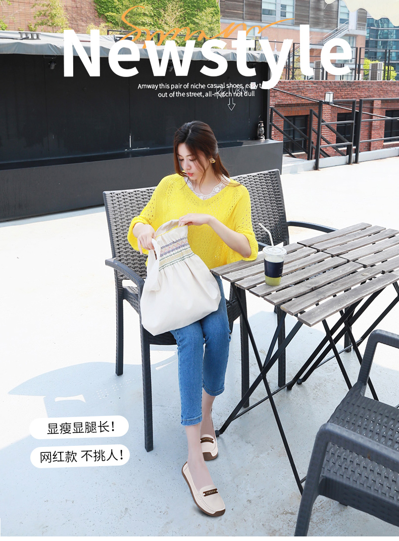步印【柔软轻便】2cm平跟 复古豆豆鞋 02078