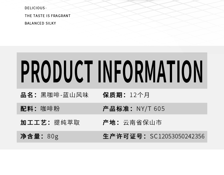 云南保山小粒咖啡80克速溶黑咖啡