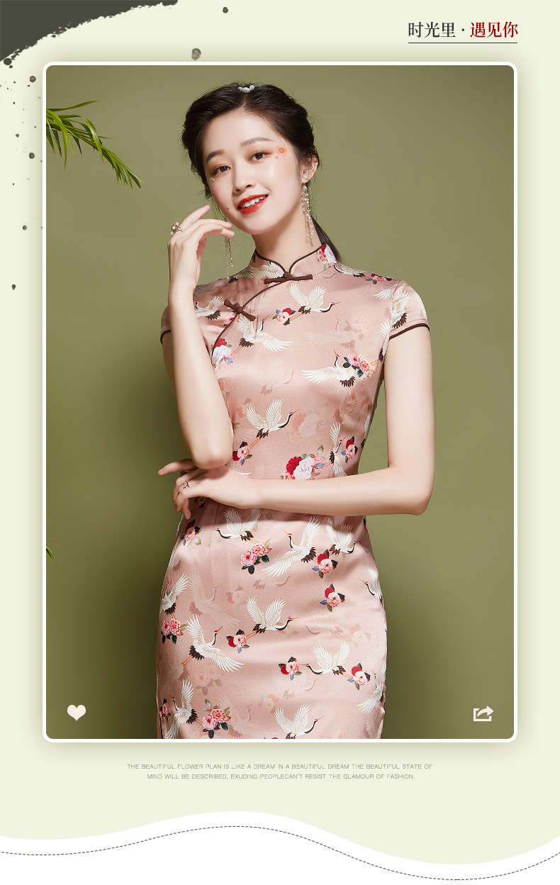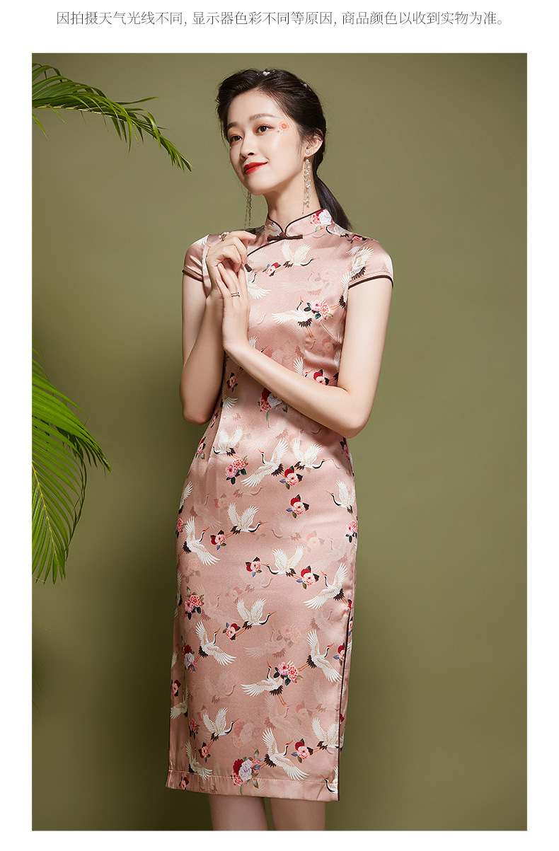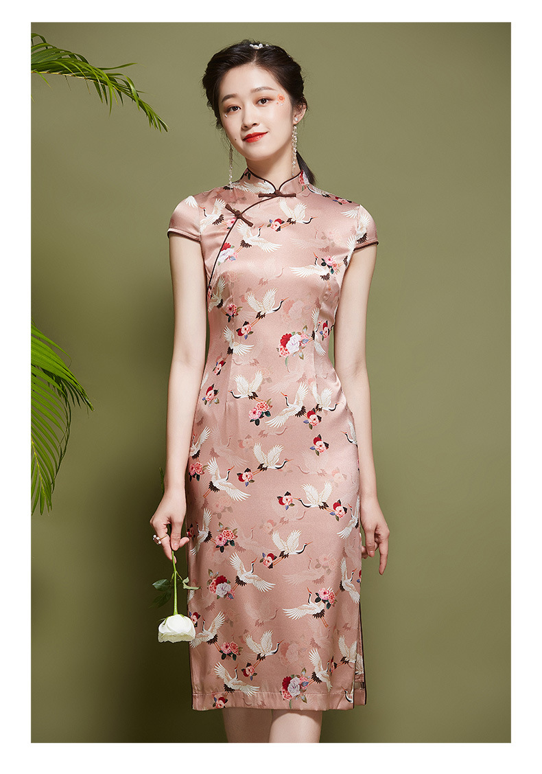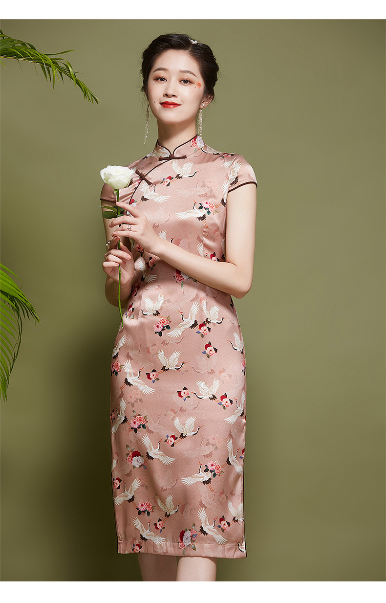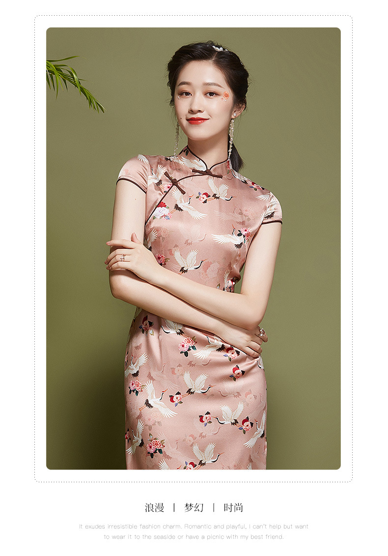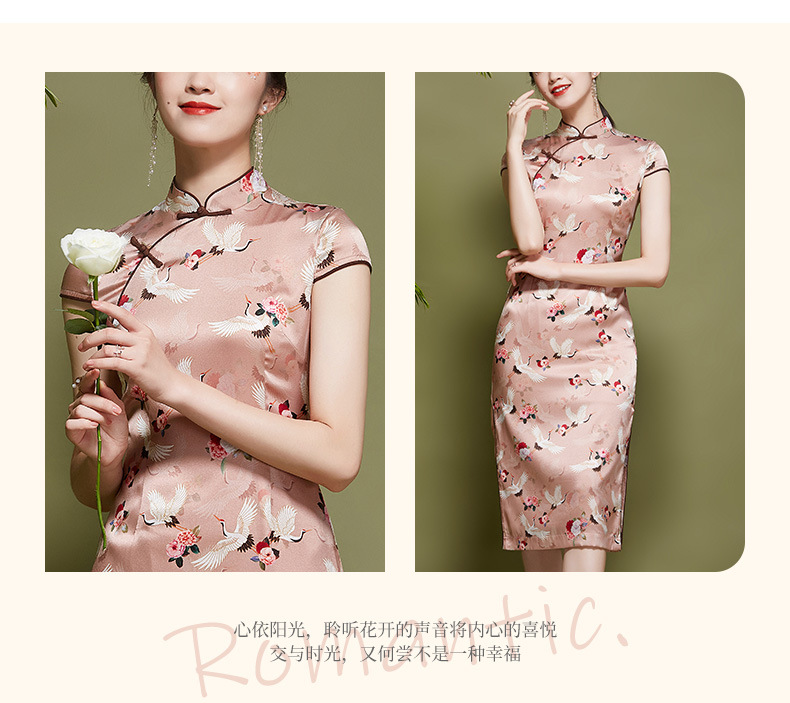 新款复古,真丝缎日常改良旗袍连衣裙OY21687