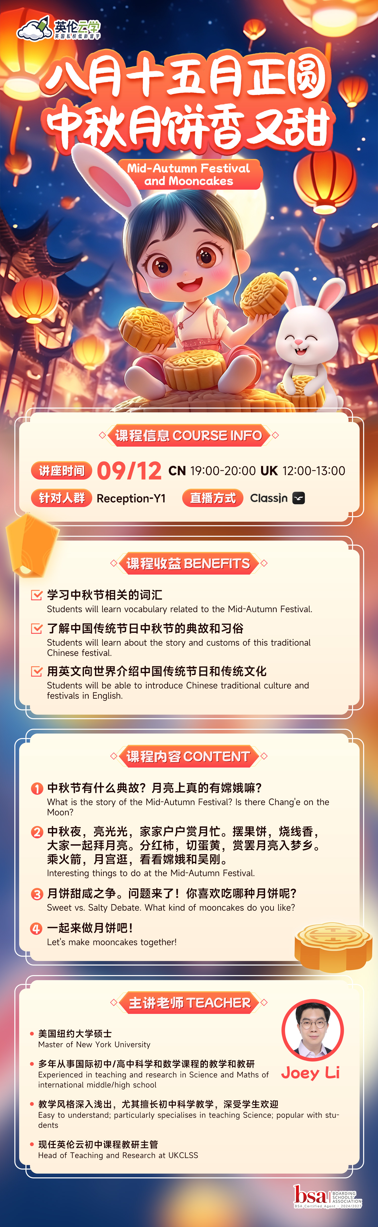 【9.12英伦云学公开课】八月十五月正圆,中秋月饼香又甜