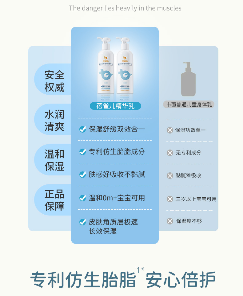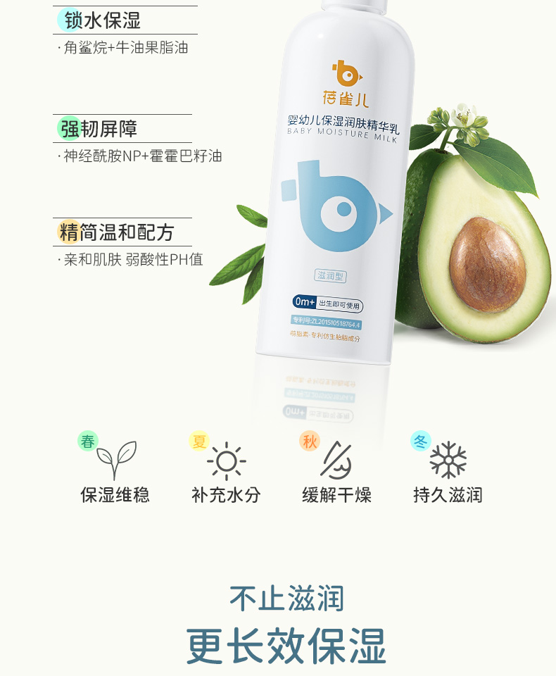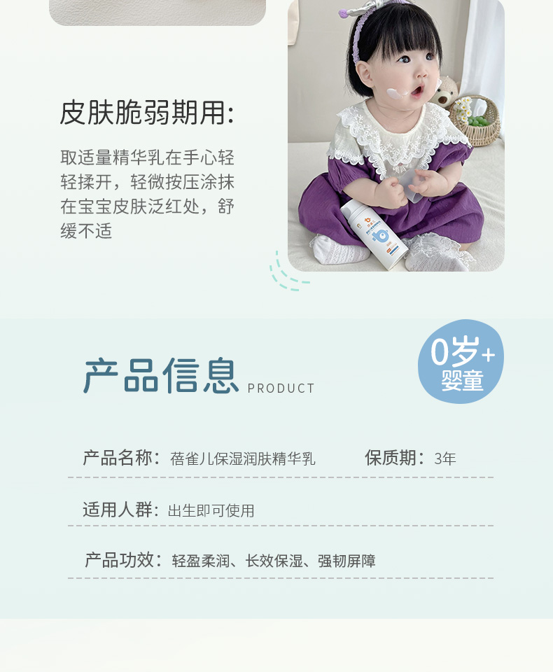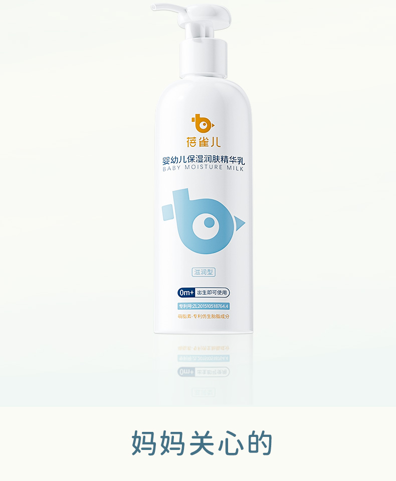蓓雀儿保湿润肤精华乳,一抹全身柔润,专为婴幼儿娇嫩肌肤设计。三重舒缓成分快速缓解干燥泛红,仿胎脂质精华模拟母体环境,强韧肌肤屏障,全天滋润不惧换季干燥。