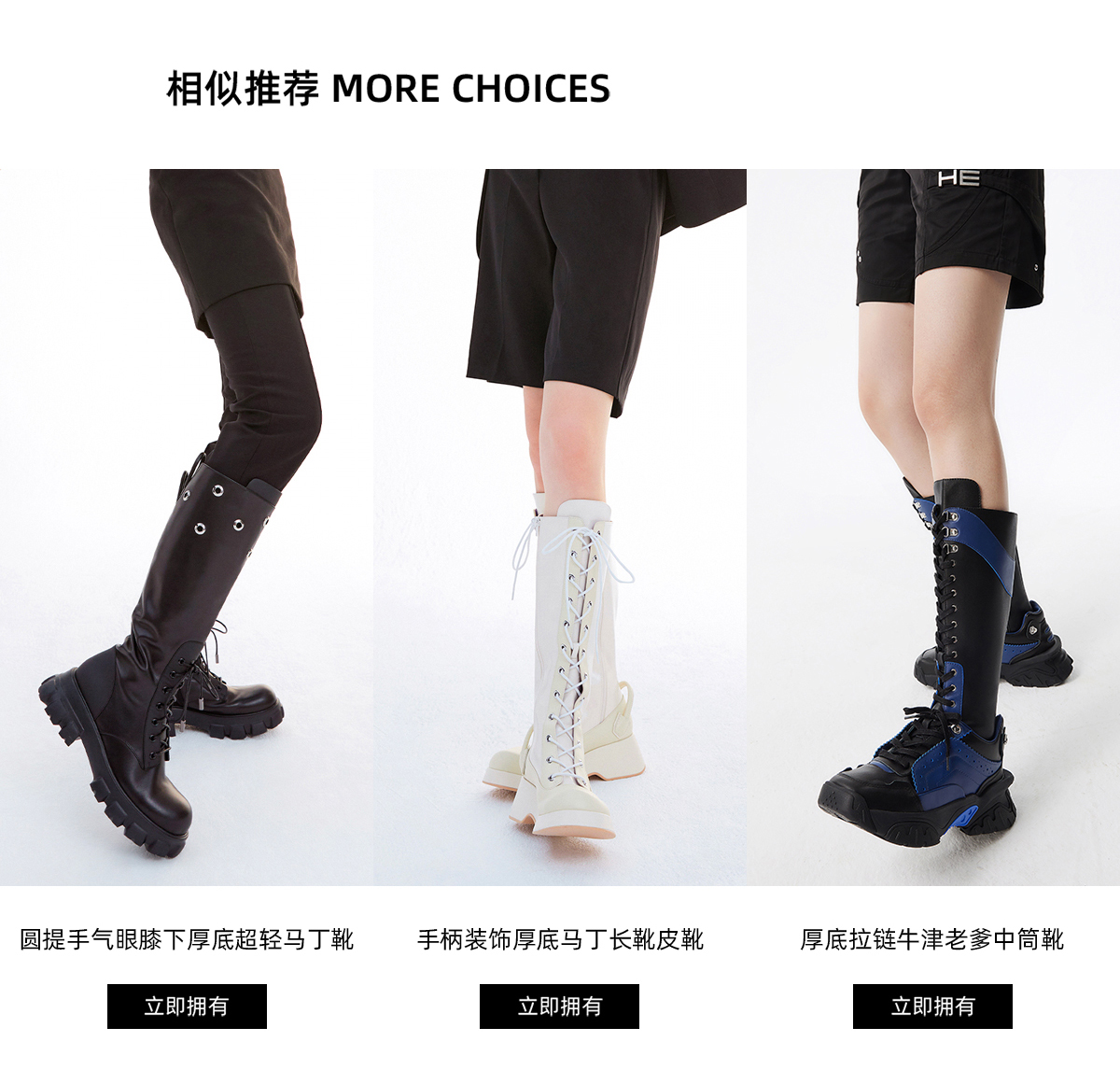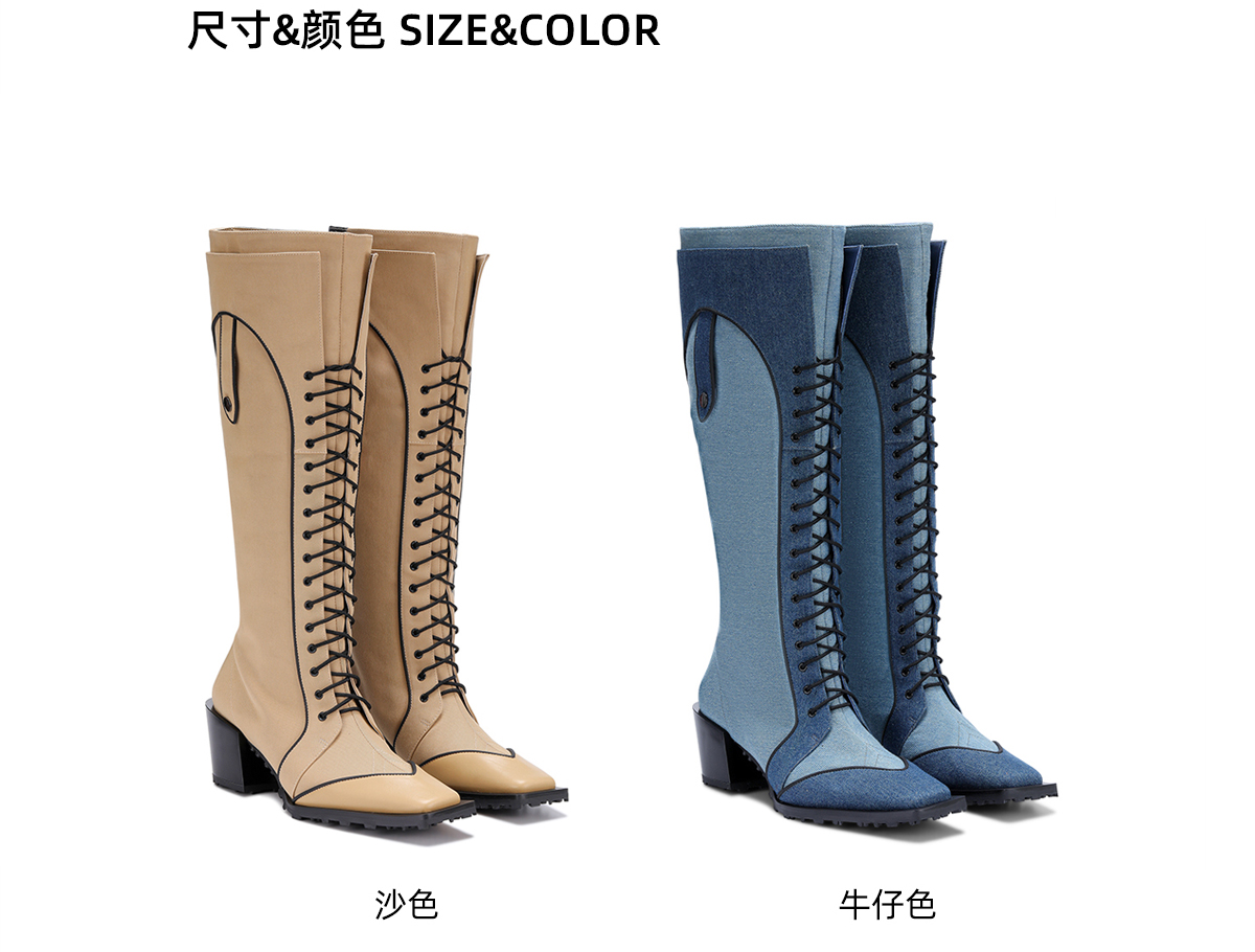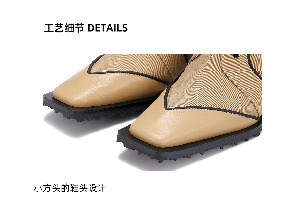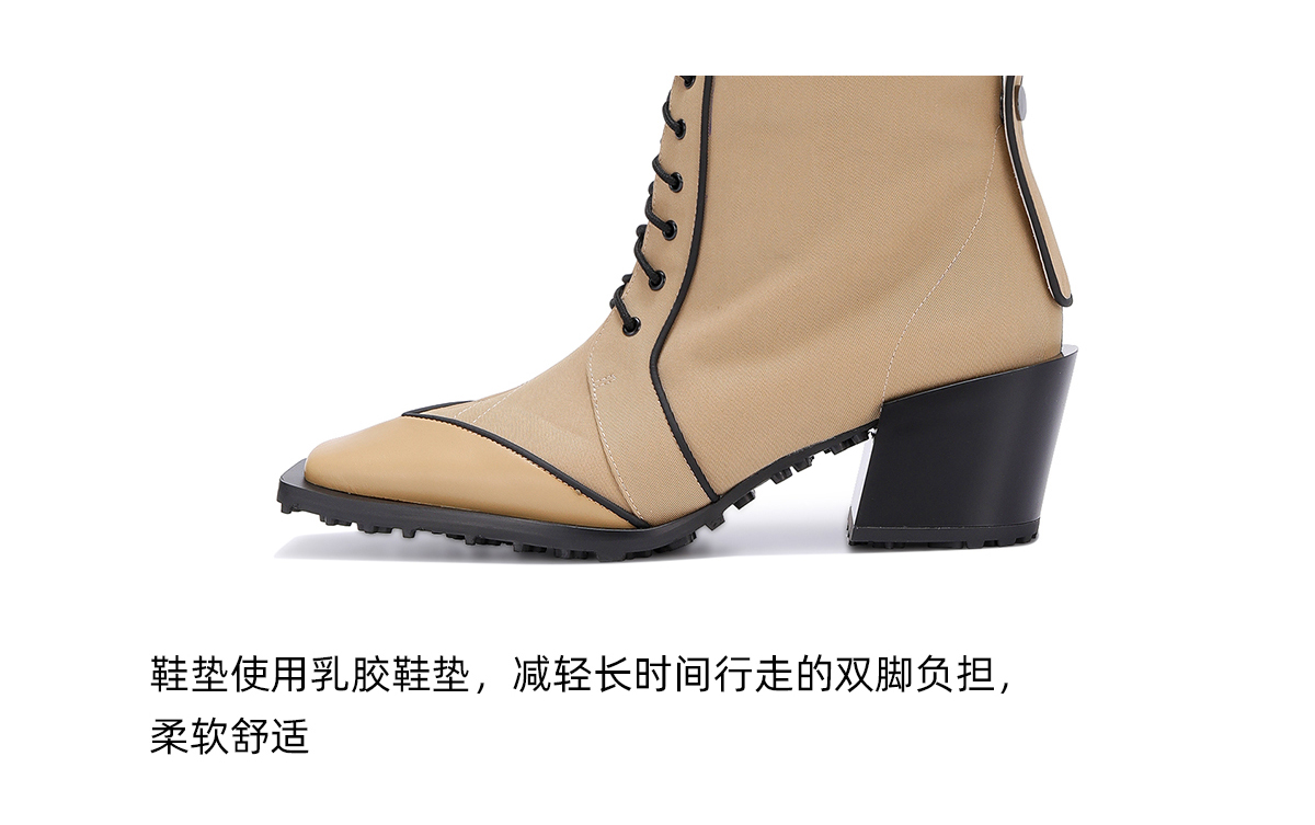 【下架】lost in echo 设计师品牌 风衣料拼接真皮方头绑带靴秋季女
