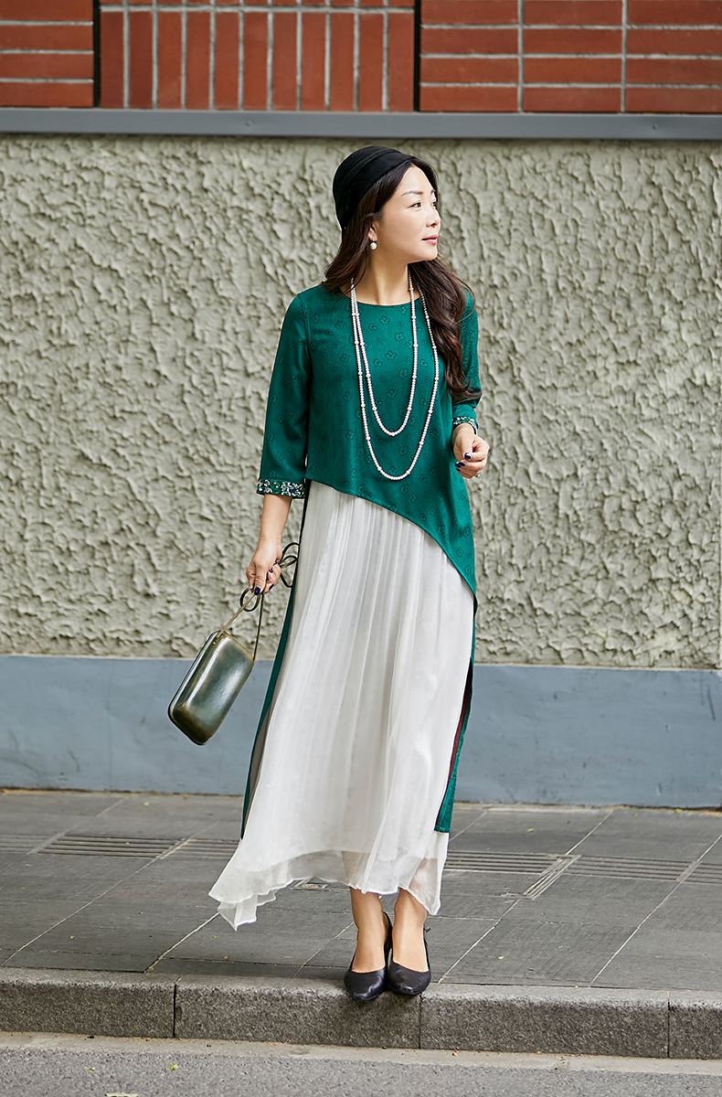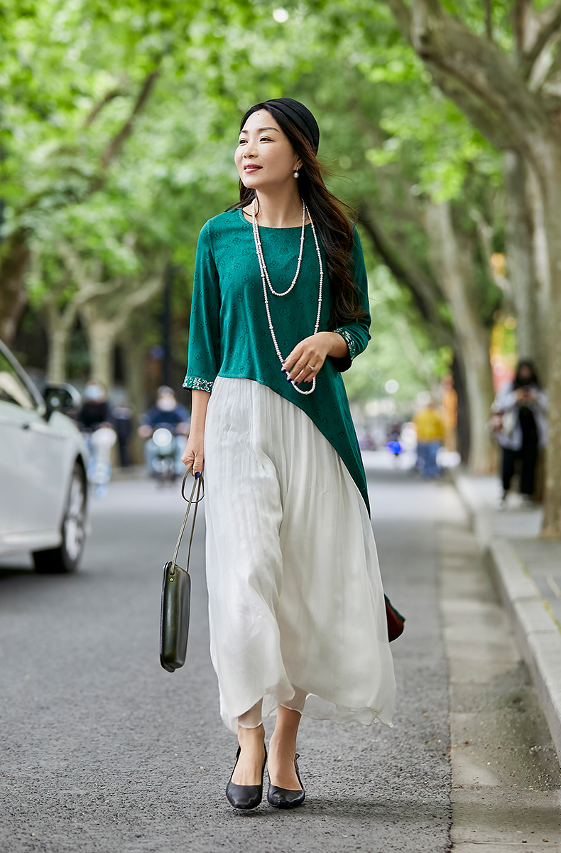 【幽幽碧玉衫】生活在左原创提花双生纱新中式绣花正反两穿衬衣女1933048