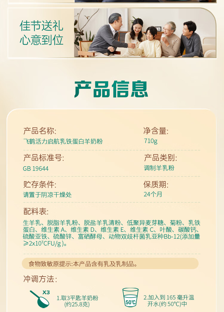 飞鹤活力启航乳铁蛋白羊奶粉 710g