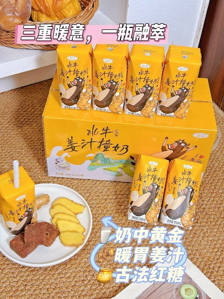 🌟三重暖意,一瓶融萃 1⃣ 口感颠覆者:“像在喝会发热的冰淇淋” “水牛奶在口感上就甩普通奶一大截了,加了姜汁红糖的水牛奶,味道更是一绝!” 🍦 丝滑度MAX:水牛乳的天然乳脂,带来融化冰淇淋般的顺滑 💗 风味三明治:红糖的甘甜→水牛奶的醇厚→姜汁的温暖,三层在舌尖绽放 🚫 0奶腥味:彻底告别孩子皱眉的“牛奶阴影”
