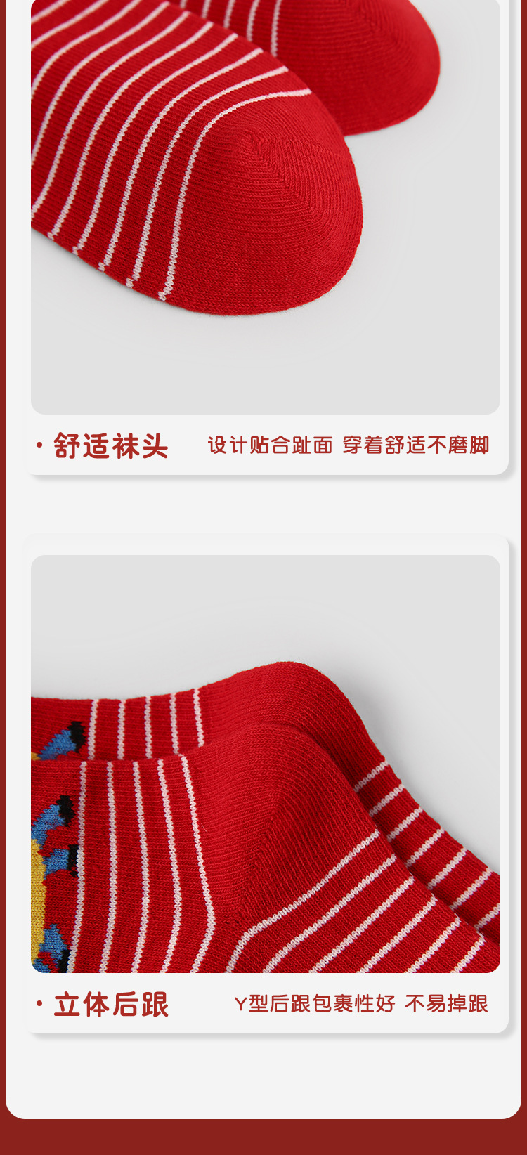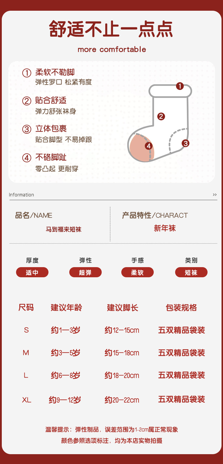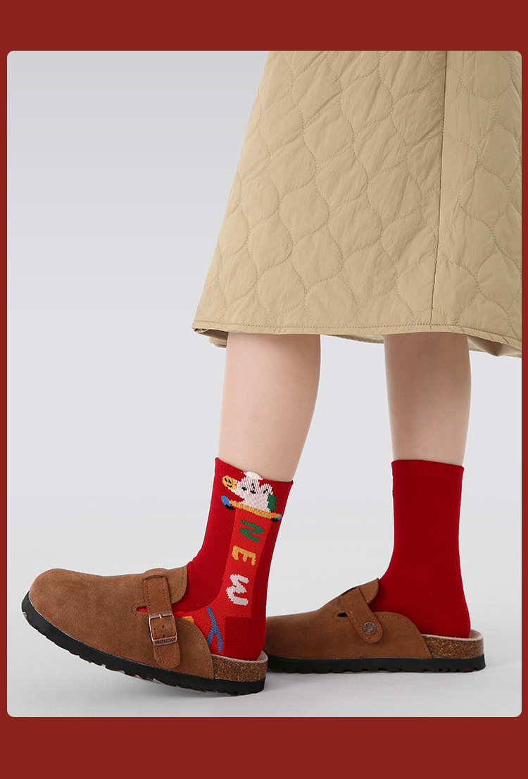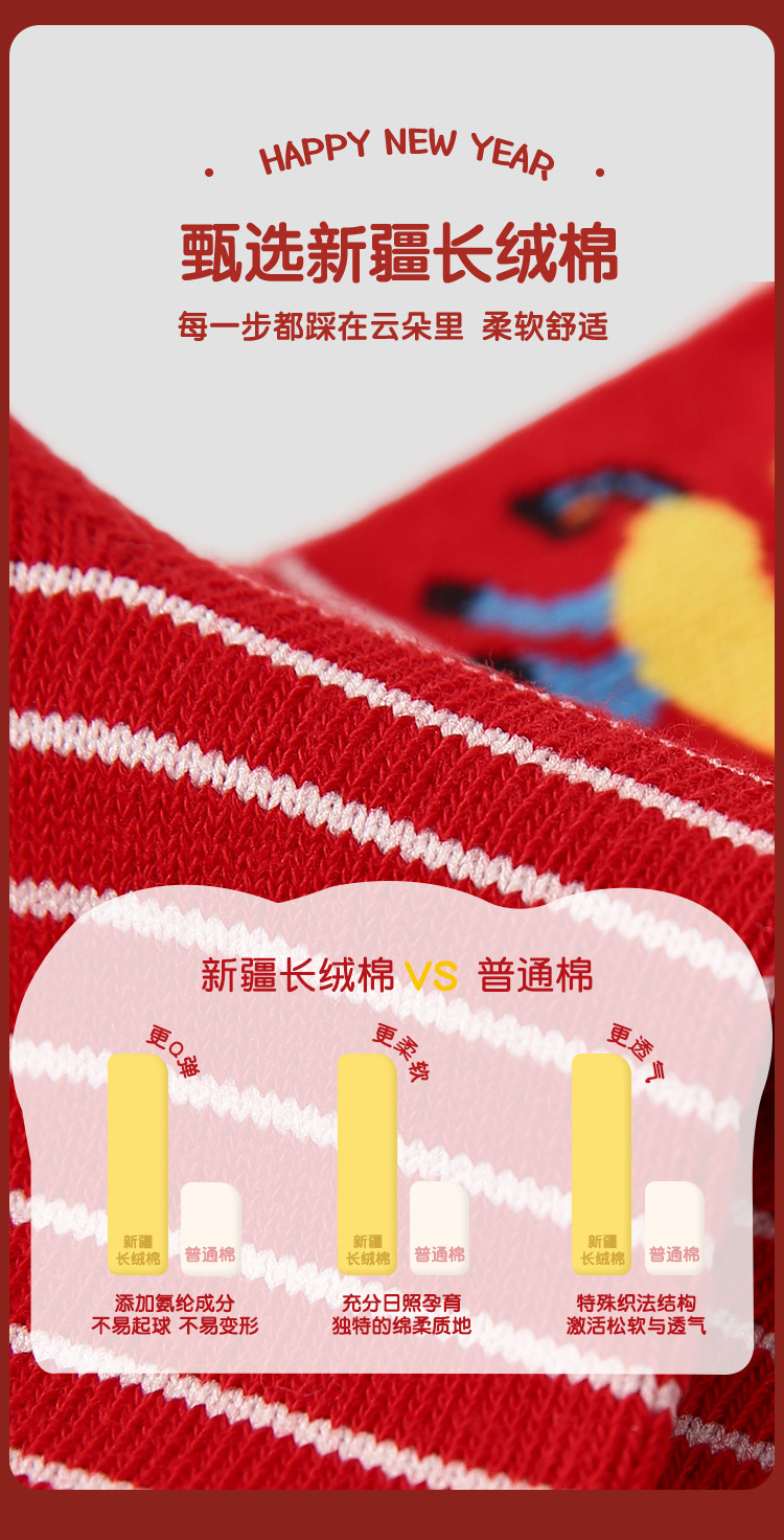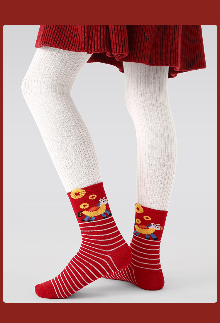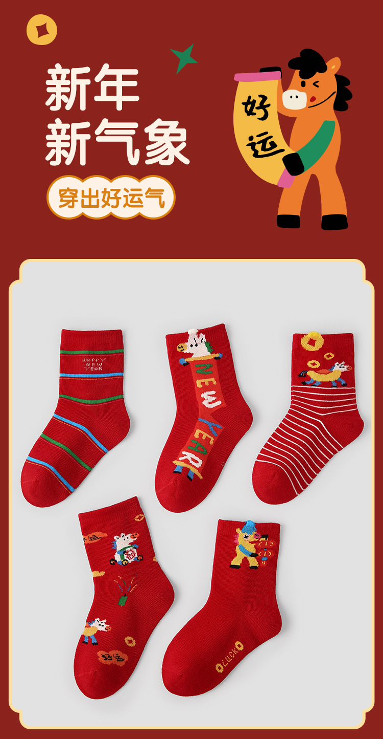 【24.9元5双】2026马年红色棉质新年袜 马到福来喜庆过年无骨卡通棉袜