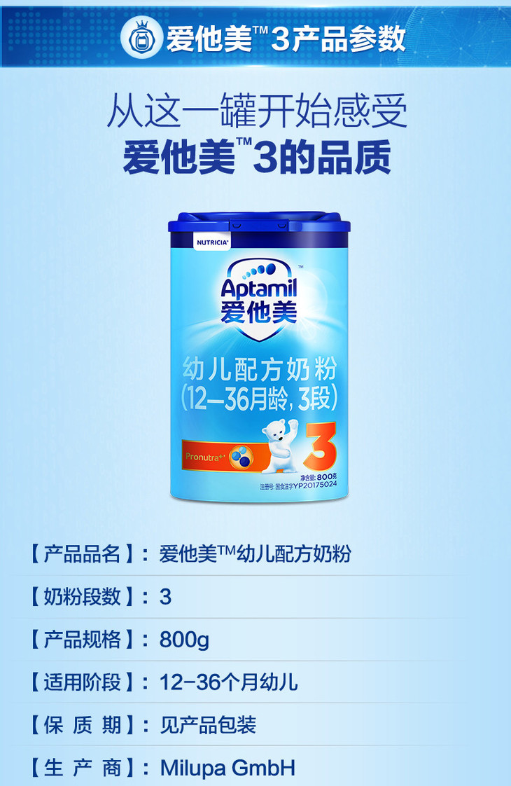 爱他美 中文版(经典版)奶粉 800克 6罐装