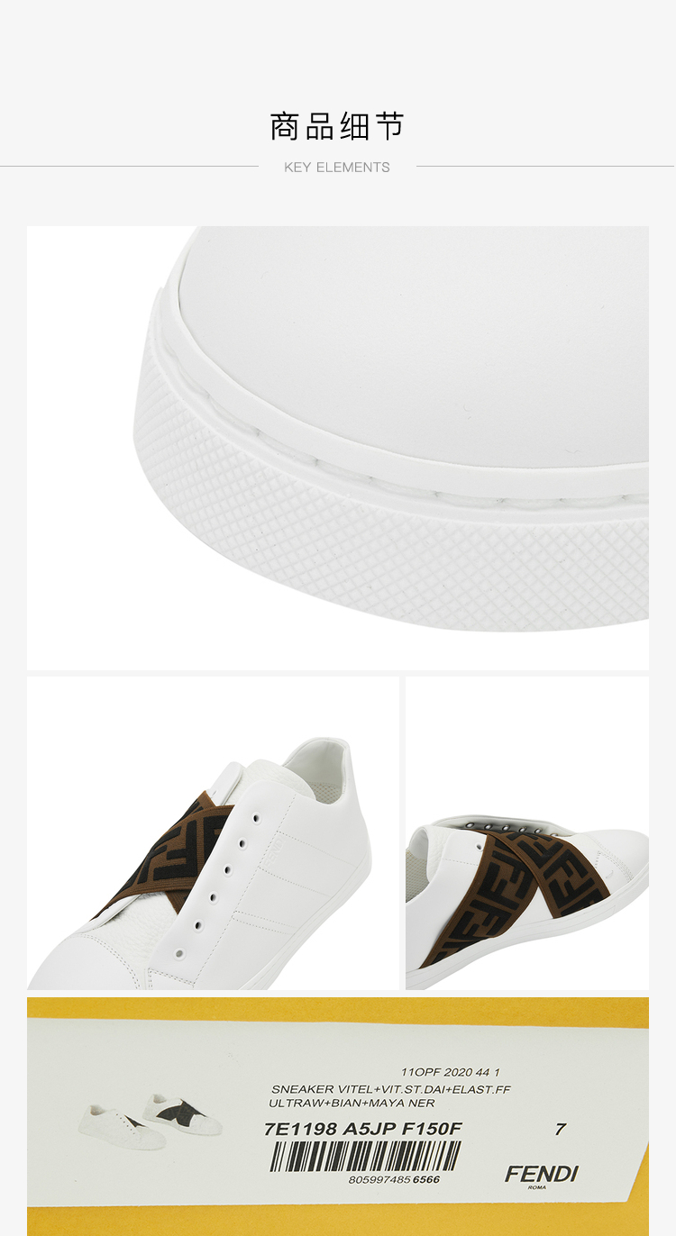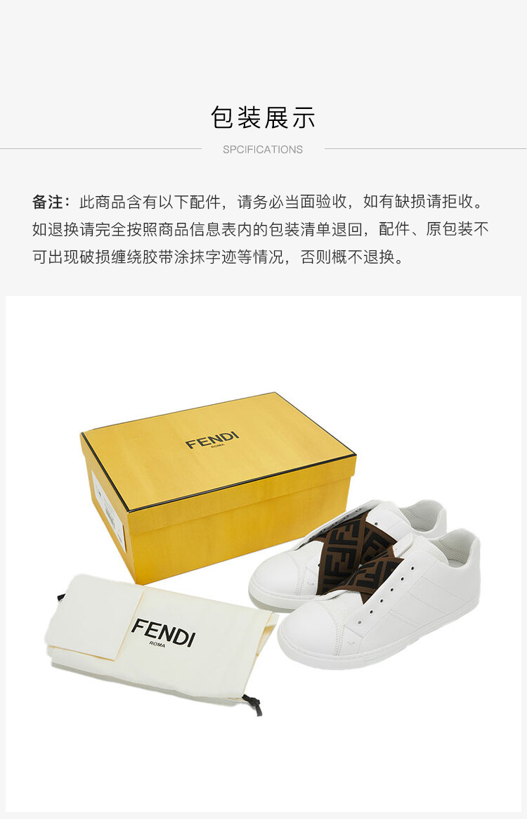 FENDI 芬迪 男士牛皮FF标老花织物时尚休闲鞋板鞋小白鞋 7E1198A5JP