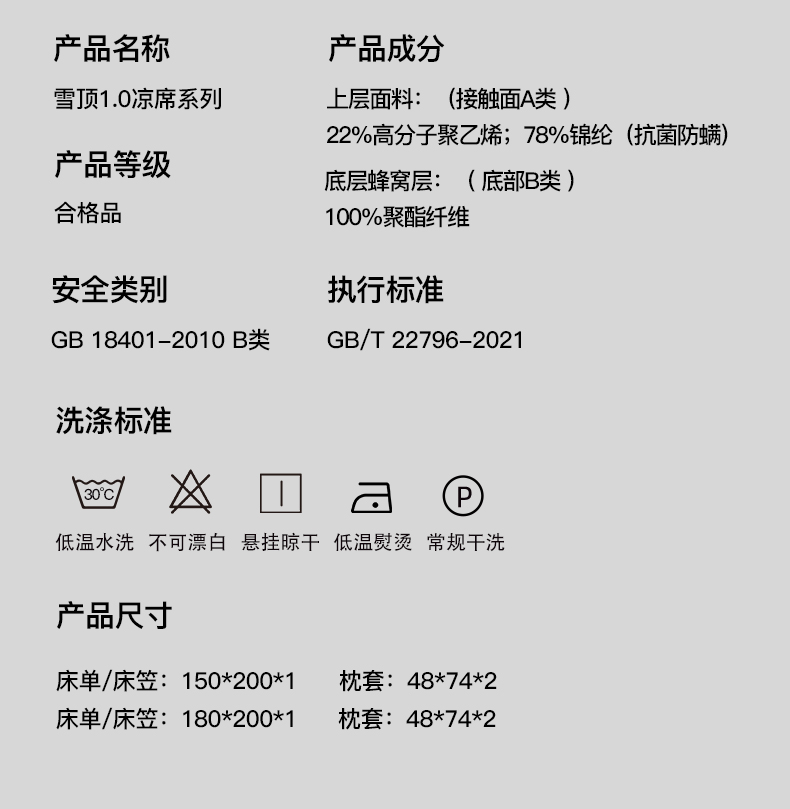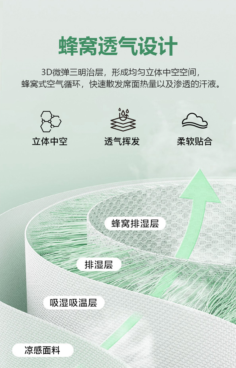 顶柔 雪顶凉感冷感席 muji同款 复合三明治透气网孔,散热性能更佳
