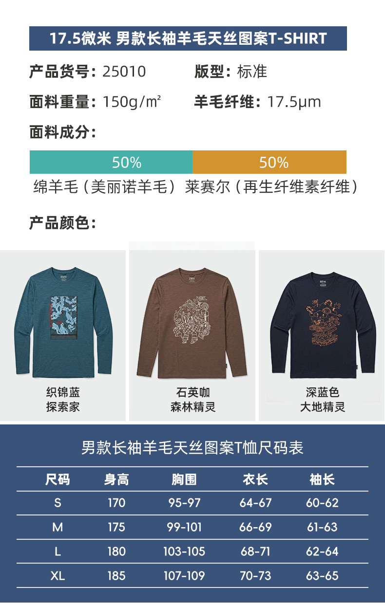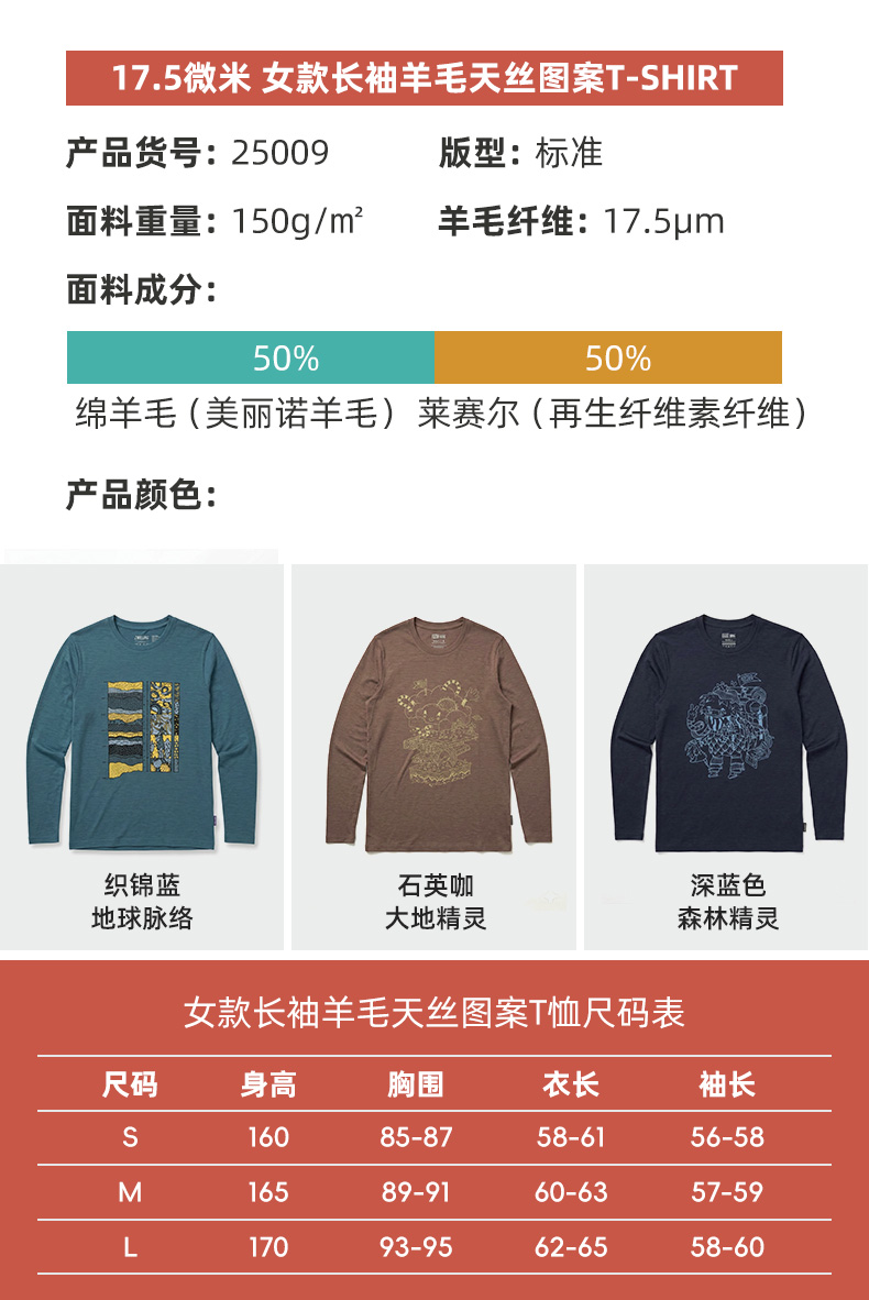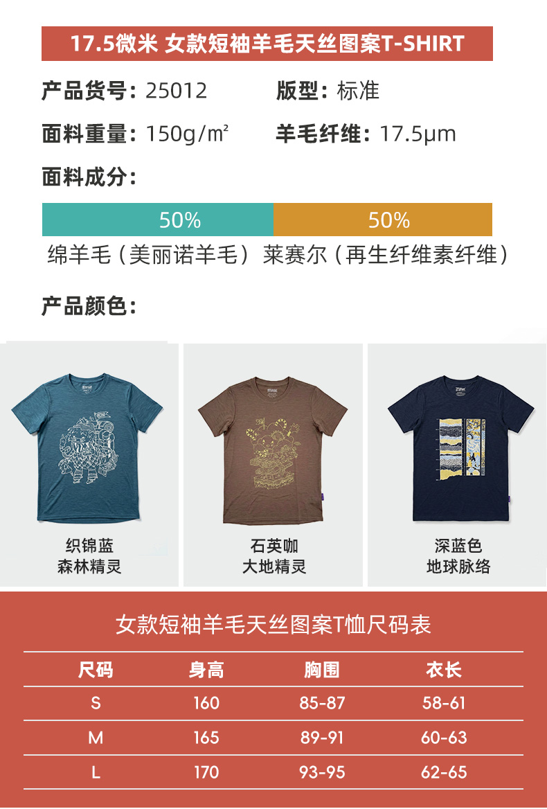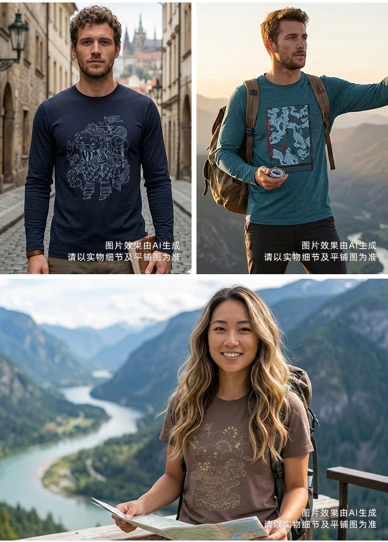 赛乐ZEALWOOD羊毛天丝印花T恤长袖短袖男女款春夏T恤干爽透气