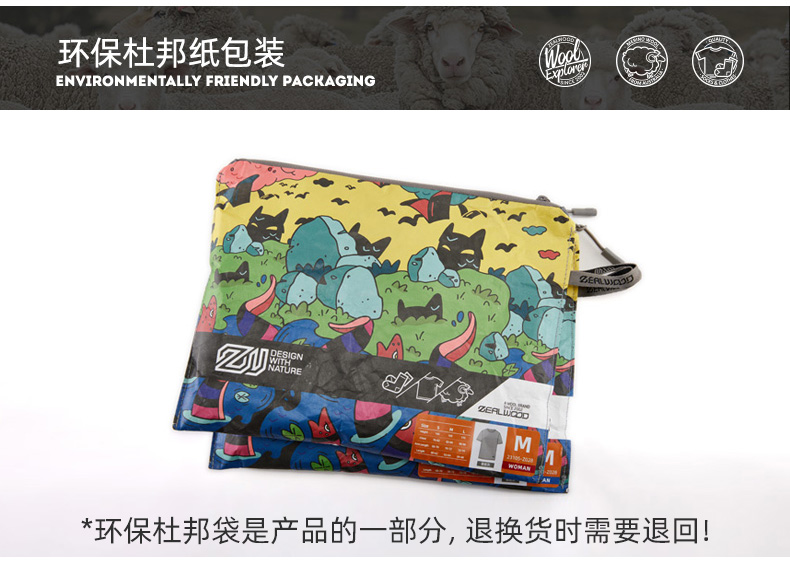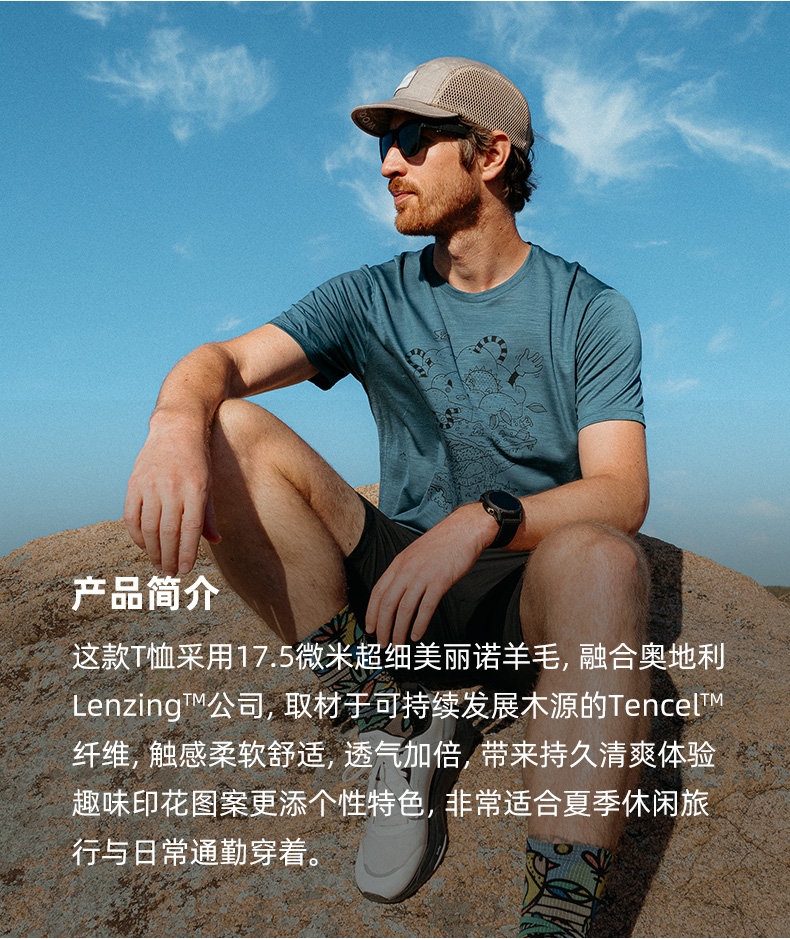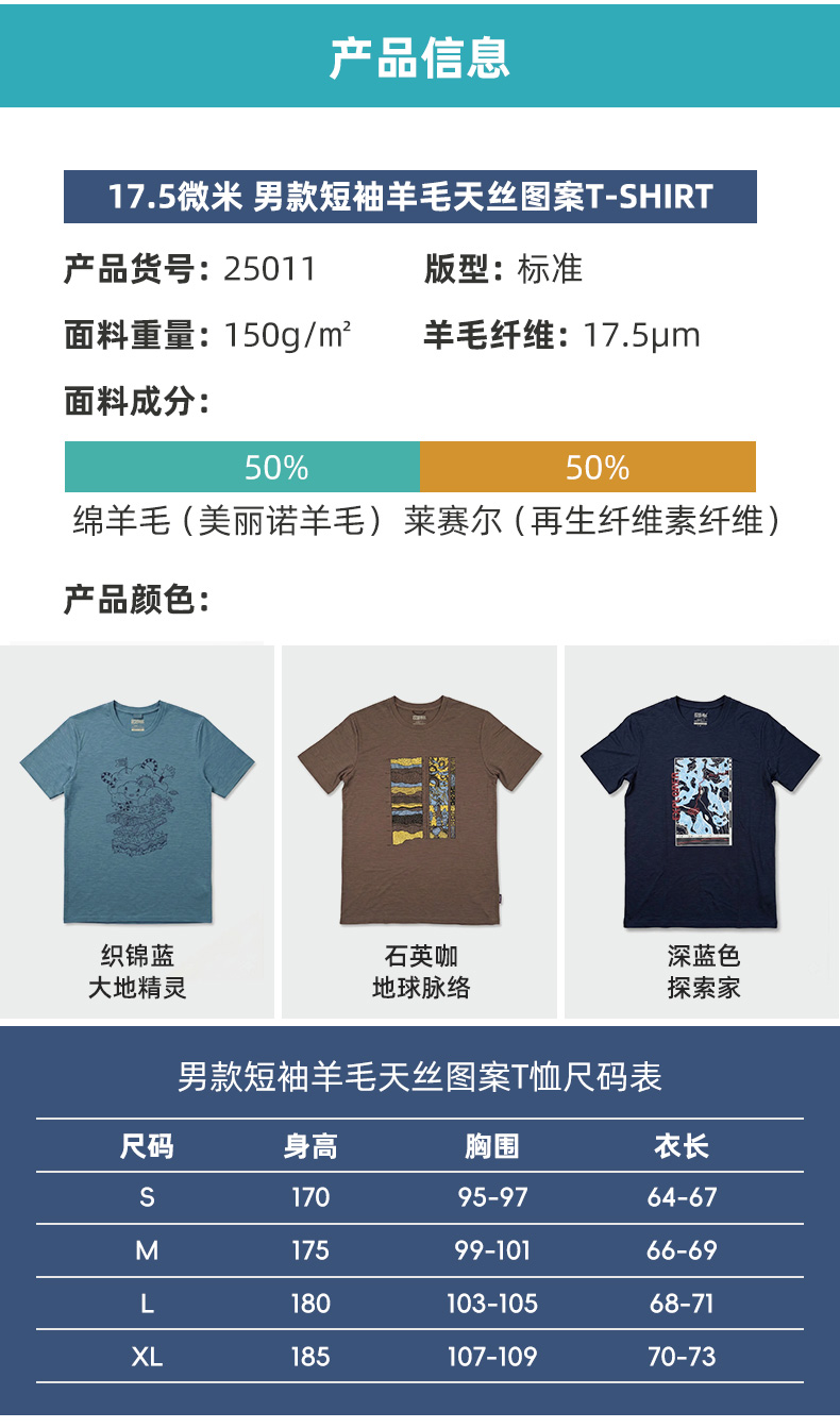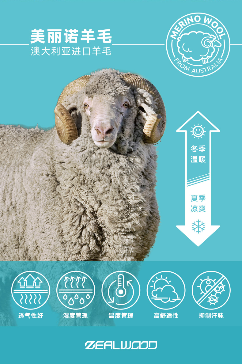 赛乐ZEALWOOD羊毛天丝印花T恤长袖短袖男女款春夏T恤干爽透气