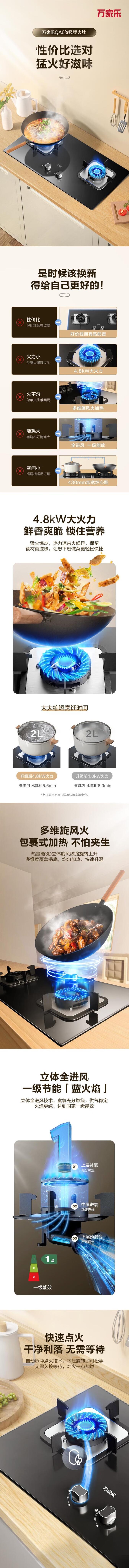 万家乐(509900 )家用台嵌两用式燃气灶大面板一级能效5.0KW大火力JZT-QA6天然气