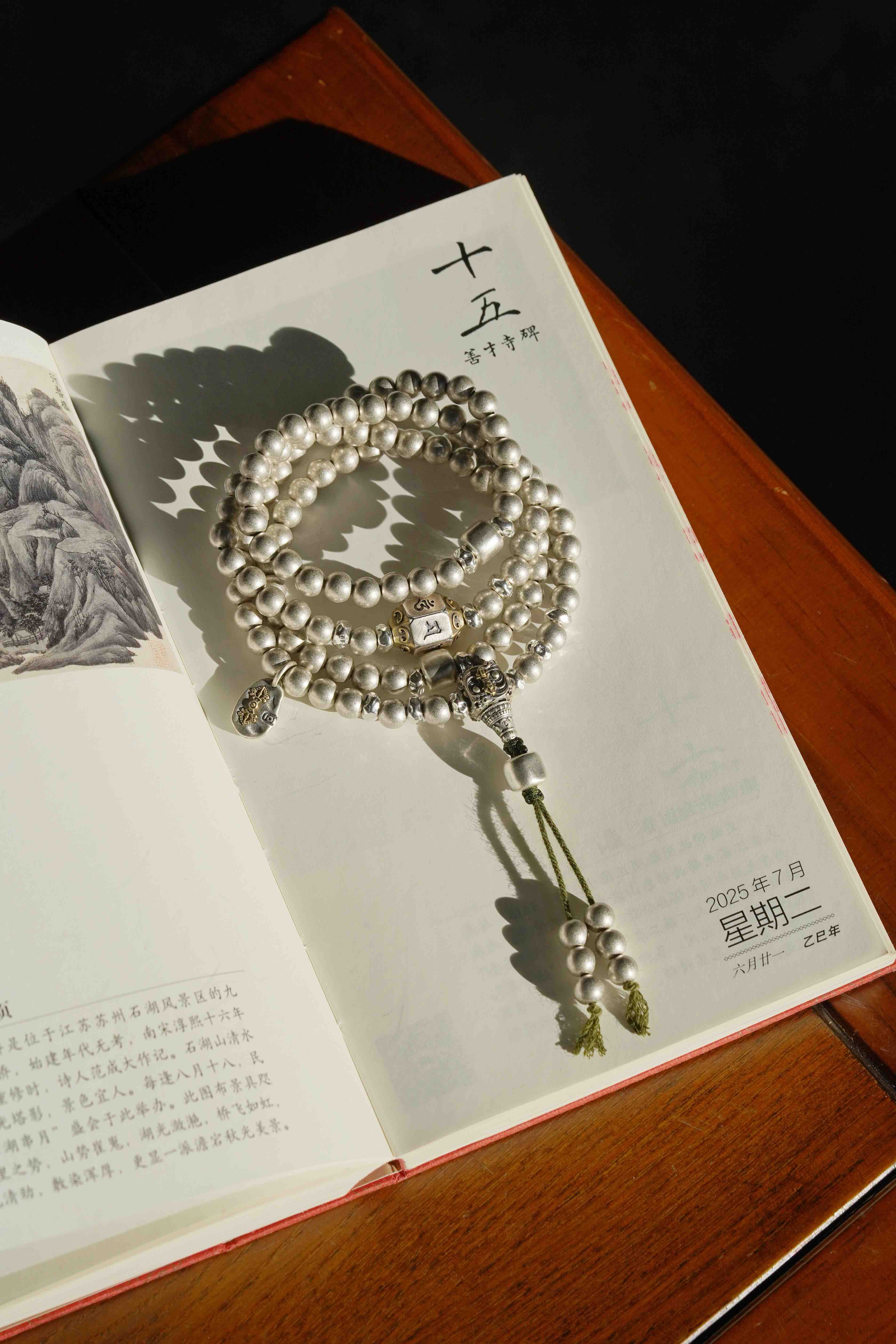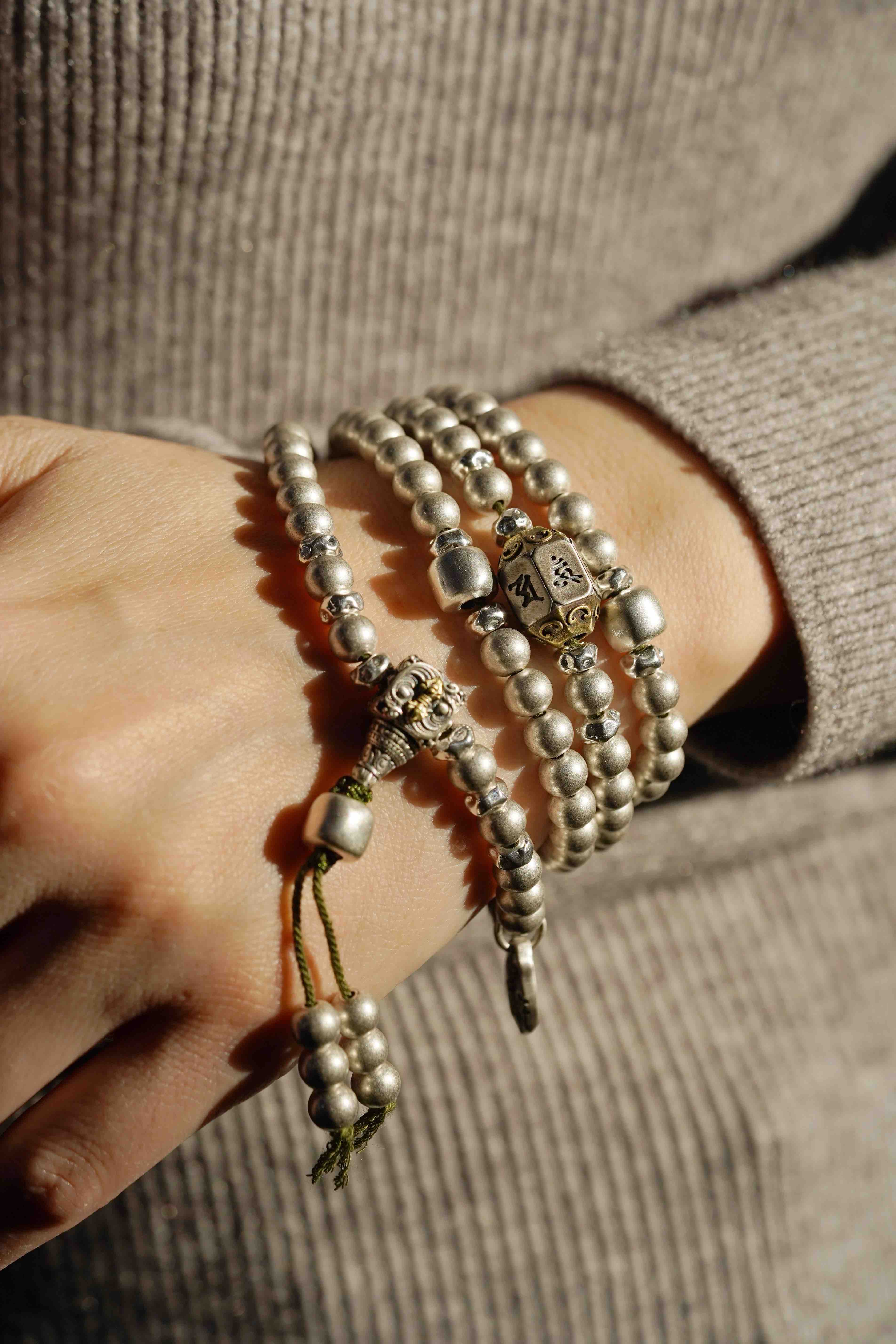 纯银的念珠,工艺也很赞真帅气,沉甸甸的分量感。
