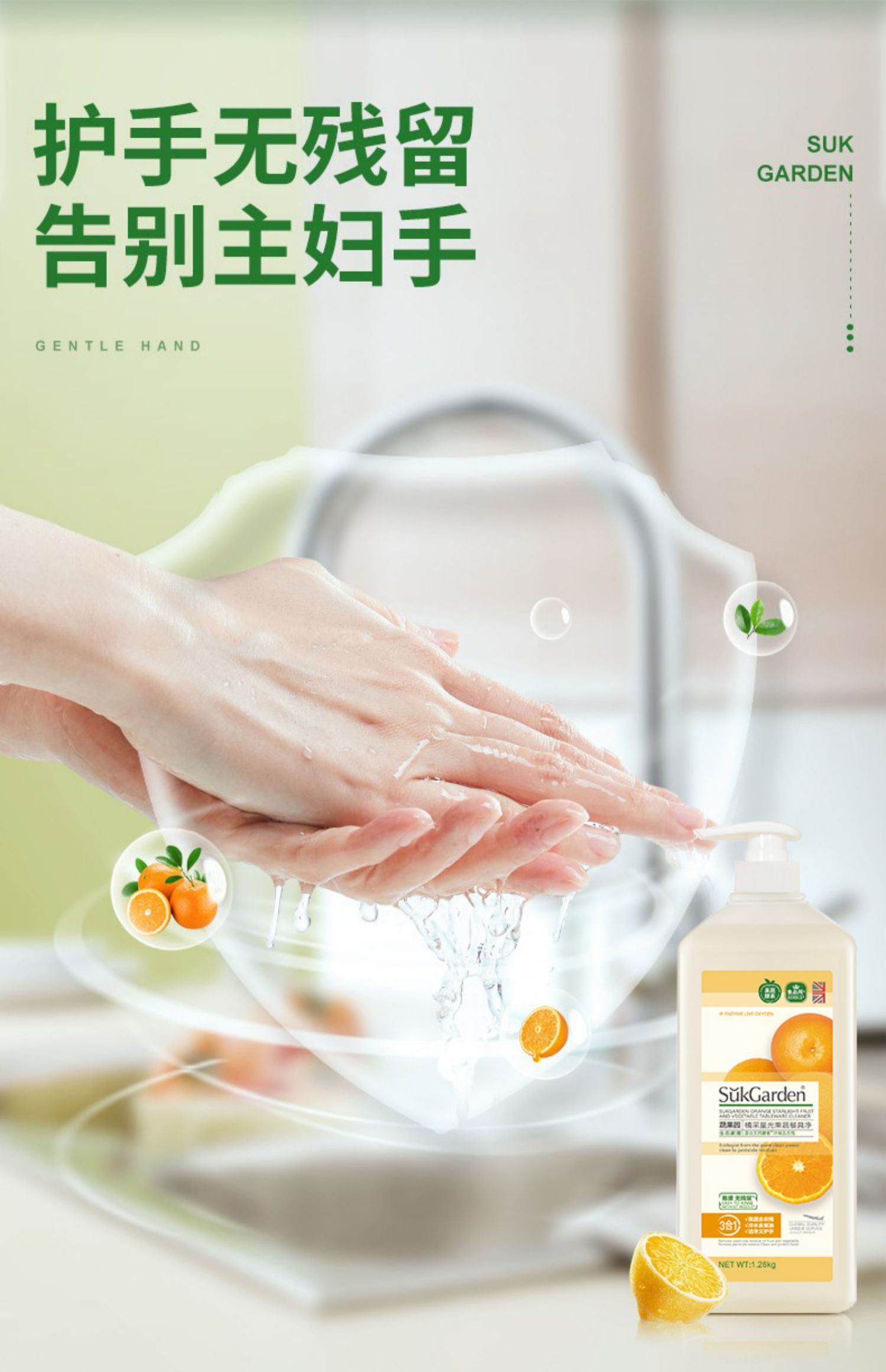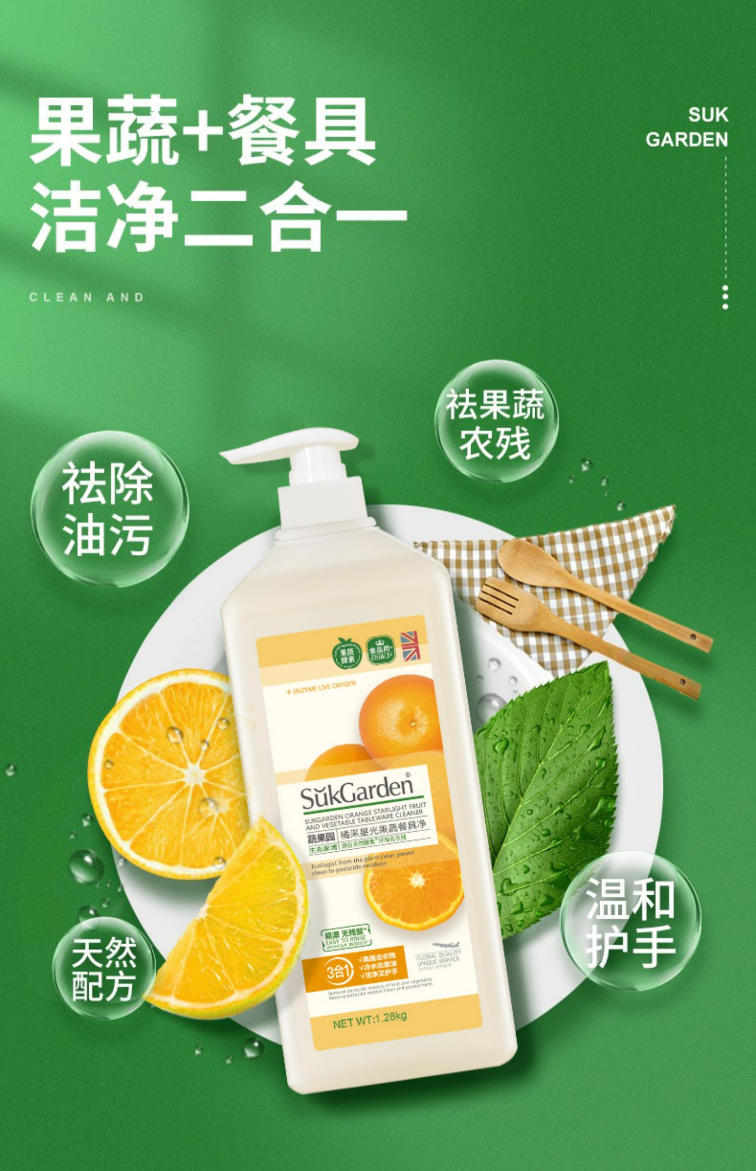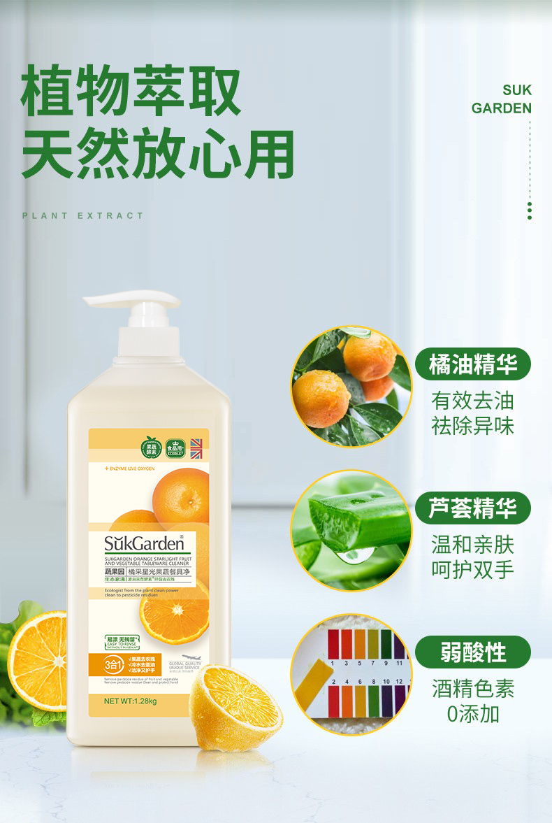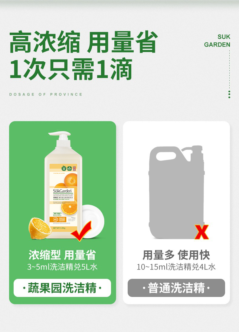 洗洁精洗碗水果蔬菜洗涤剂灵家用清洗剂净食品级家庭装1.28kg*2瓶