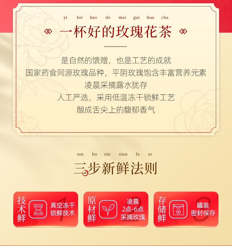 - 店铺产品主要包括冻干玫瑰花冠茶、低温烘干玫瑰花冠茶、玫瑰鲜花液、玫瑰花瓣、玫瑰纯露、玫瑰食品、玫瑰化妆品等。